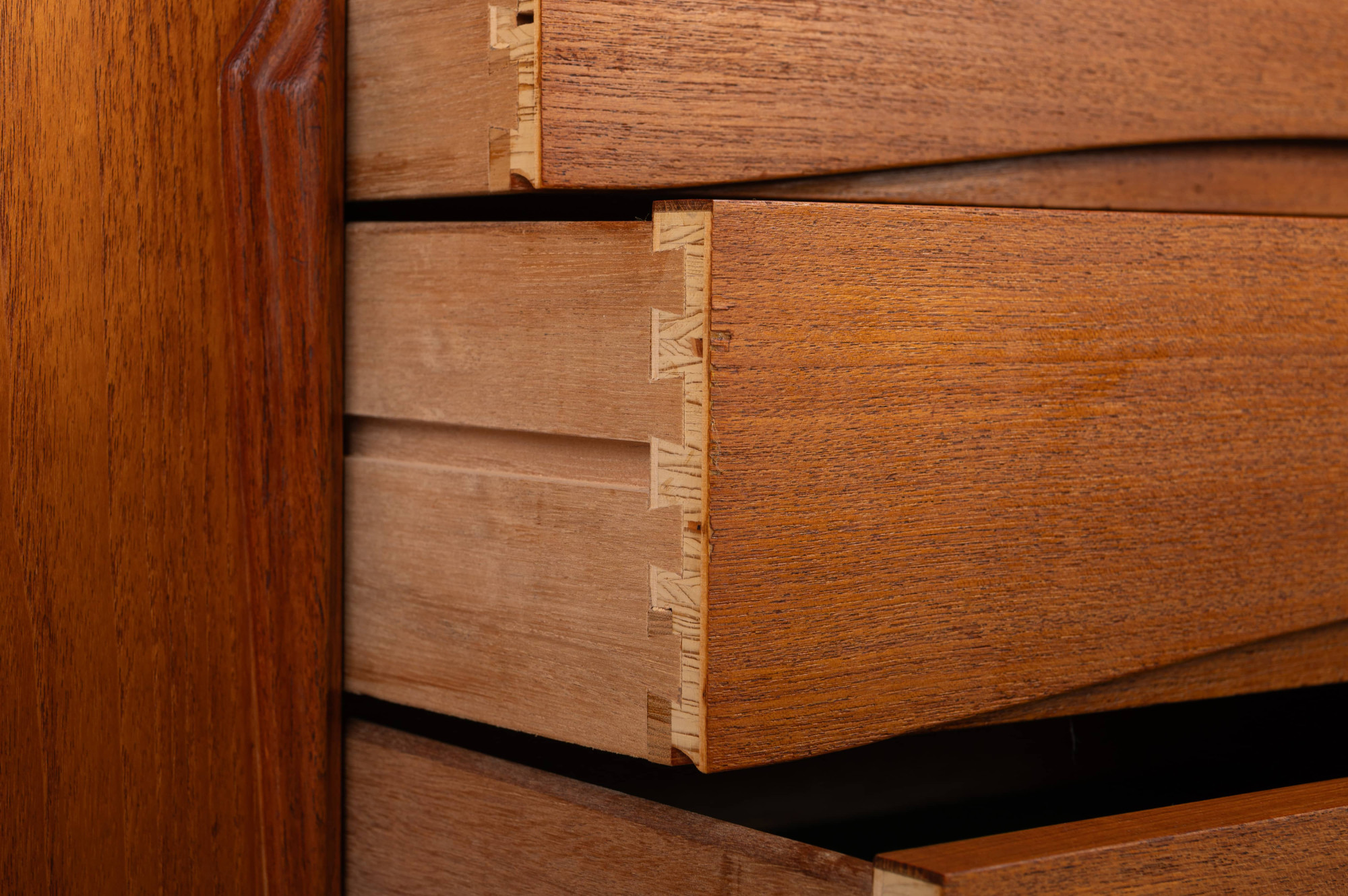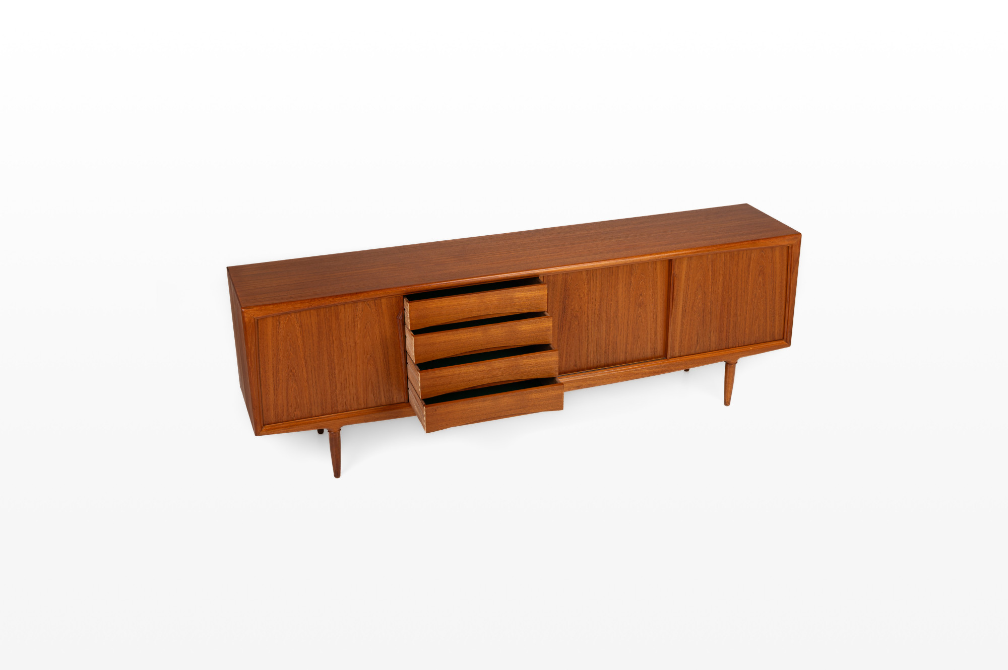 Designed in the 1960s and produced by Axel Christensen Odder (ACO Møbler), this beautifully crafted sideboard features elegant handles, four drawers, and a lot of storage space with adjustable shelves.