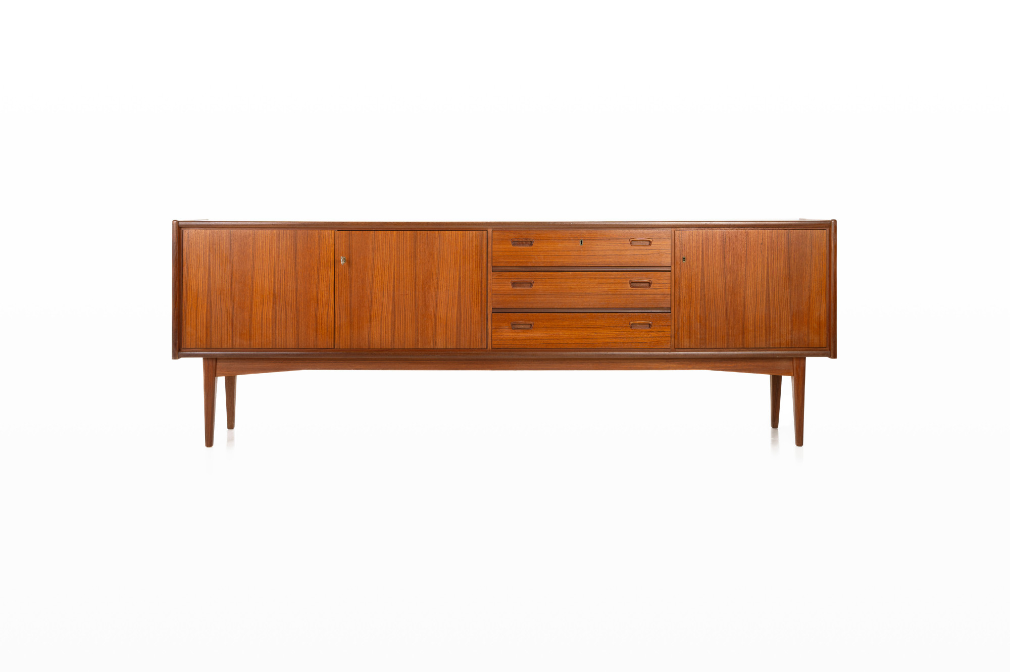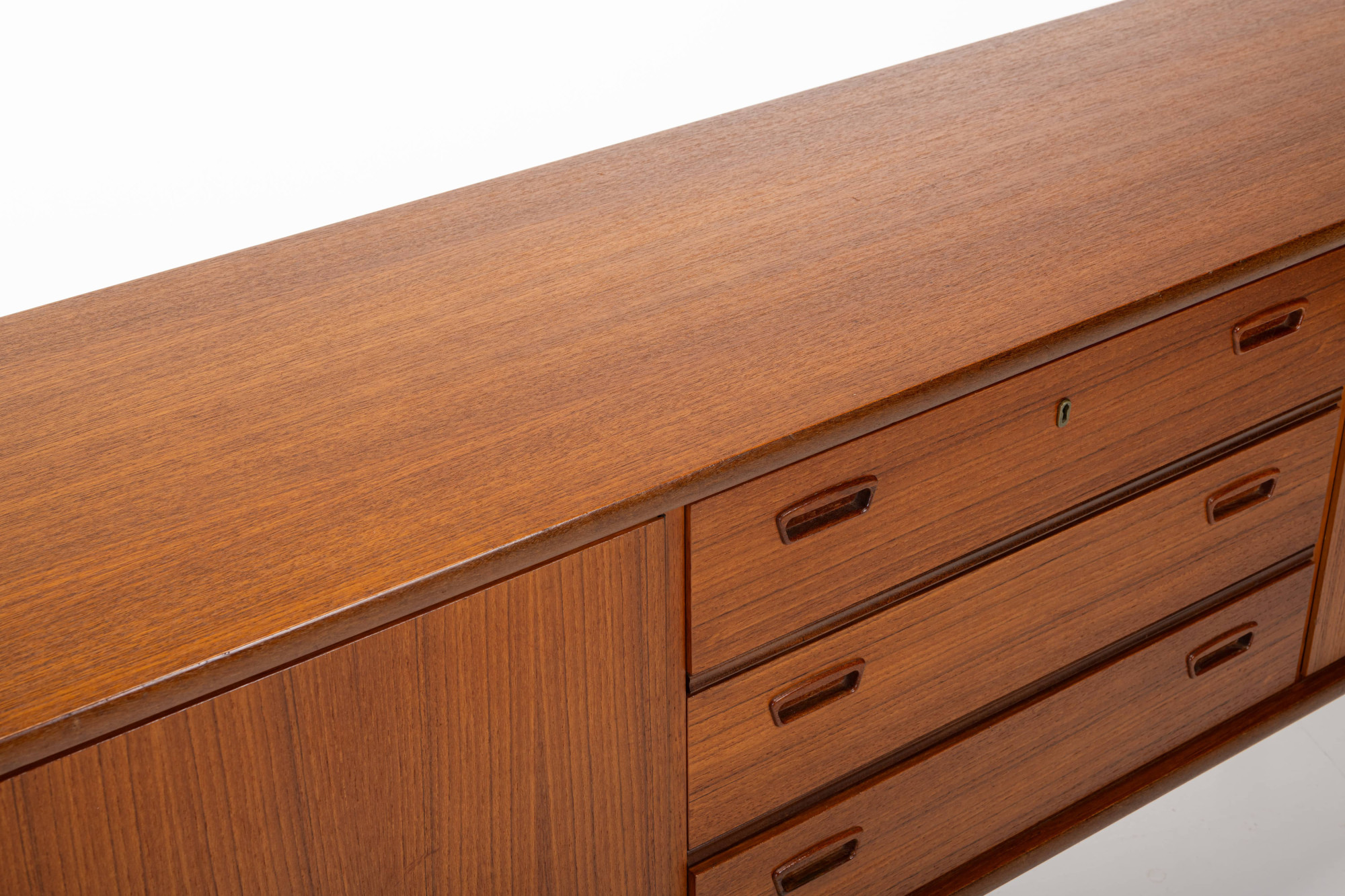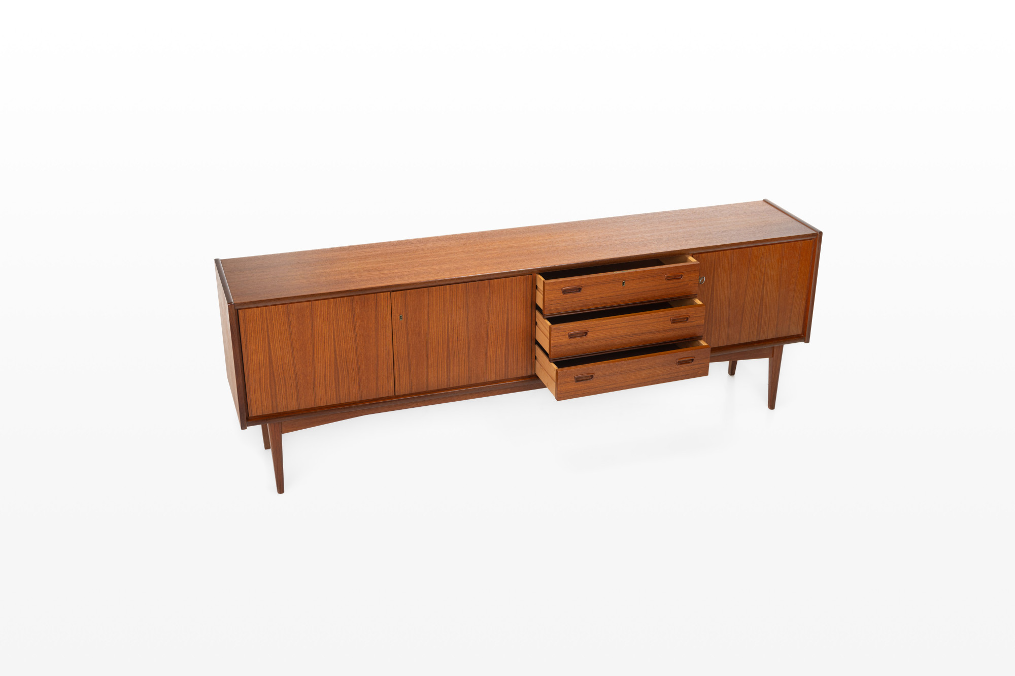 Nice vintage sideboard in teak, produced by Bartels Werken in Germany in the 1960s. The sideboard has three folding doors, three drawers, twho shelves and a lot of storage space. It is in very good condition and marked by the producer.