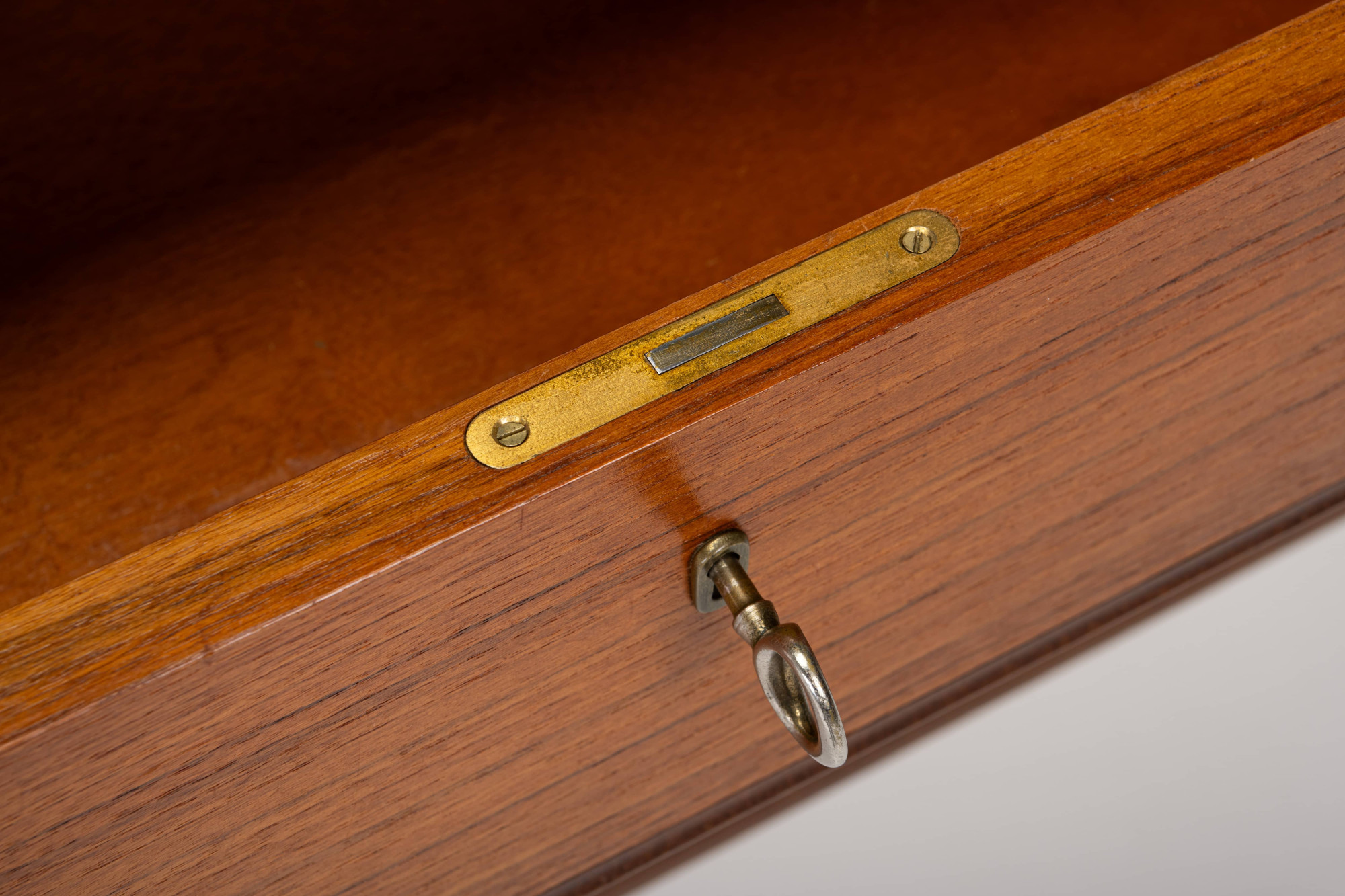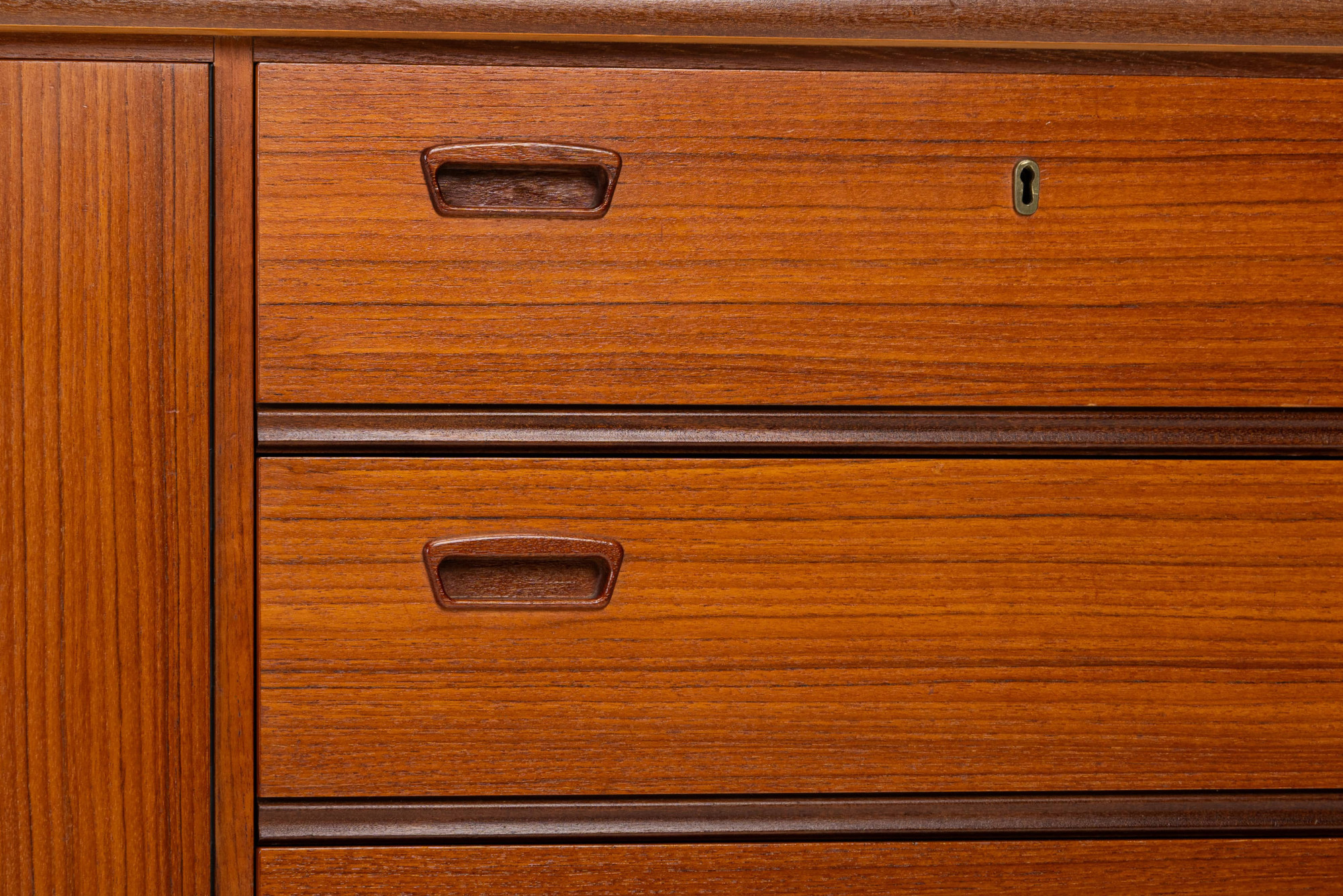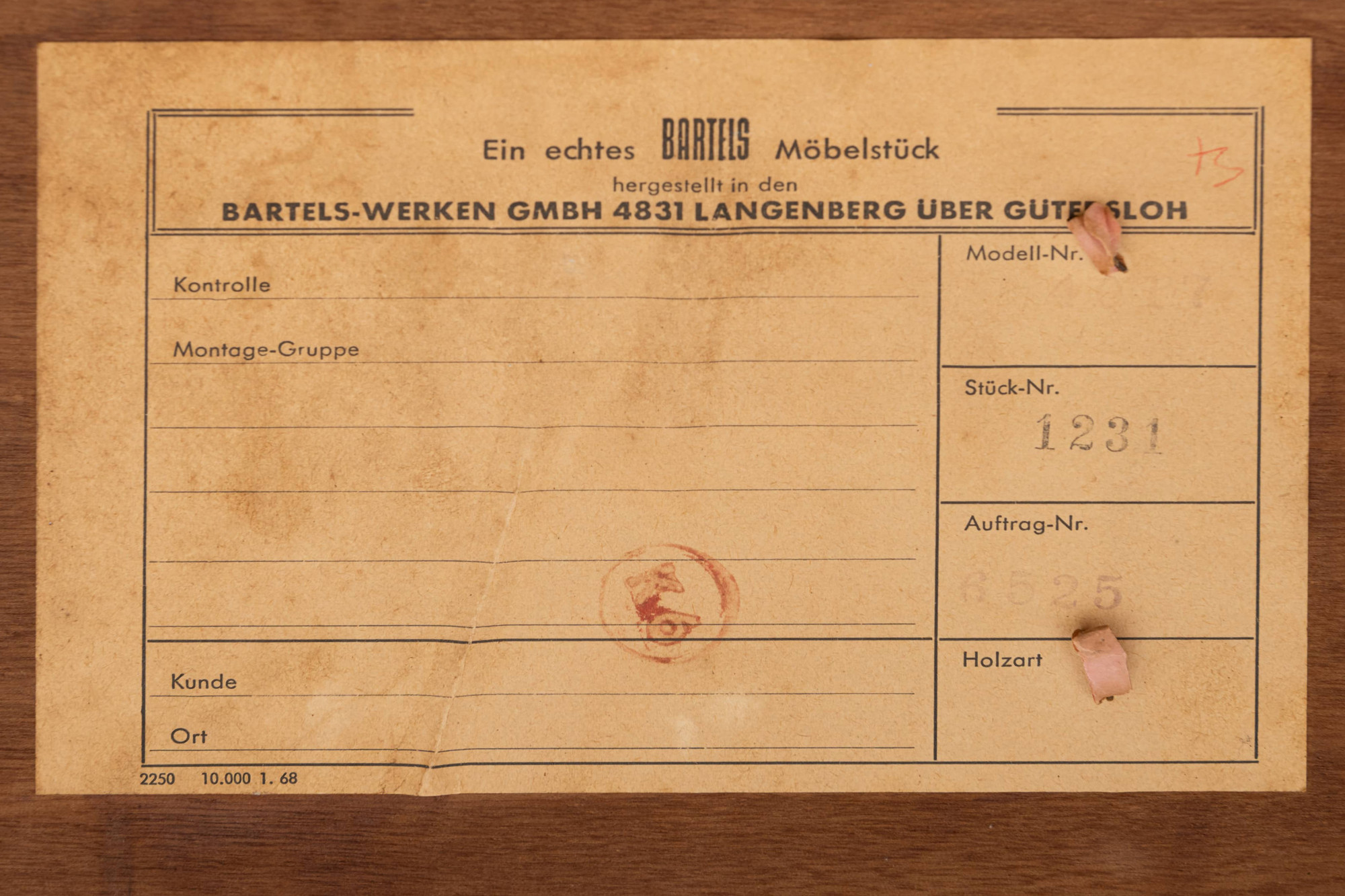 Nice vintage sideboard in teak, produced by Bartels Werken in Germany in the 1960s. The sideboard has three folding doors, three drawers, twho shelves and a lot of storage space. It is in very good condition and marked by the producer.