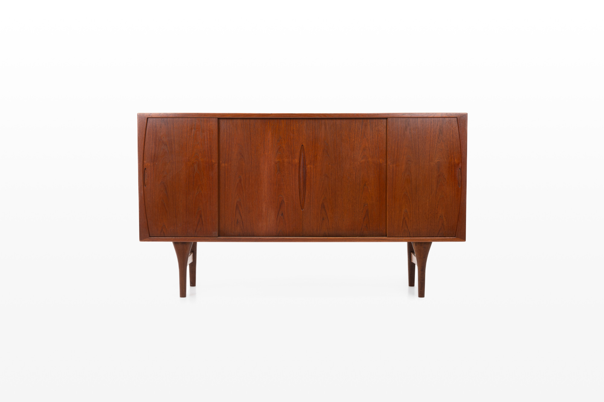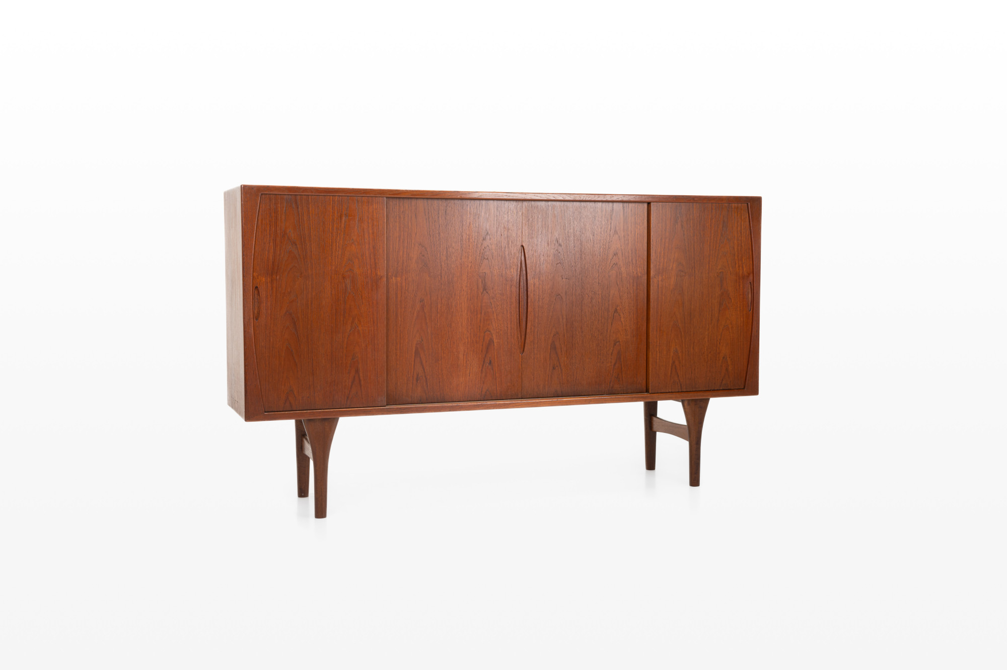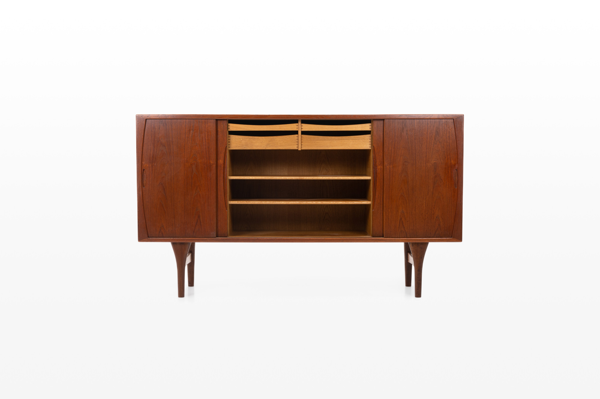 Beautiful sideboard designed by Henning Kjærnulf for Bruno Hansen. It has been produced in the 1960s in Denmark. This sideboard is finished in teak on the outside and oak on the inside, very high quality. MArked by the producer.