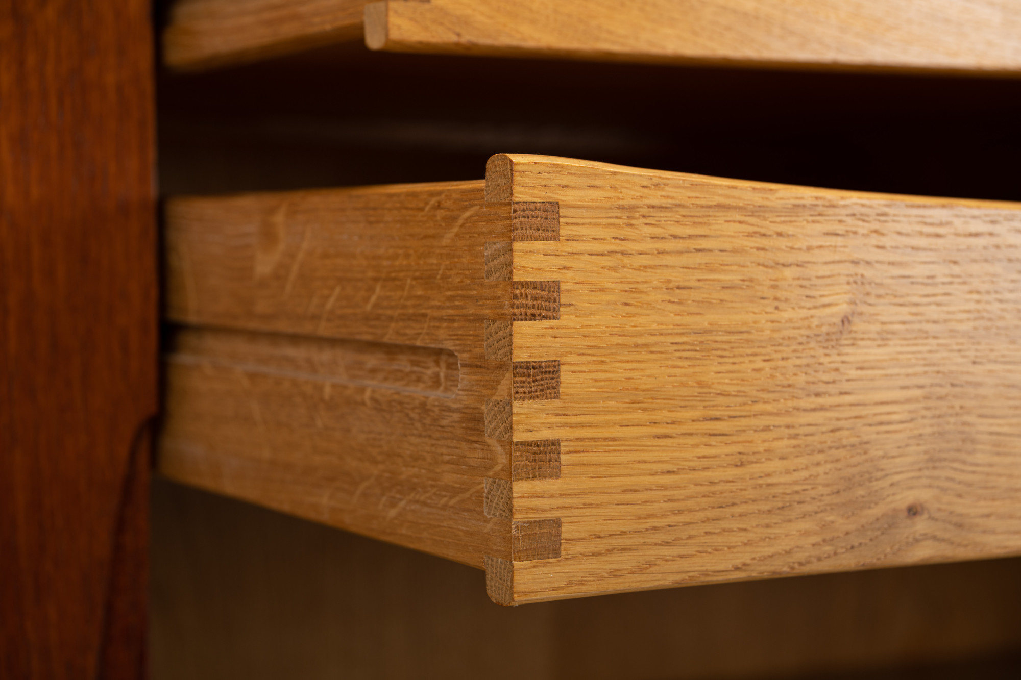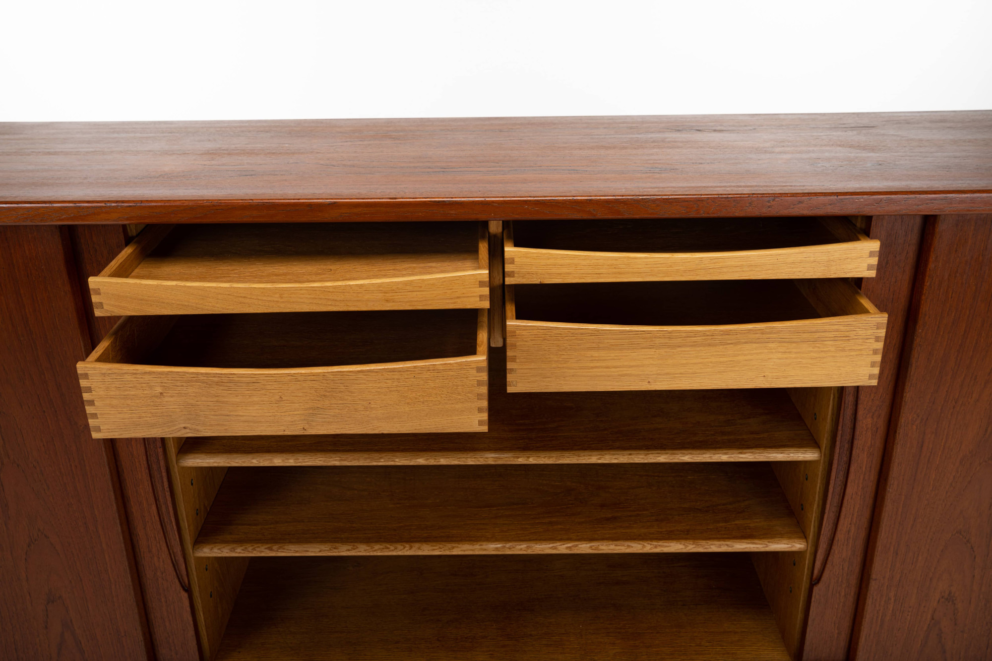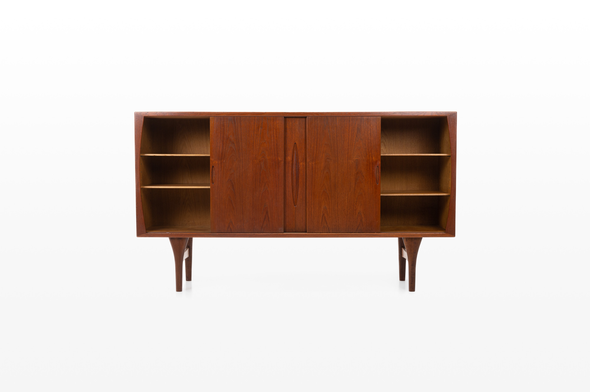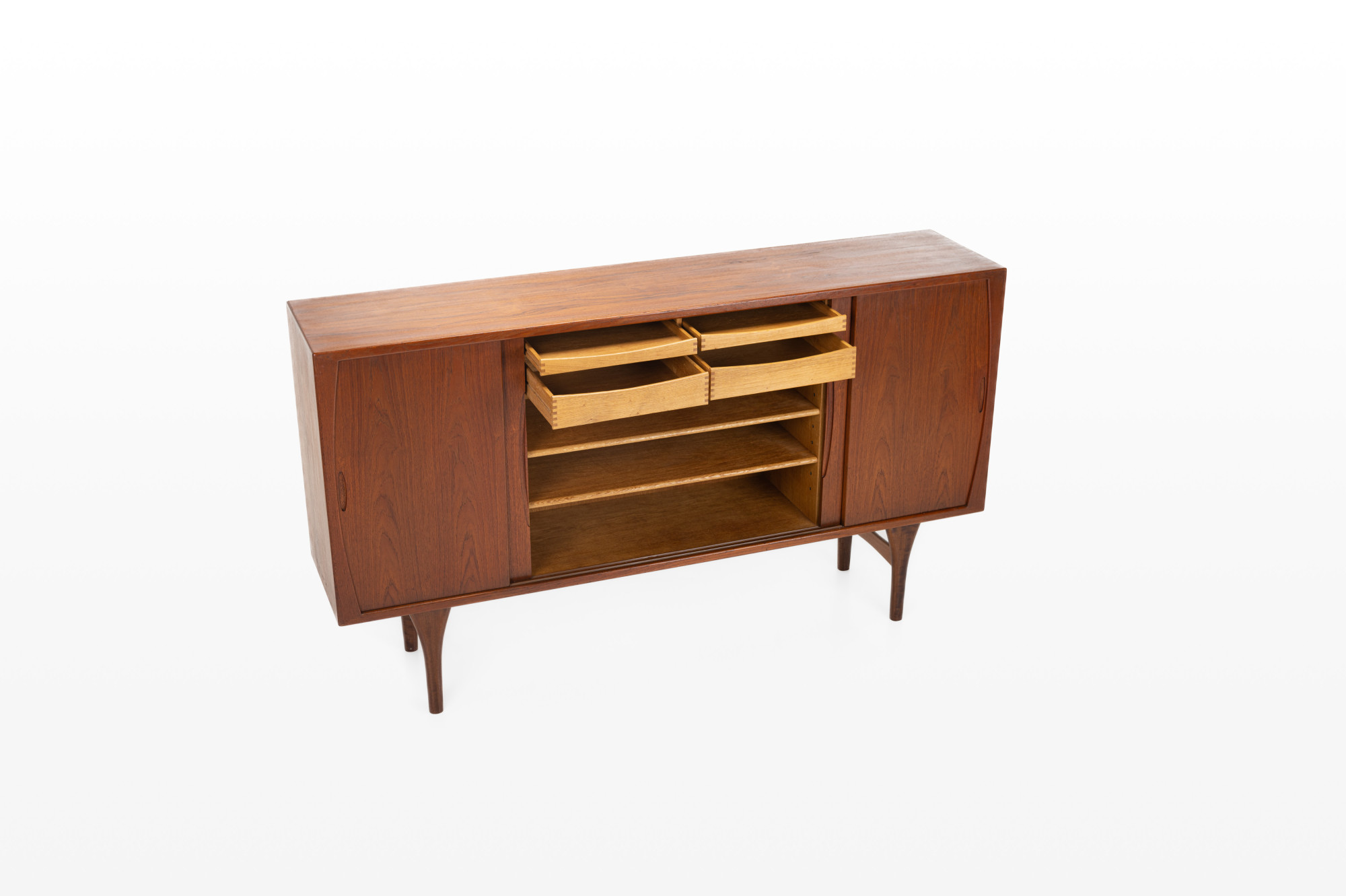 Beautiful sideboard designed by Henning Kjærnulf for Bruno Hansen. It has been produced in the 1960s in Denmark. This sideboard is finished in teak on the outside and oak on the inside, very high quality. MArked by the producer.