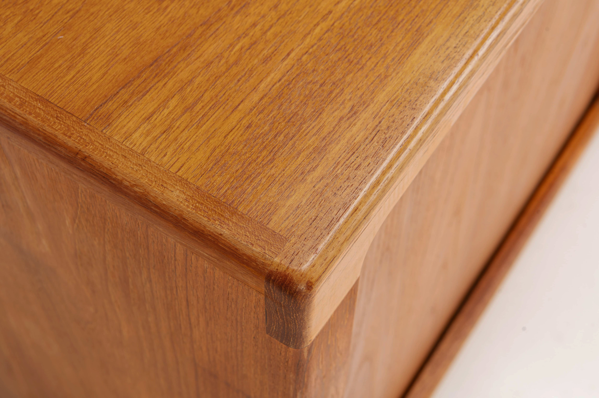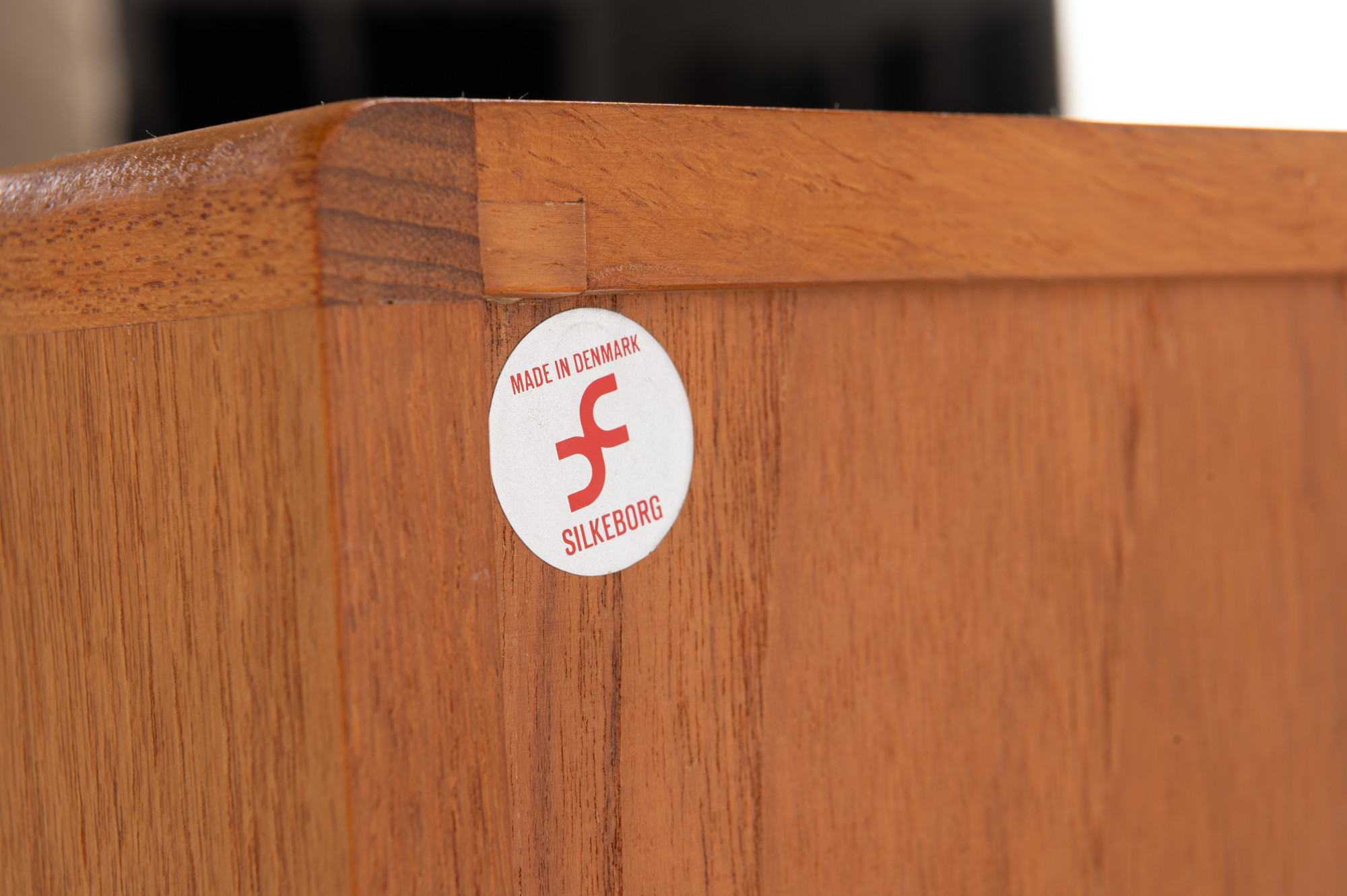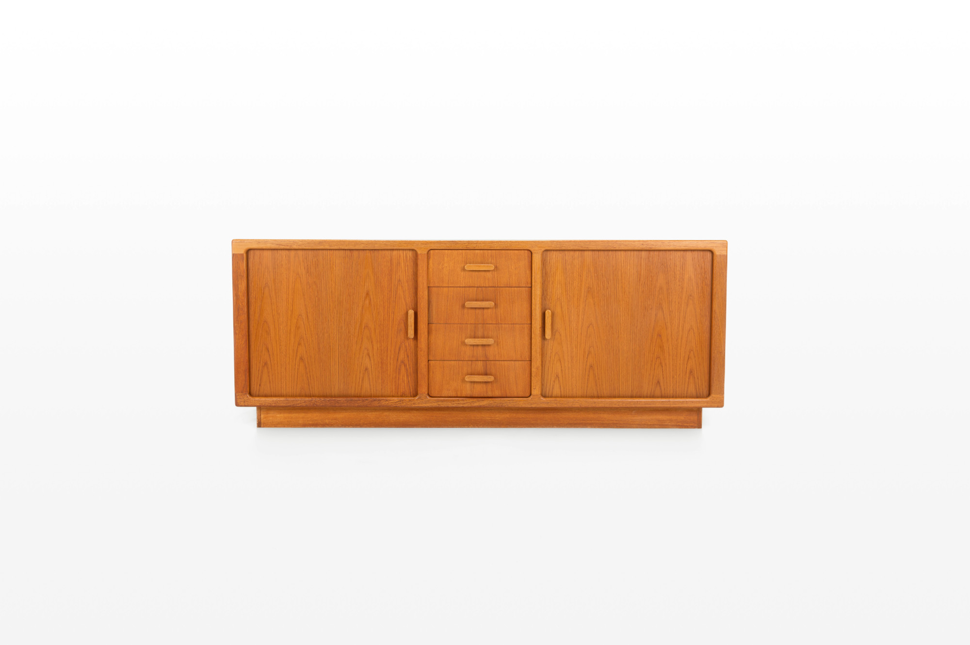 Danish vintage sideboard designed in the 1960s in Denmark by CFC Silkeborg Denmark. Teak version with tambour doors, five shelves and four drawers. The sideboard is in excellent condition and is marked by the producer.