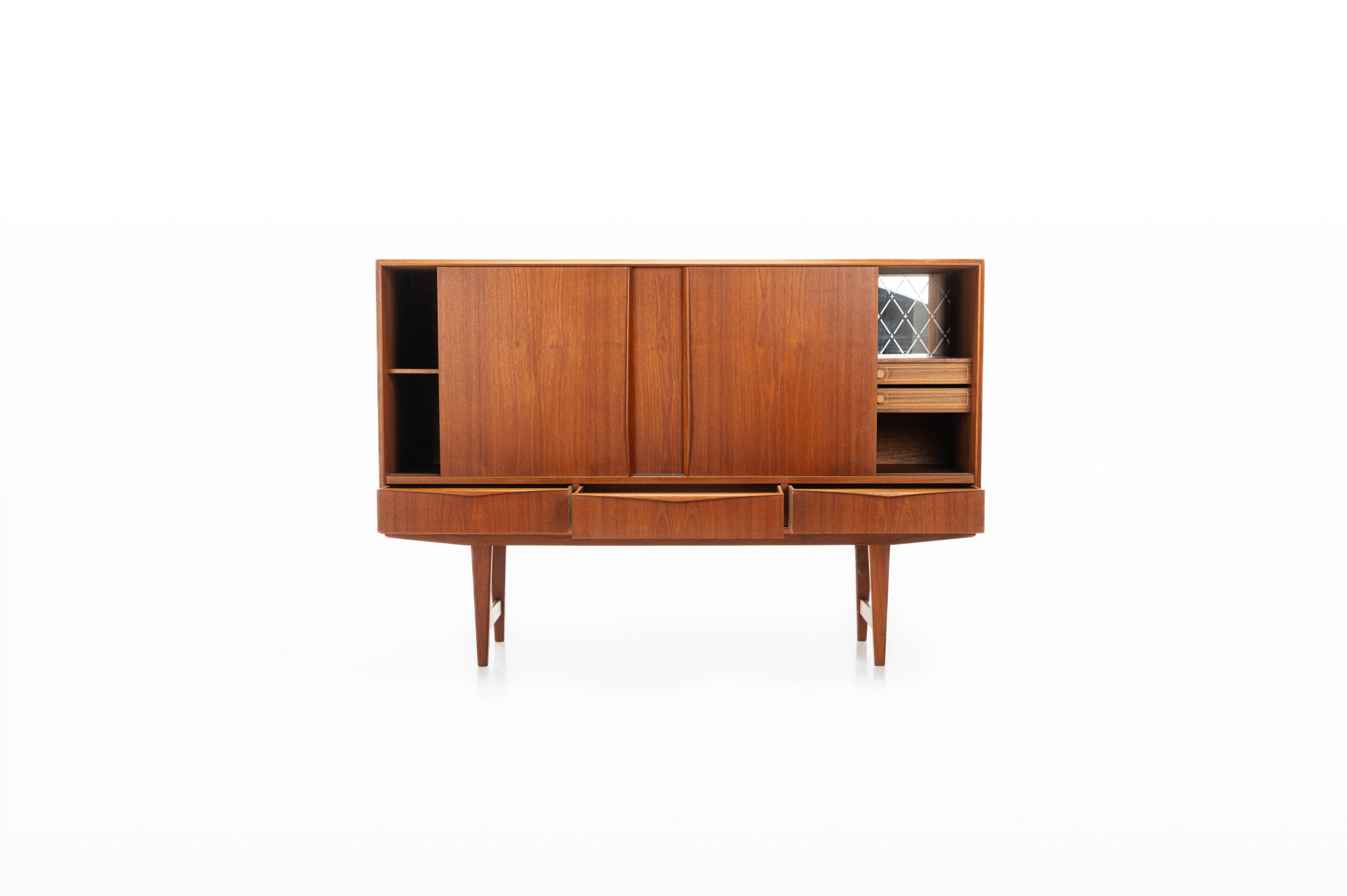 Beautiful Danish sideboard in teak designed by EW Bach for Sejling Skabe in the 60s. There are three sliding doors, lots of storage space and a bar area. It remains in very good condition.
