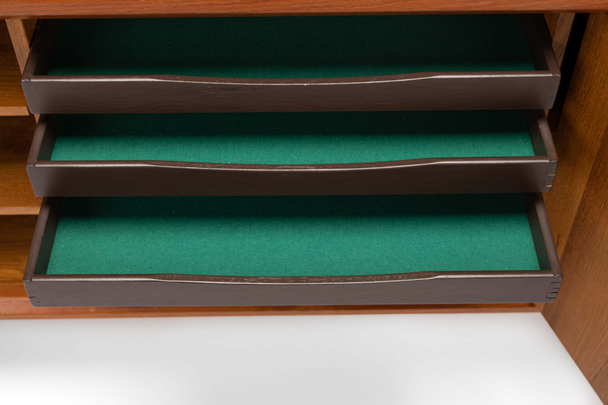 Vintage teak sideboard with three doors and plenty of storage space. Designed for Faarup Mobelfabrik in the 1960s. Marked by the producer.