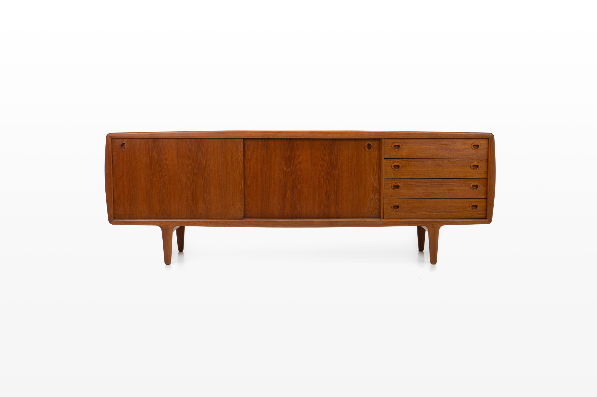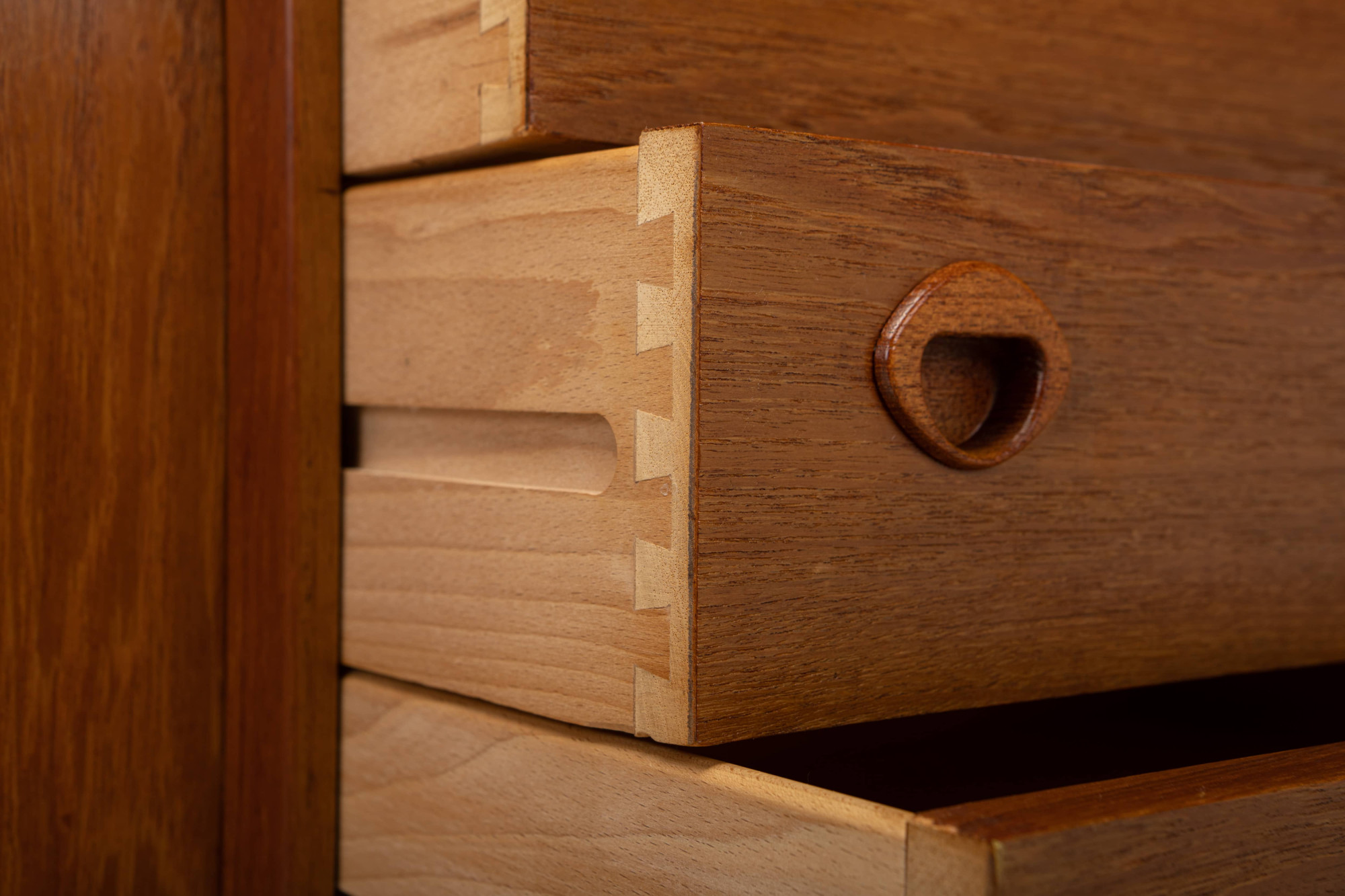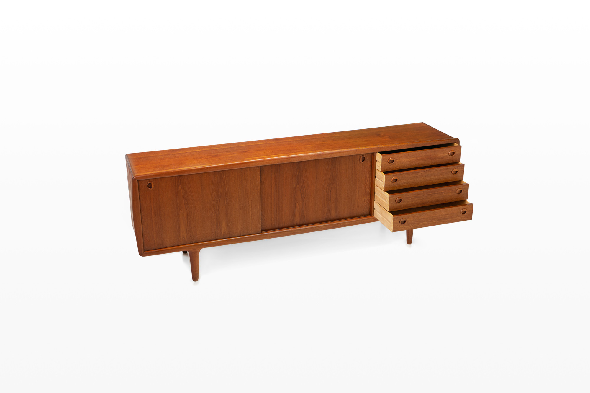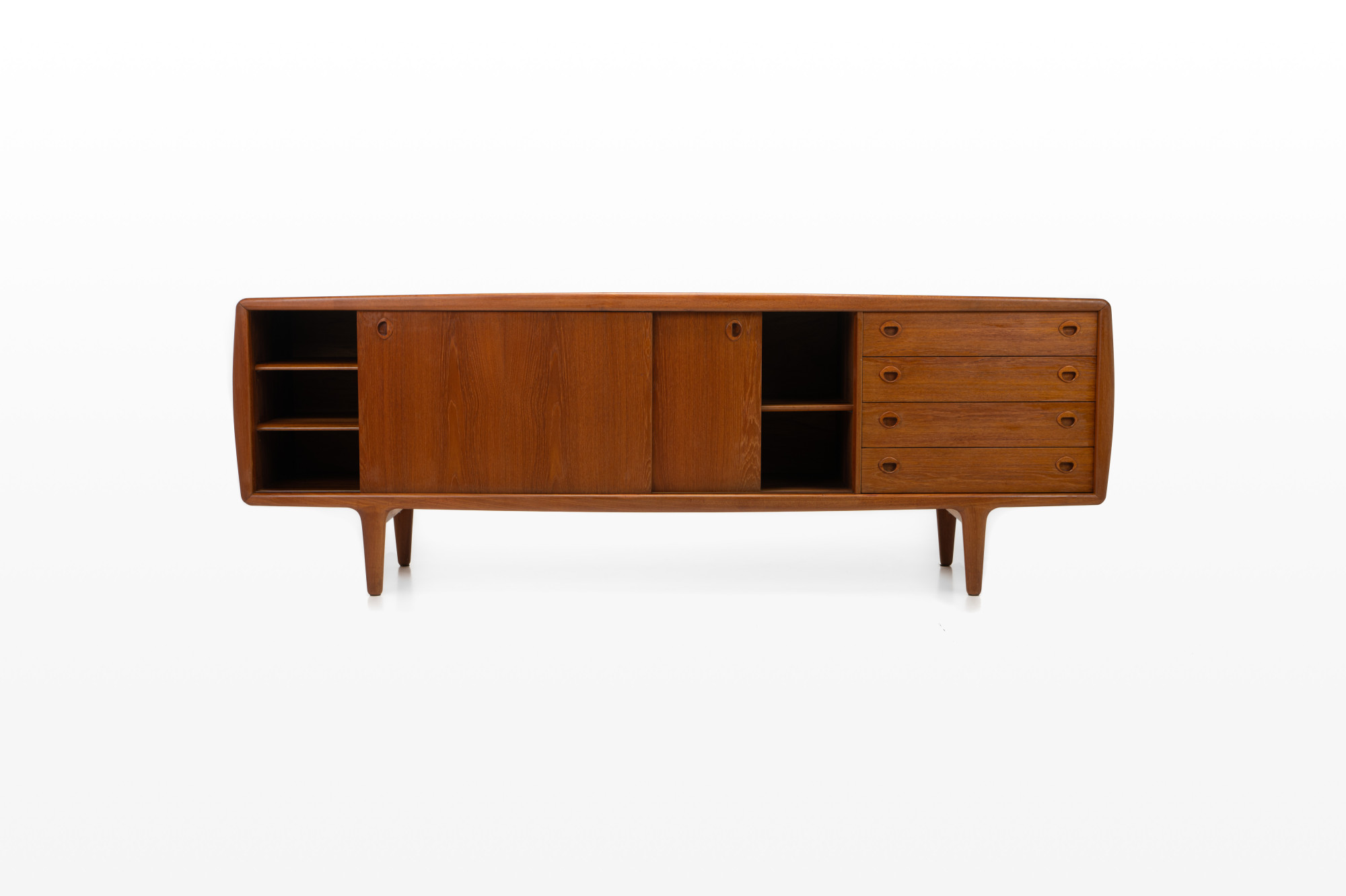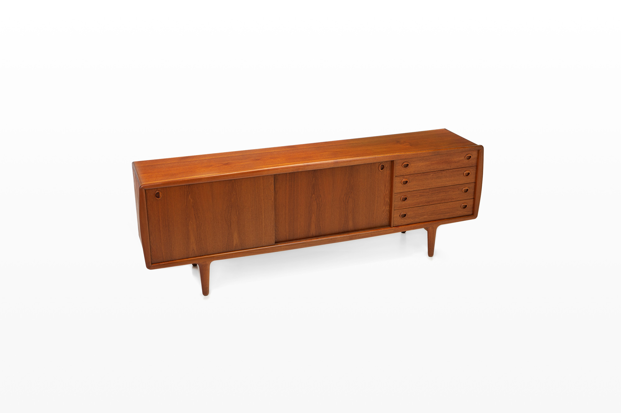 Danish vintage sideboard in teak designed by HP Hansen for HP Hansen møbelindustri, Denmark 1960. This sideboard has 2 sliding doors and 4 drawers.