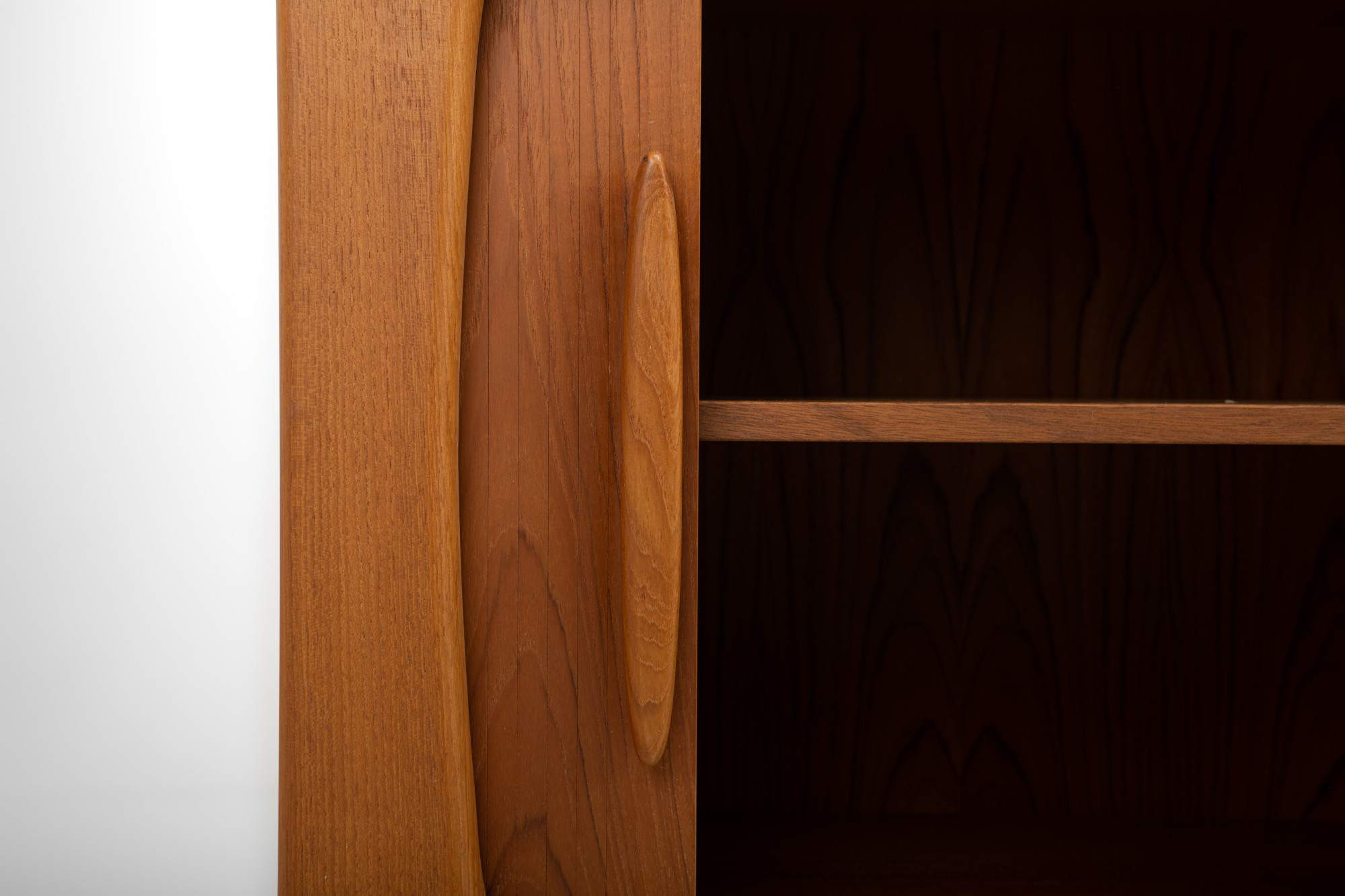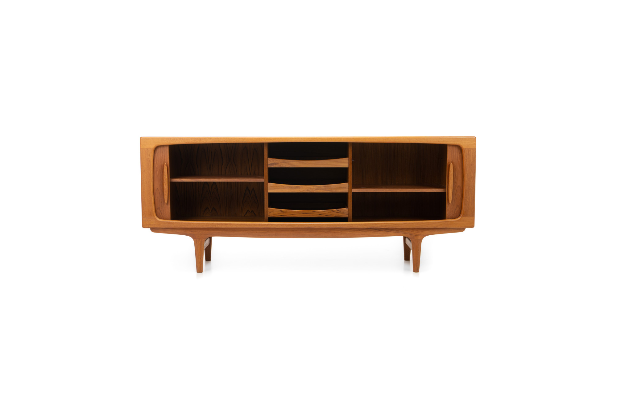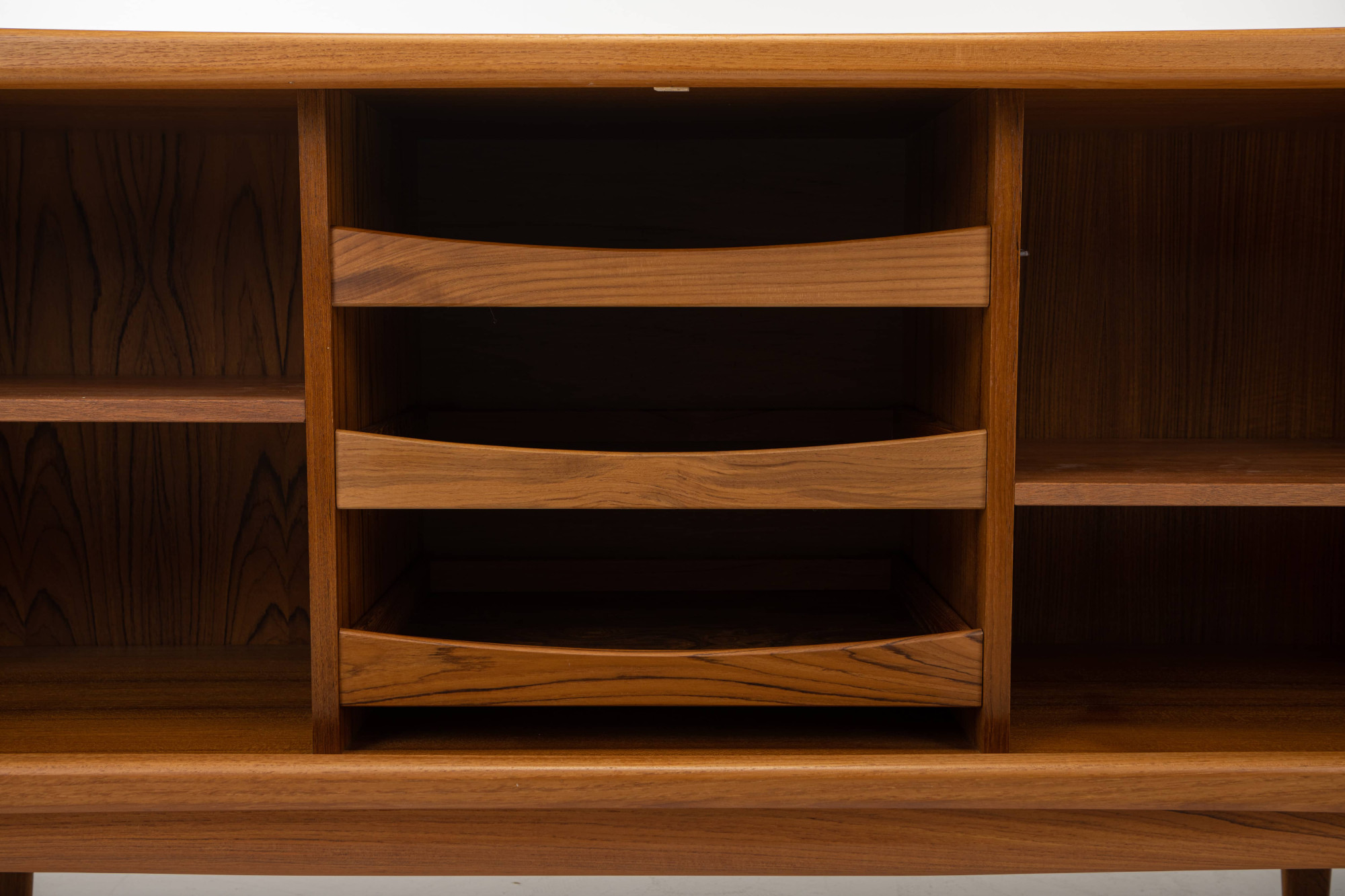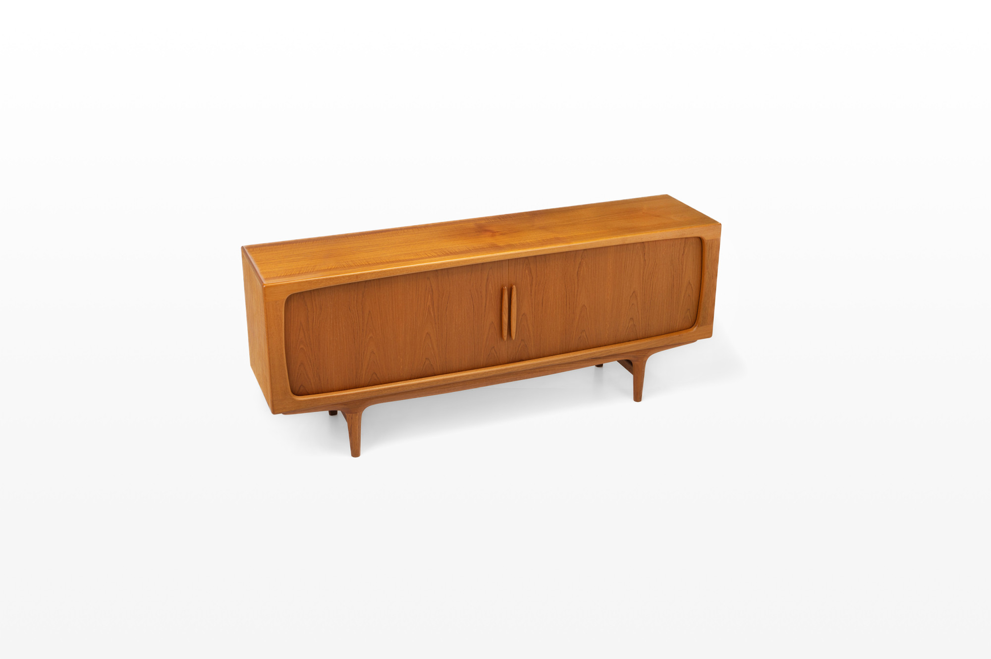Danish vintage sideboard designed in the 1960s in Denmark by Johannes Andersen for CFC Silkeborg Denmark. Teak version with tambour doors and three inner drawers.