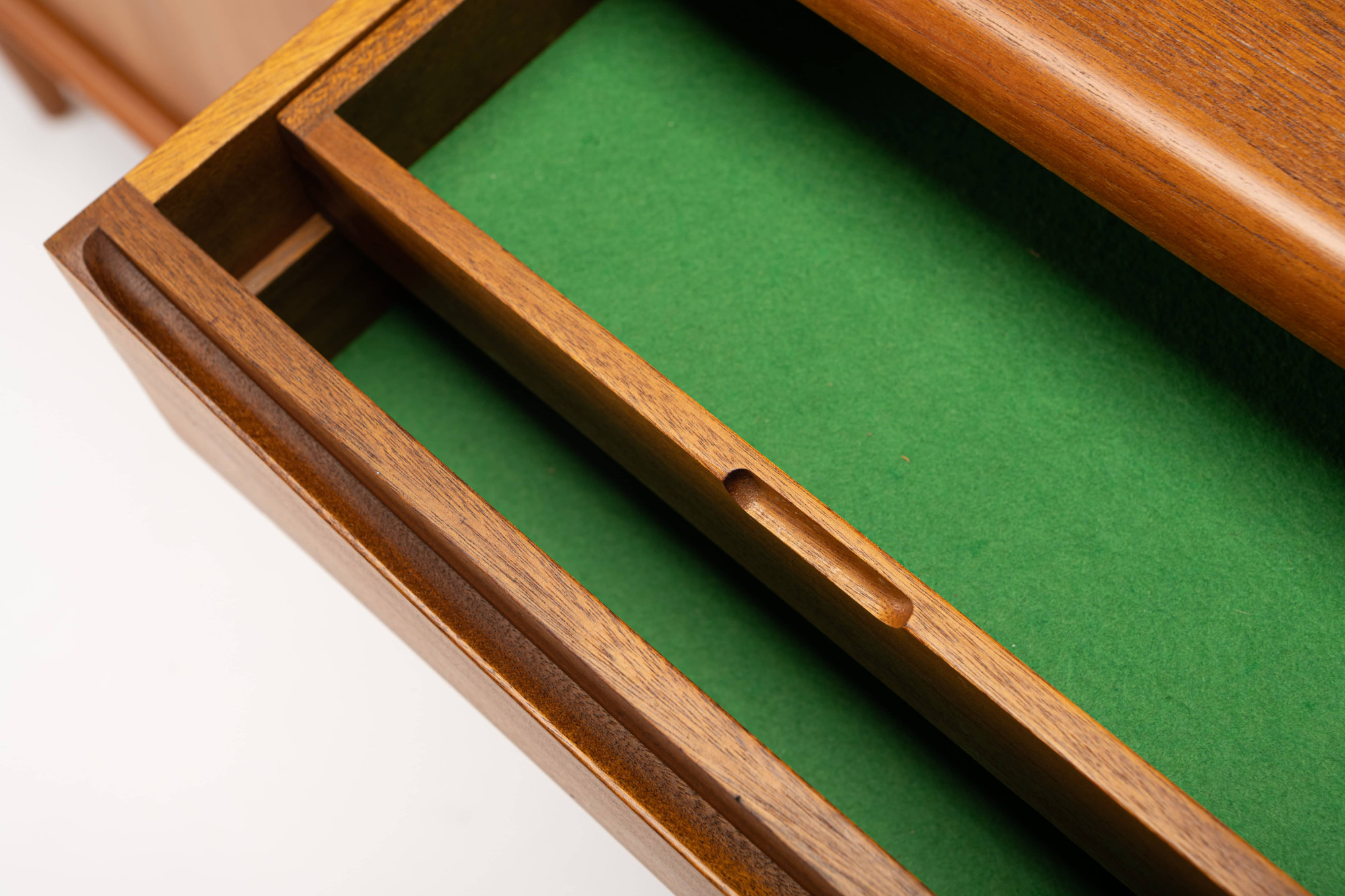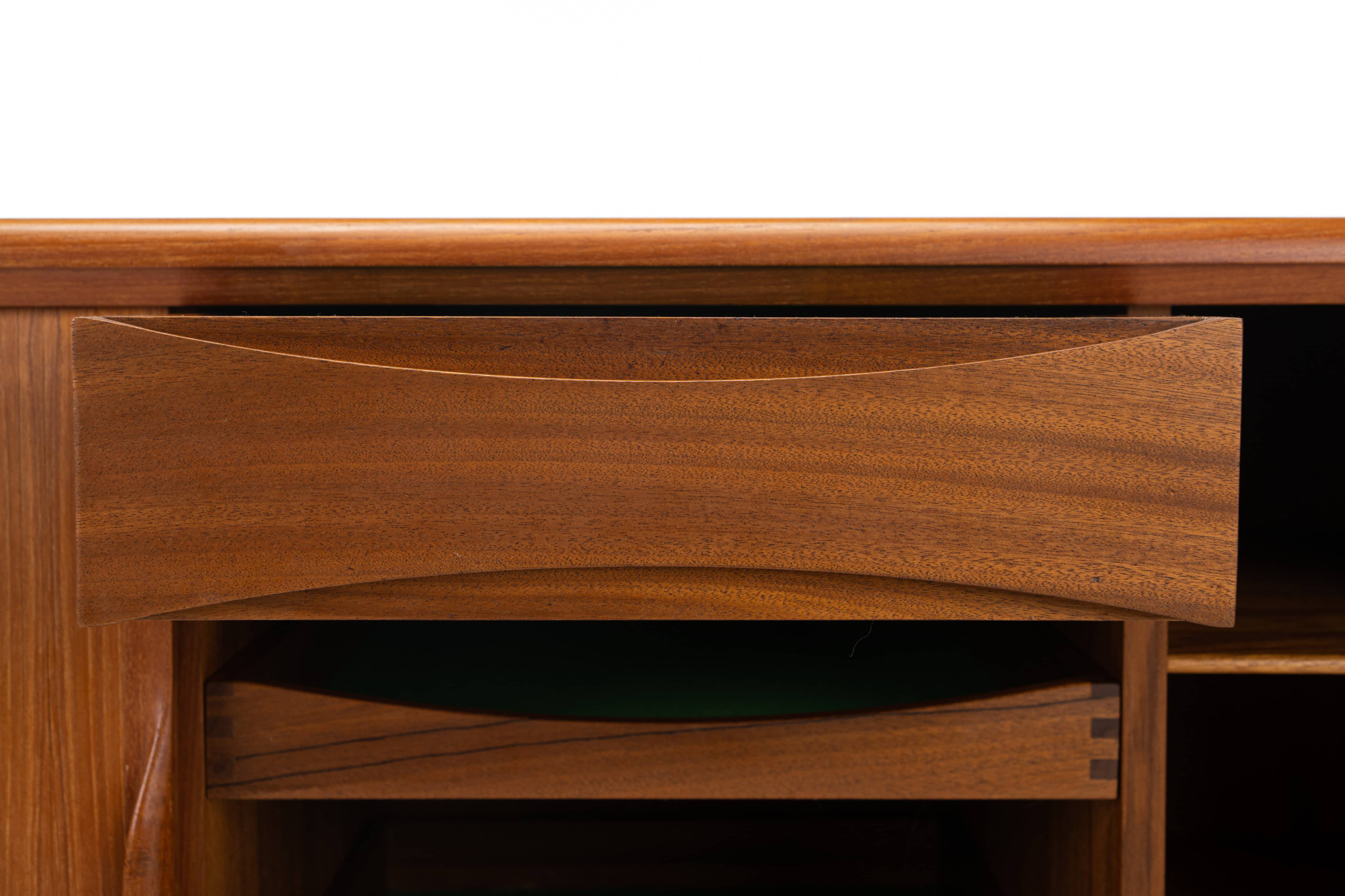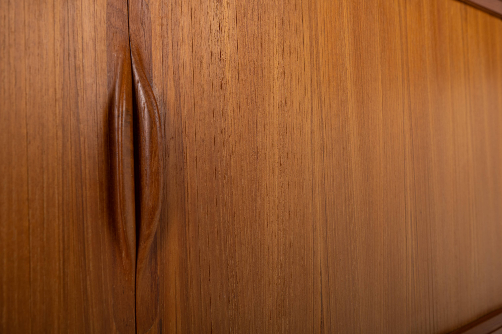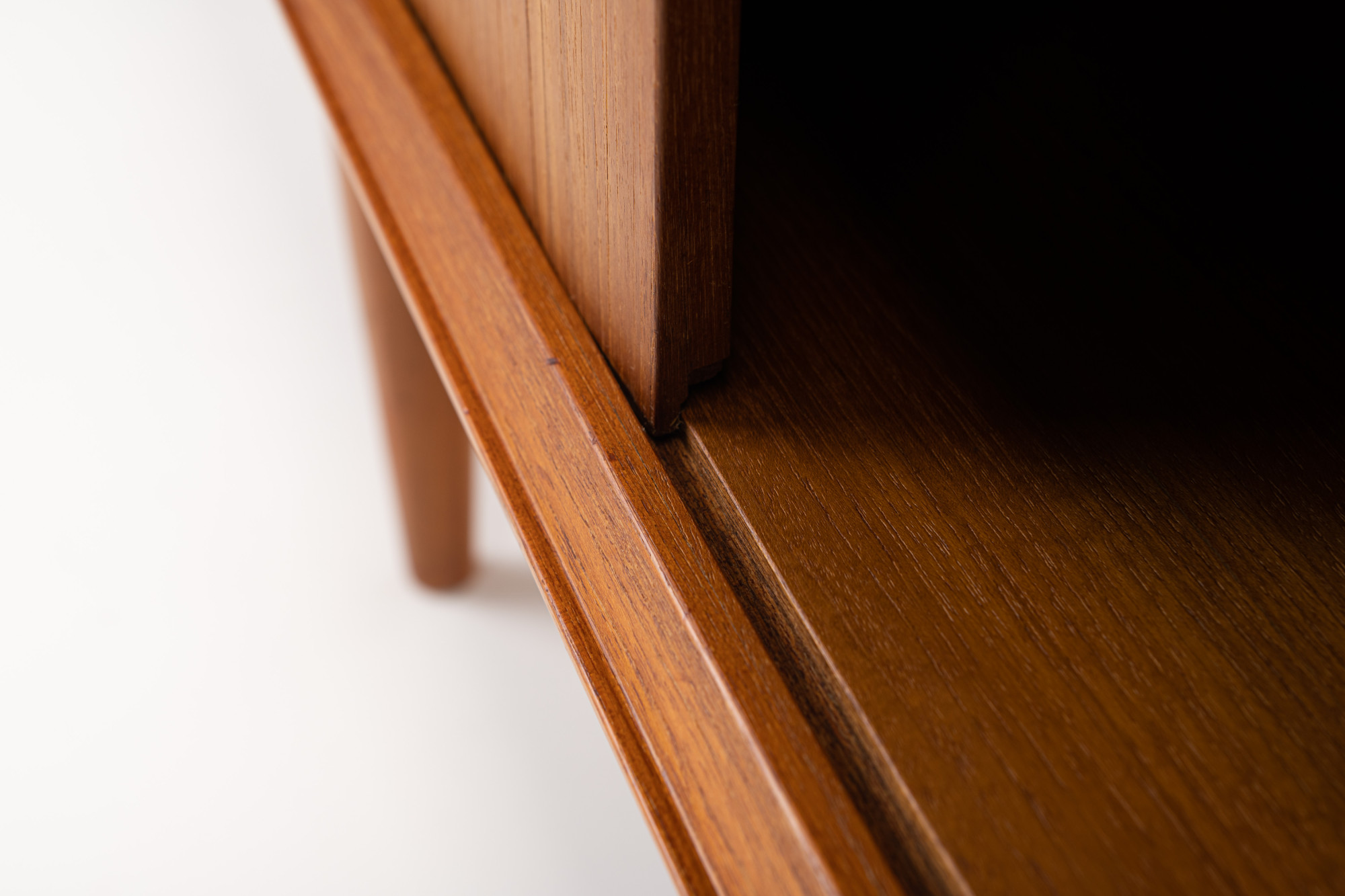 Magnificent sideboard in teak designed by Johannes Andersen for Uldum Møbelfabrik, Denmark 1960s. This sideboard has four tambour doors, two doors and plenty of storage space.