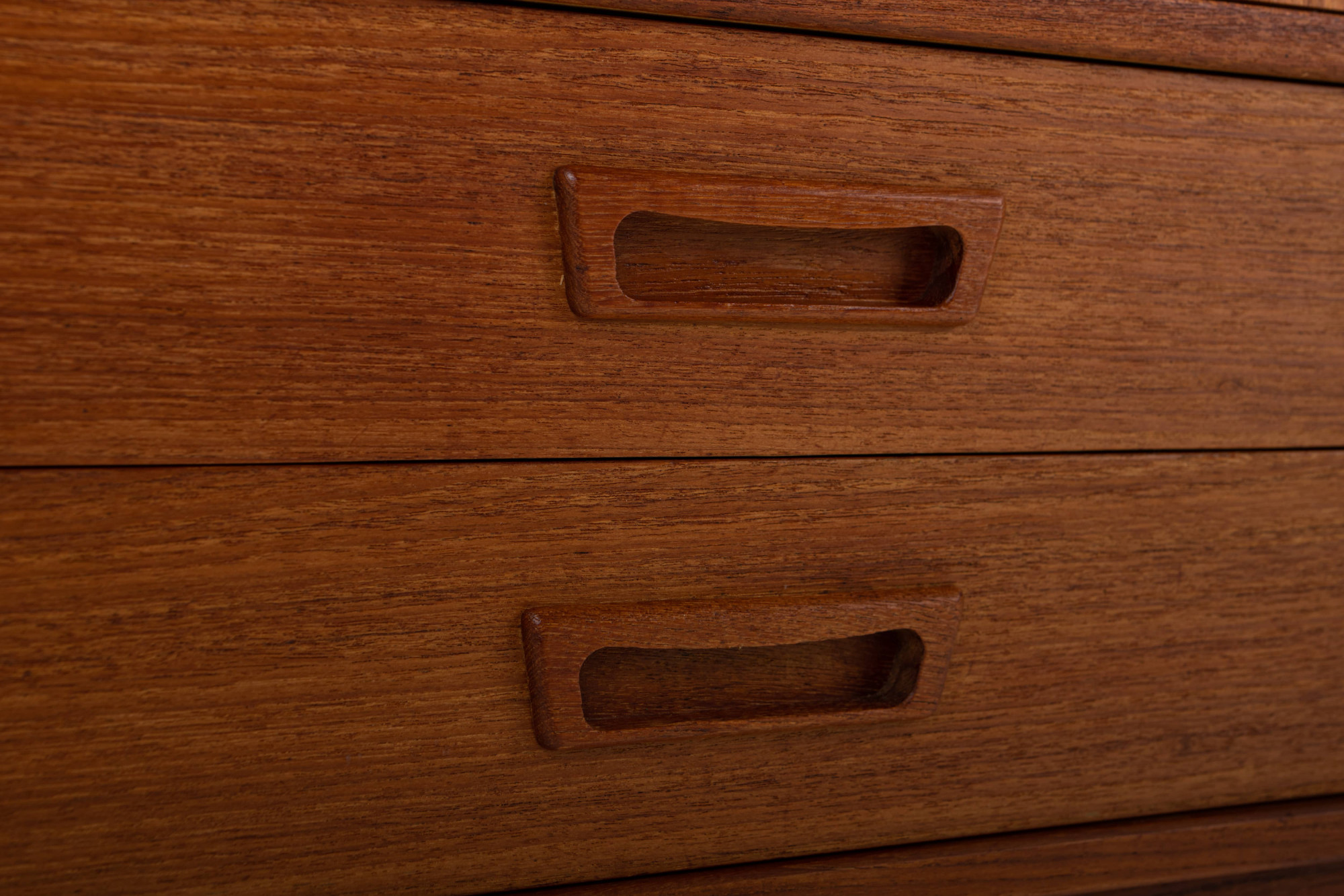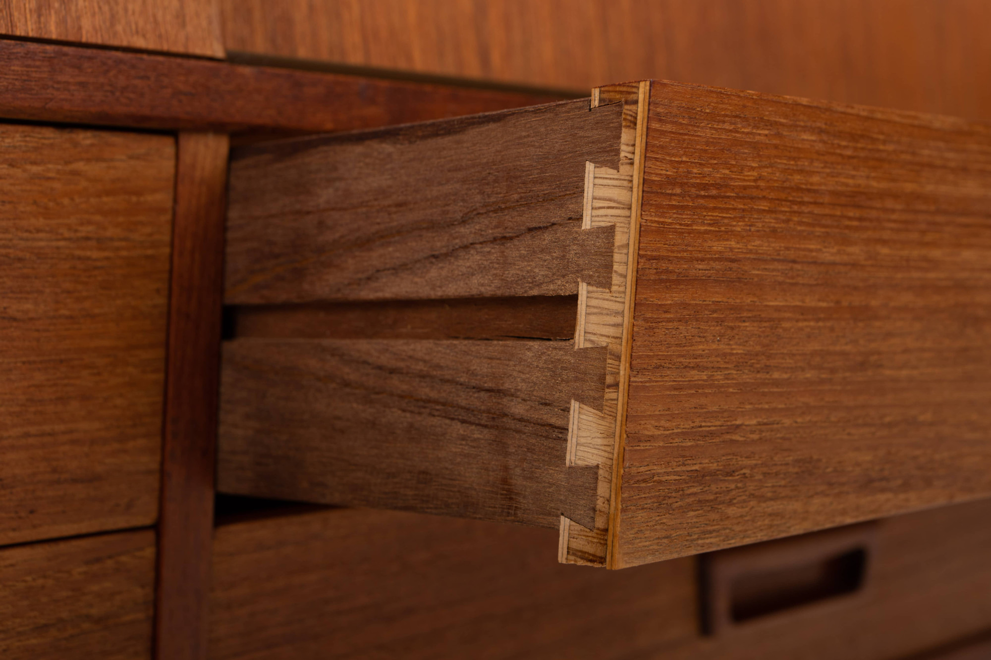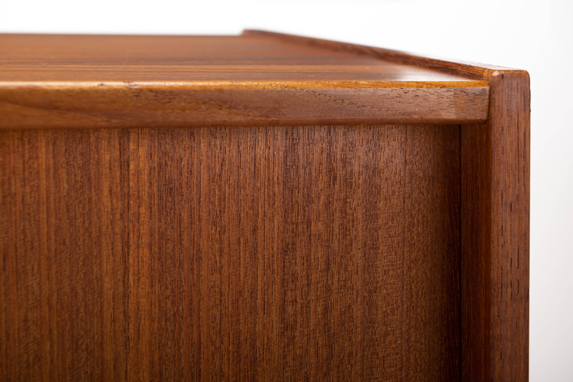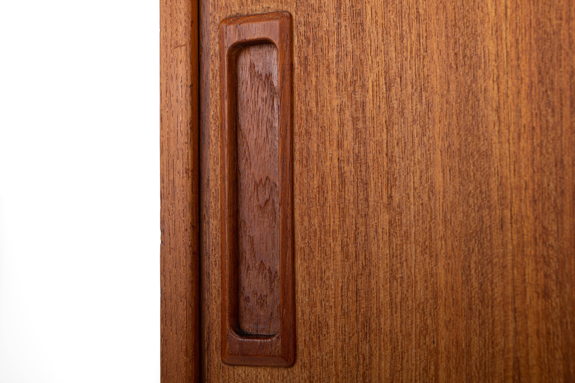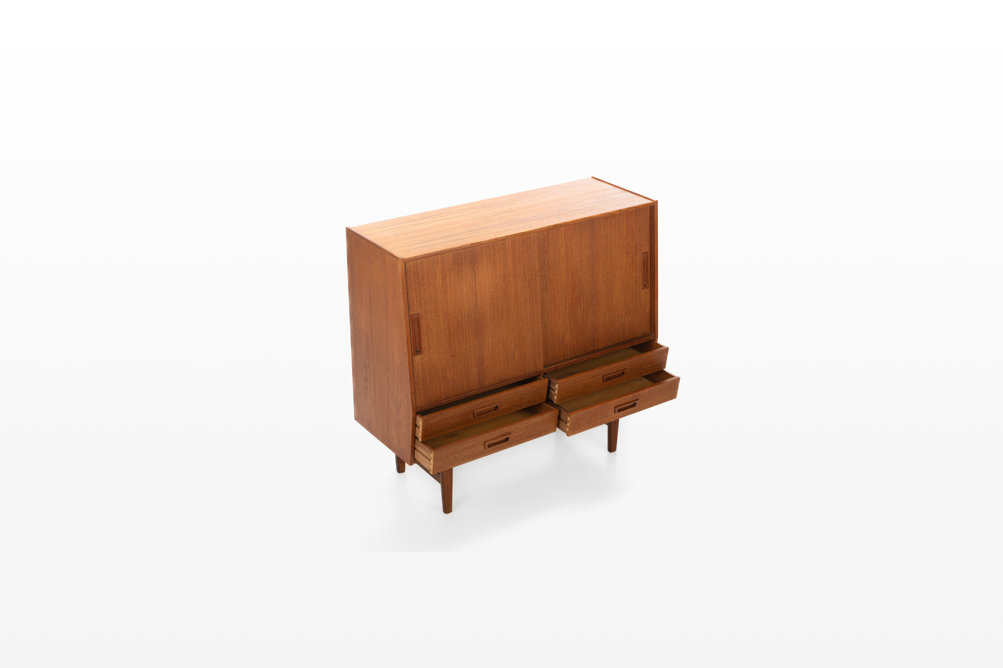 Scandinavian Mid Century cabinet in teak produced by Vemb Møbelfabrik, 1960s. The cabinet has two sliding doors, four drawers and plenty of storage space.