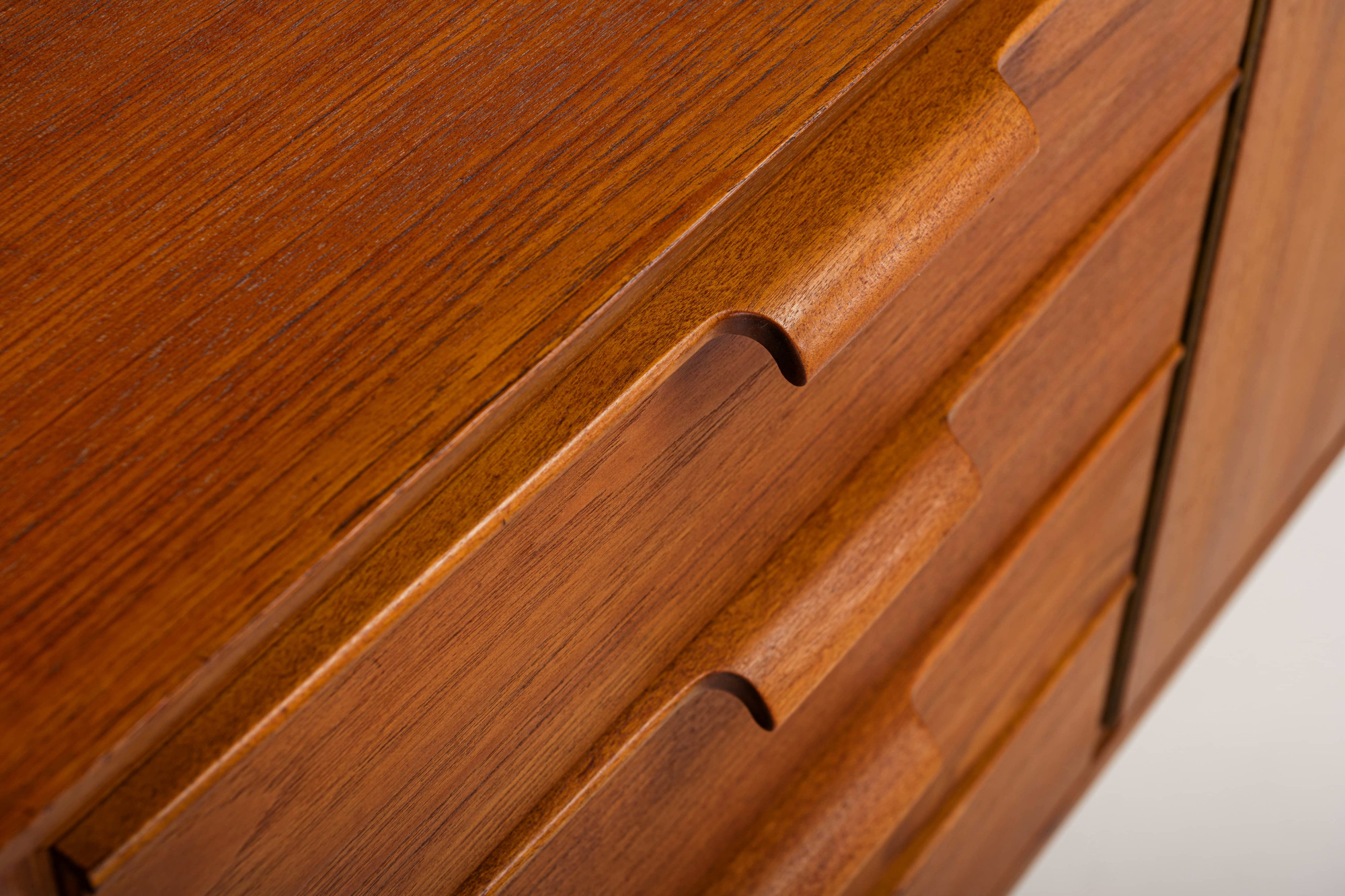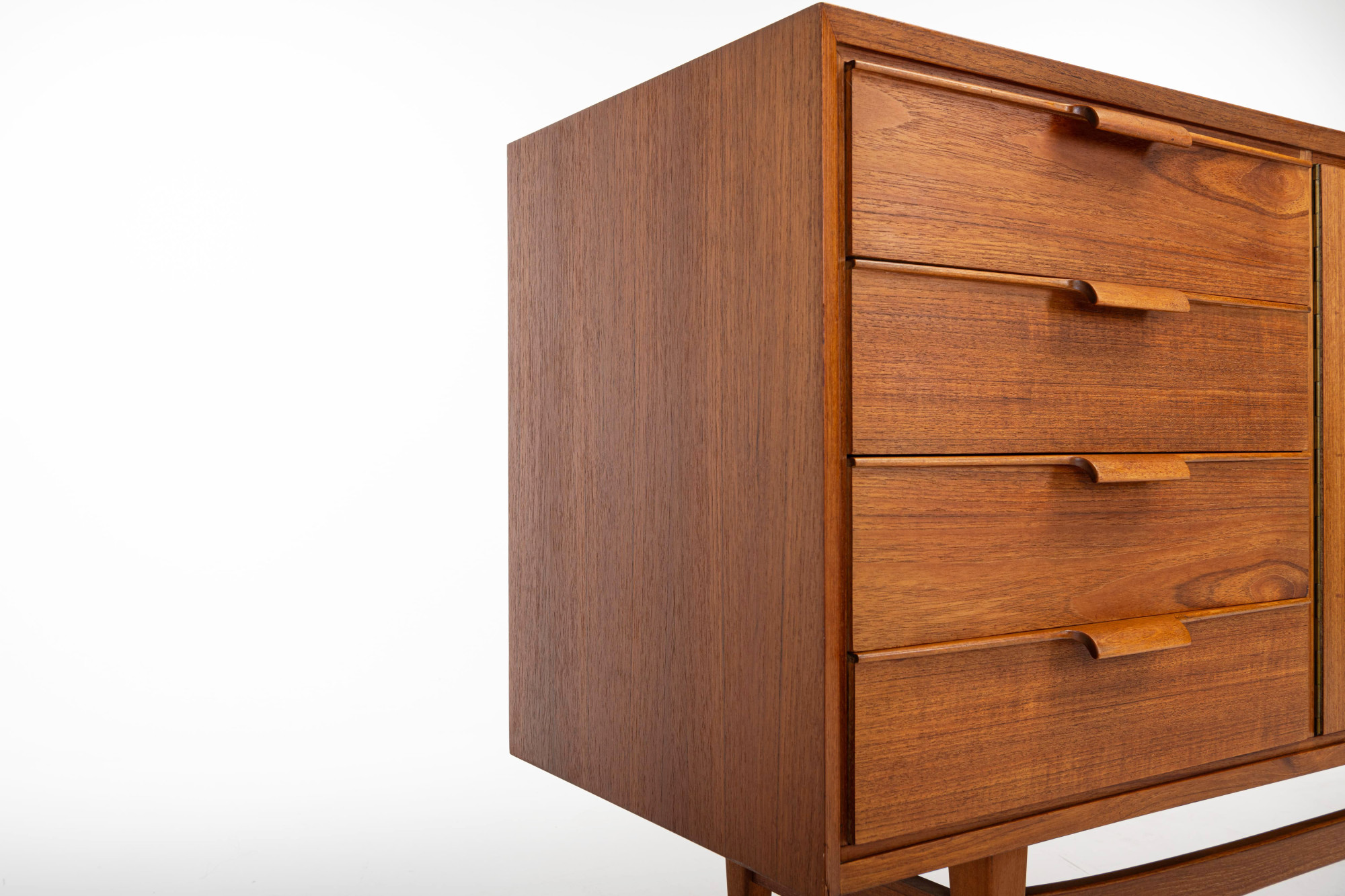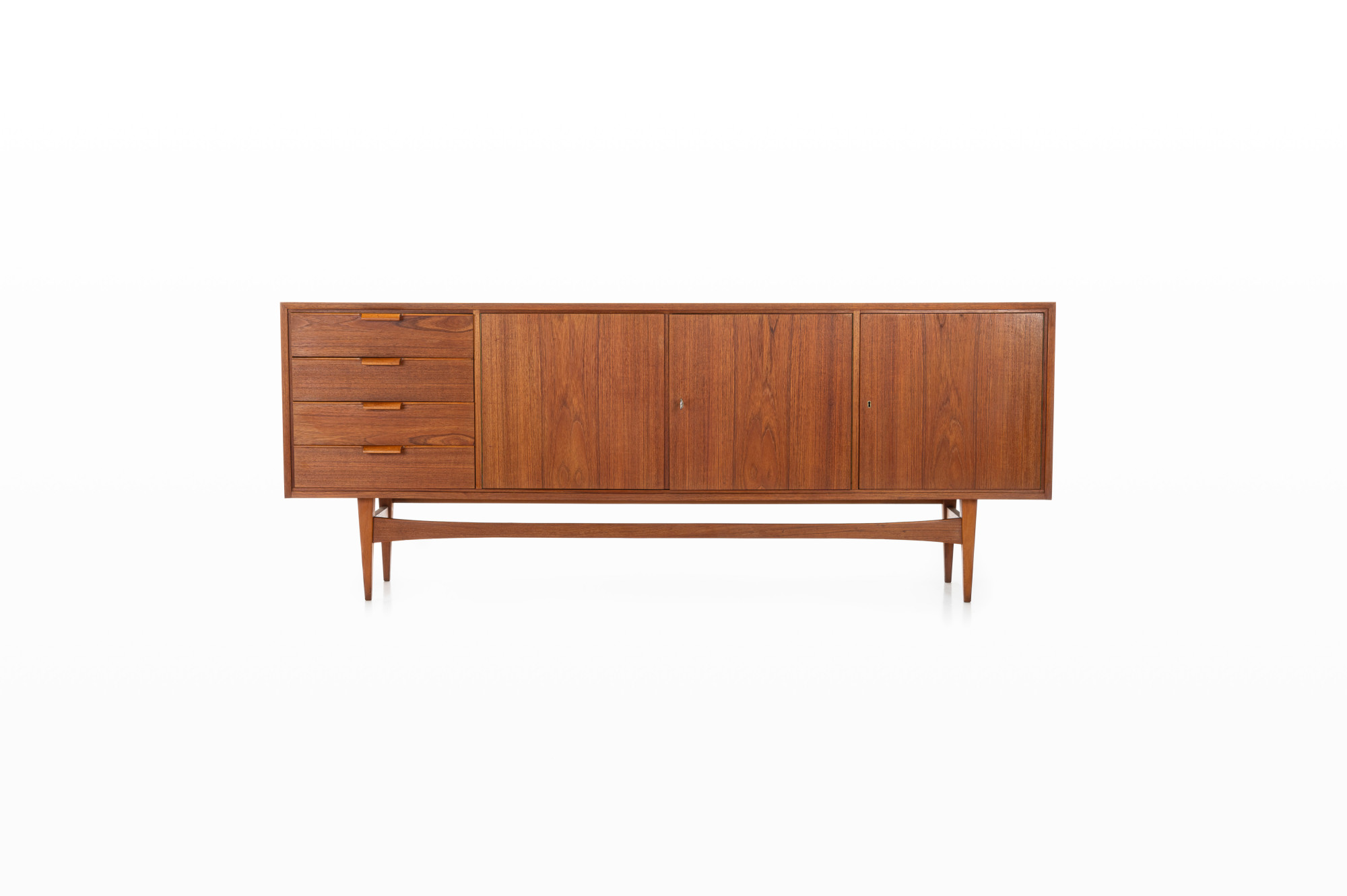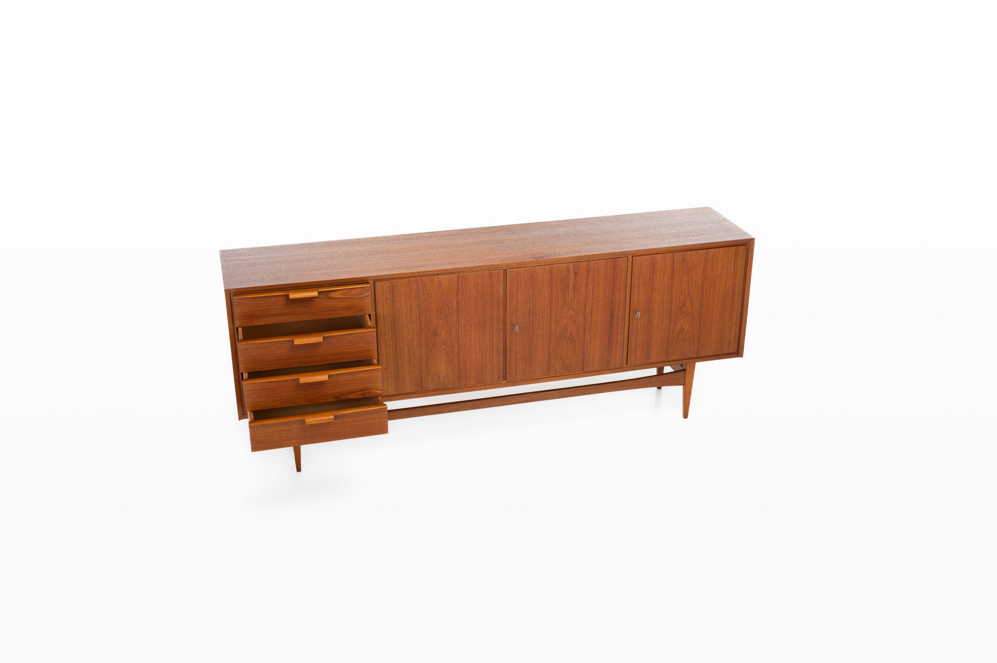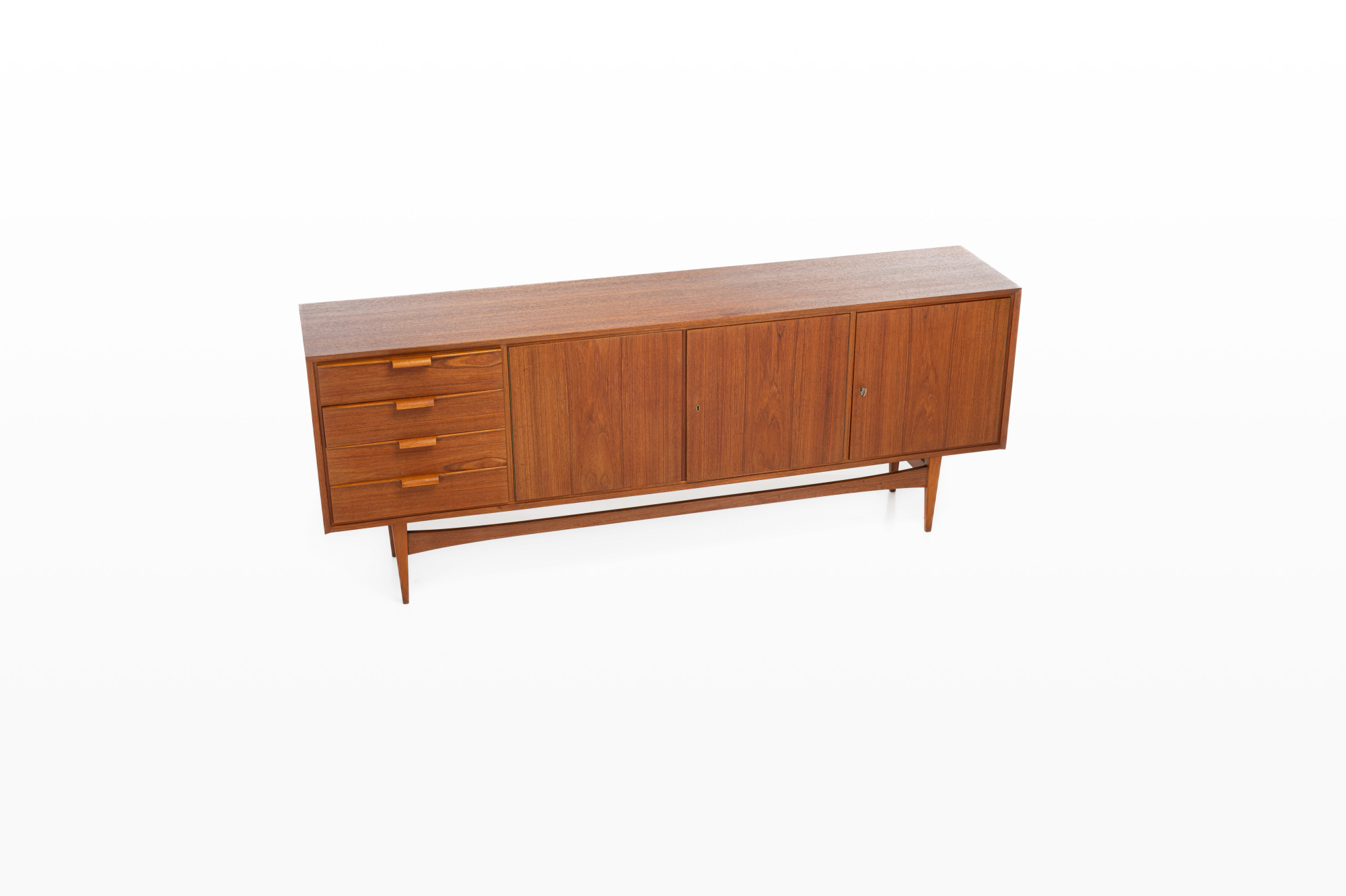 Nice vintage sideboard in teak, produced in Germany in the 1960s. The sideboard has three folding doors and four drawers.