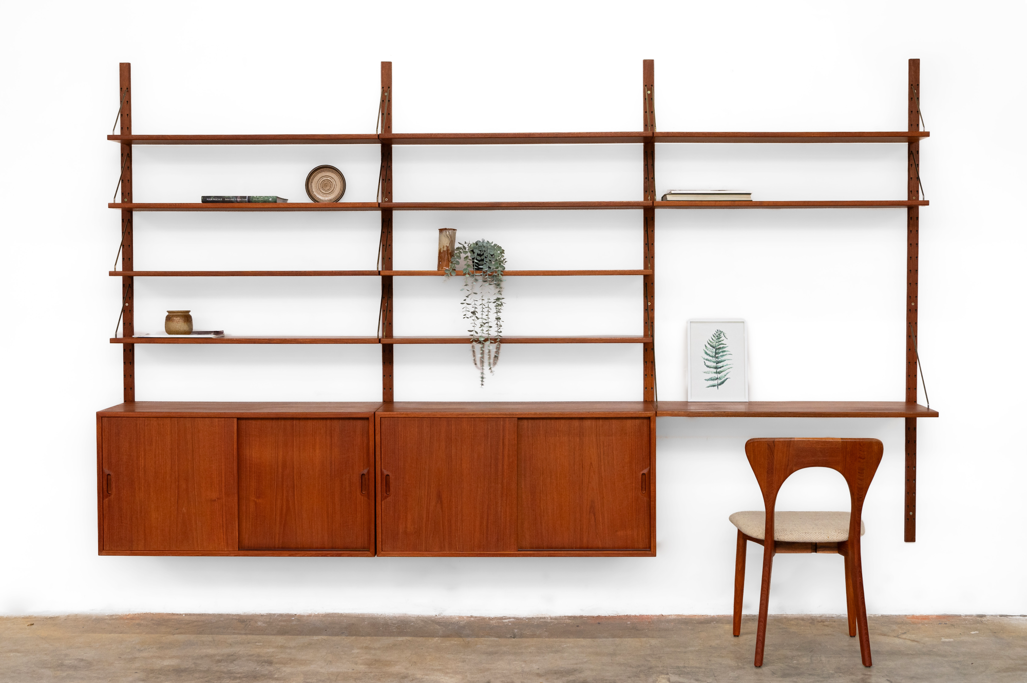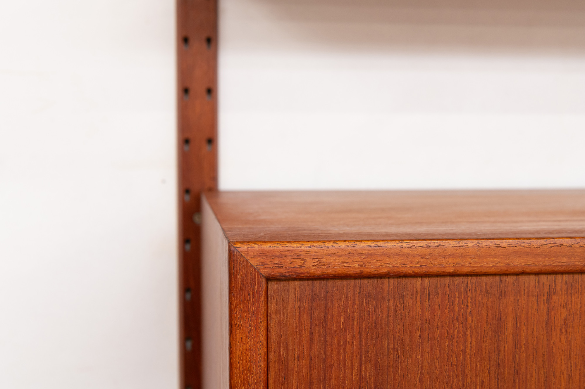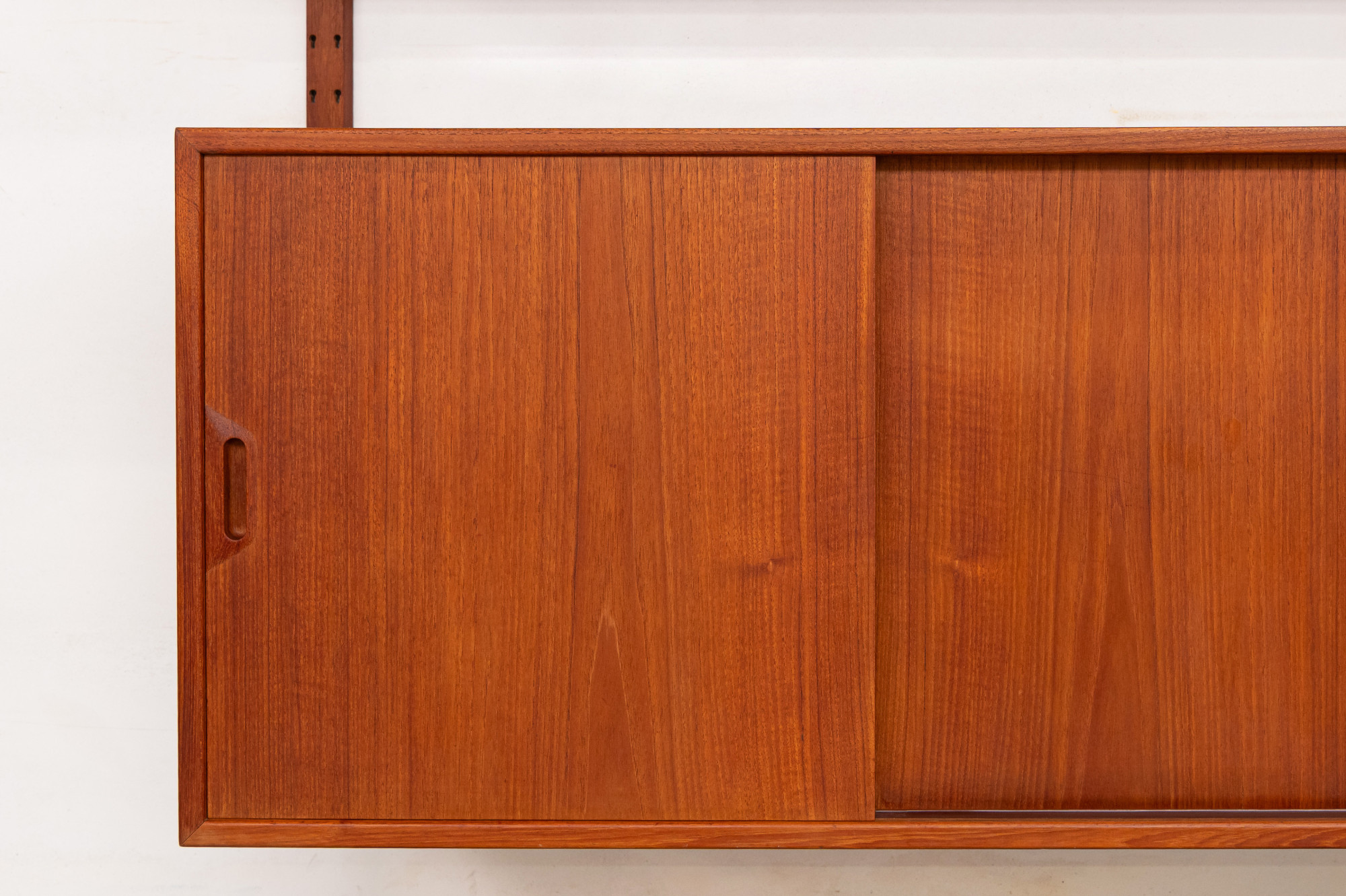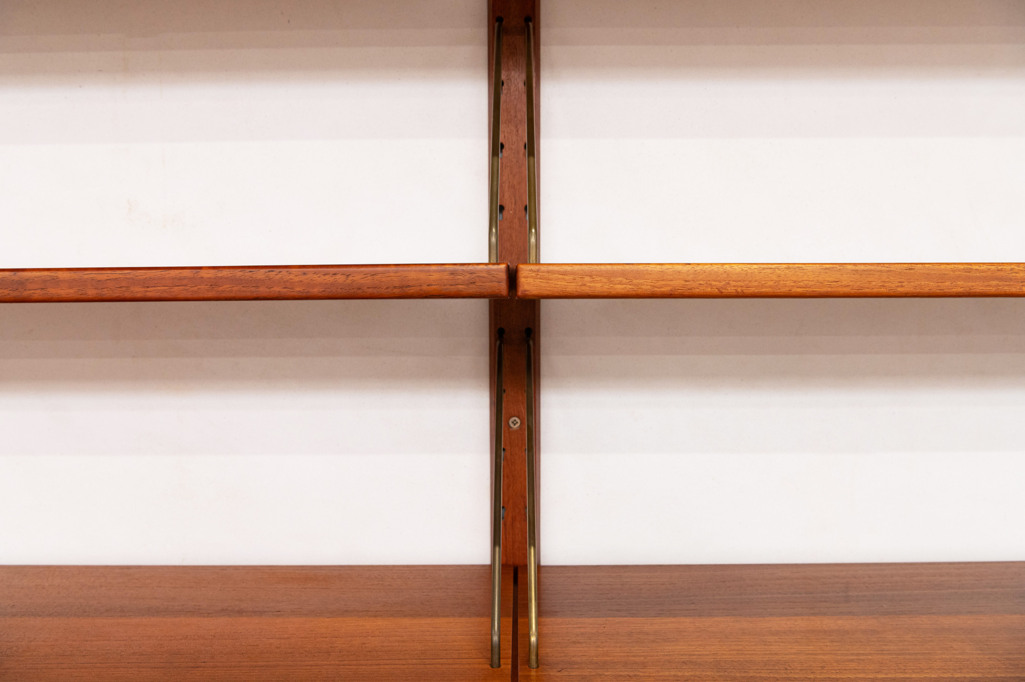Danish modular wall unit by Albert Hansen for Excelent, Denmark 1960s. This teak setup has two storage cabinets, one desk shelf and ten bookshelves. Always adaptable and further expandable. Marked by the producer.