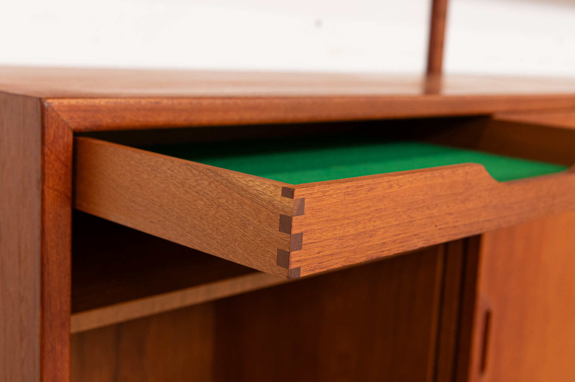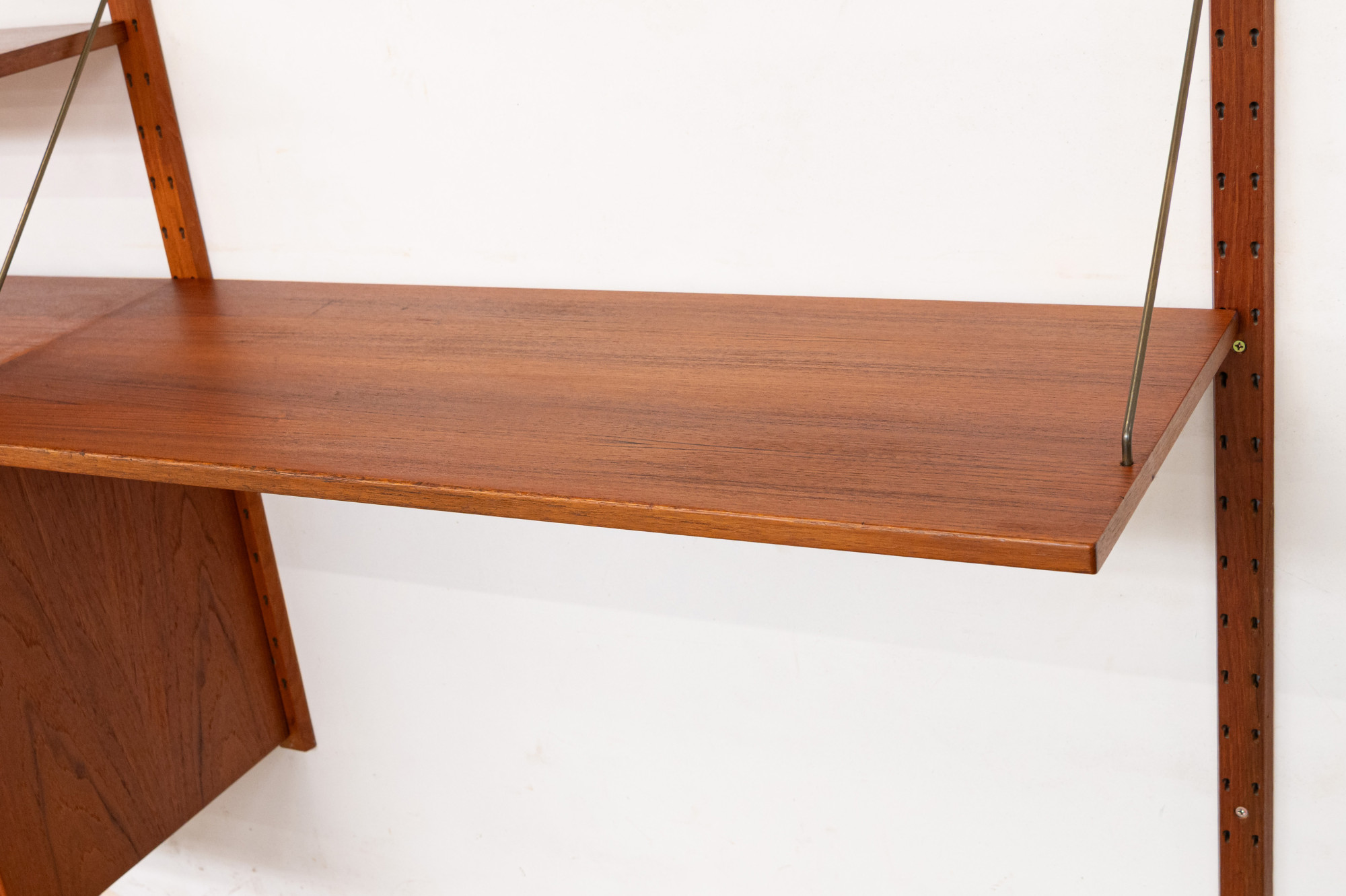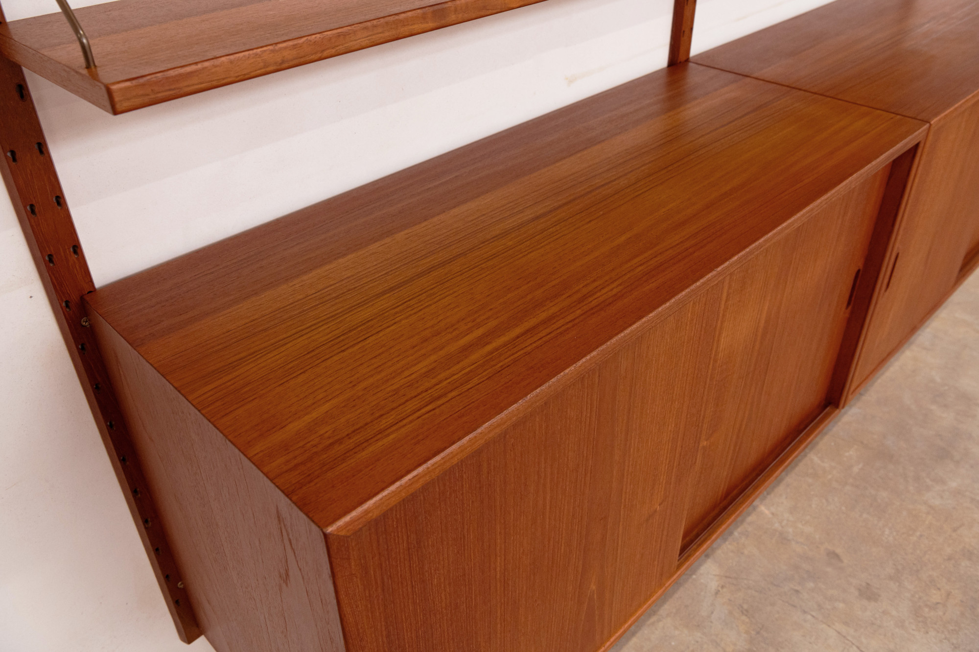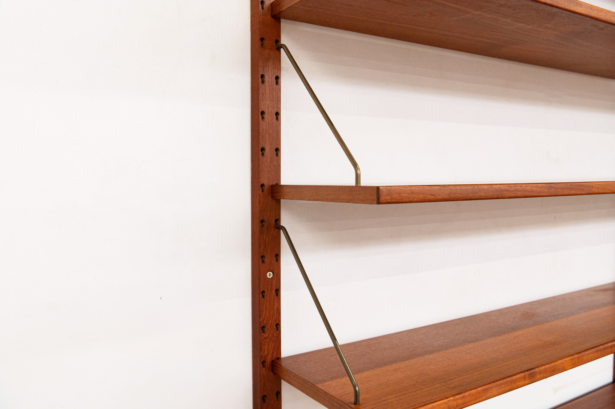 Danish modular wall unit by Albert Hansen for Excelent, Denmark 1960s. This teak setup has two storage cabinets, one desk shelf and ten bookshelves. Always adaptable and further expandable. Marked by the producer.