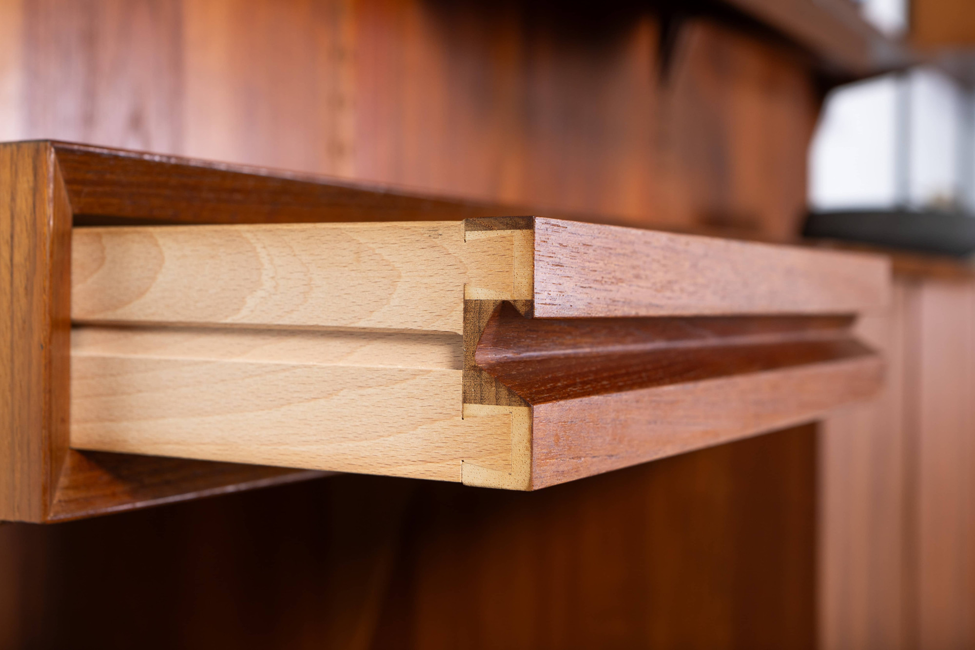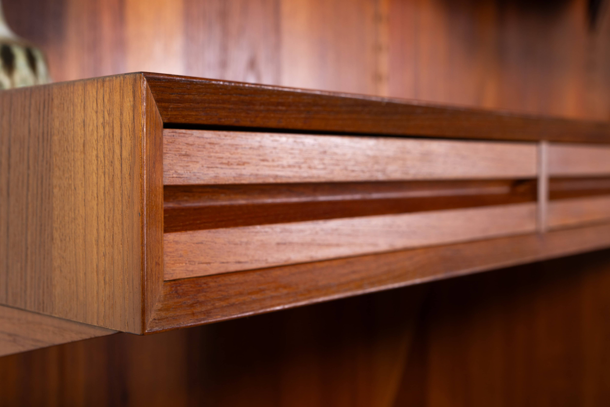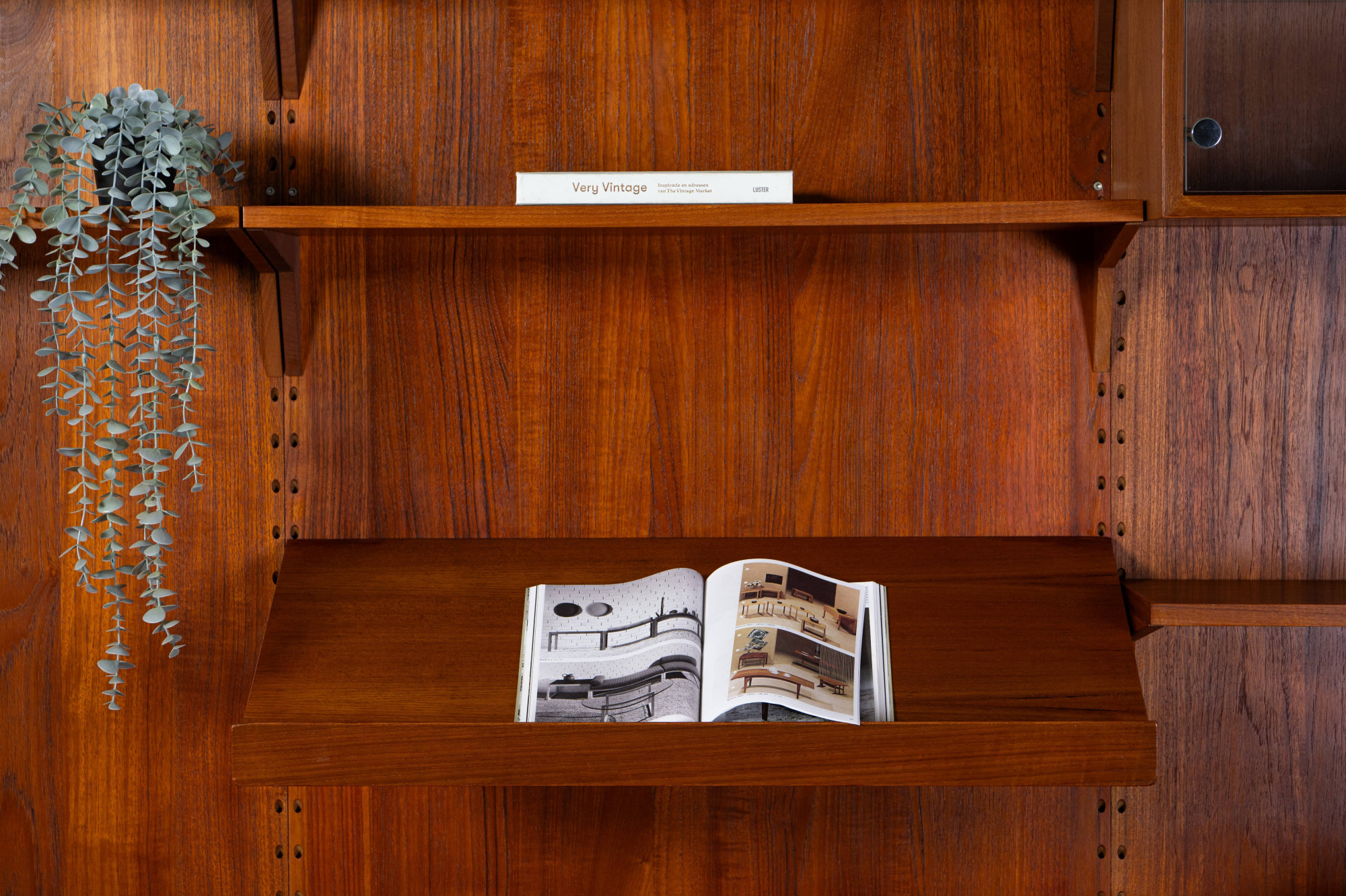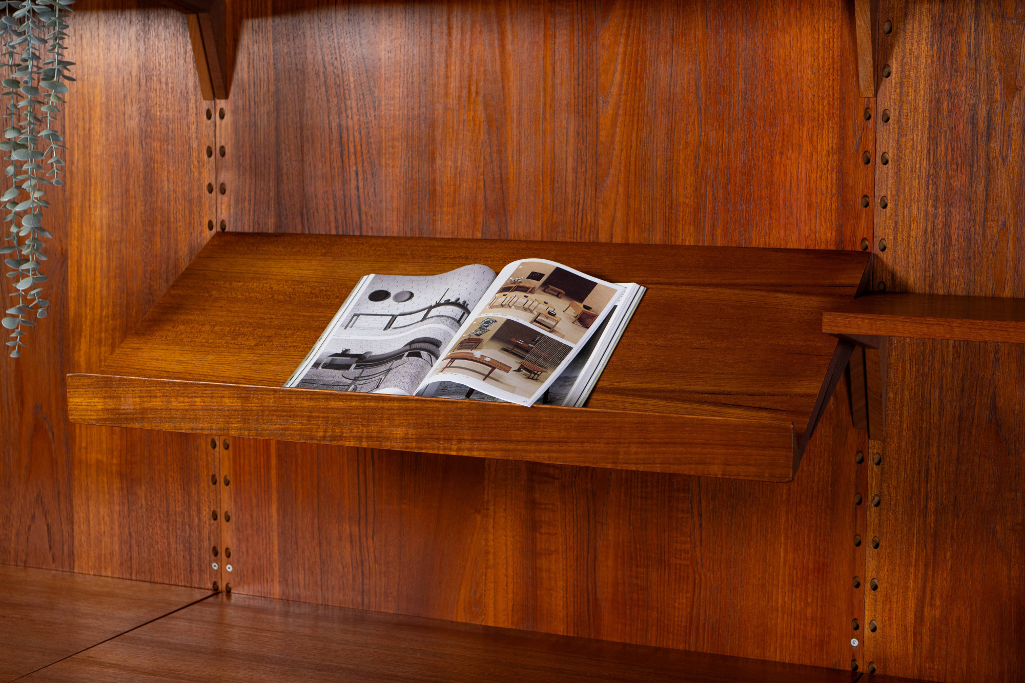Danish modular wall unit by Poul Cadovius for Cado. This teak setup has two storage cabinets, one display cabinet, one desk cabinet, one reading shelf and seven bookshelves. Always adaptable and further expandable.