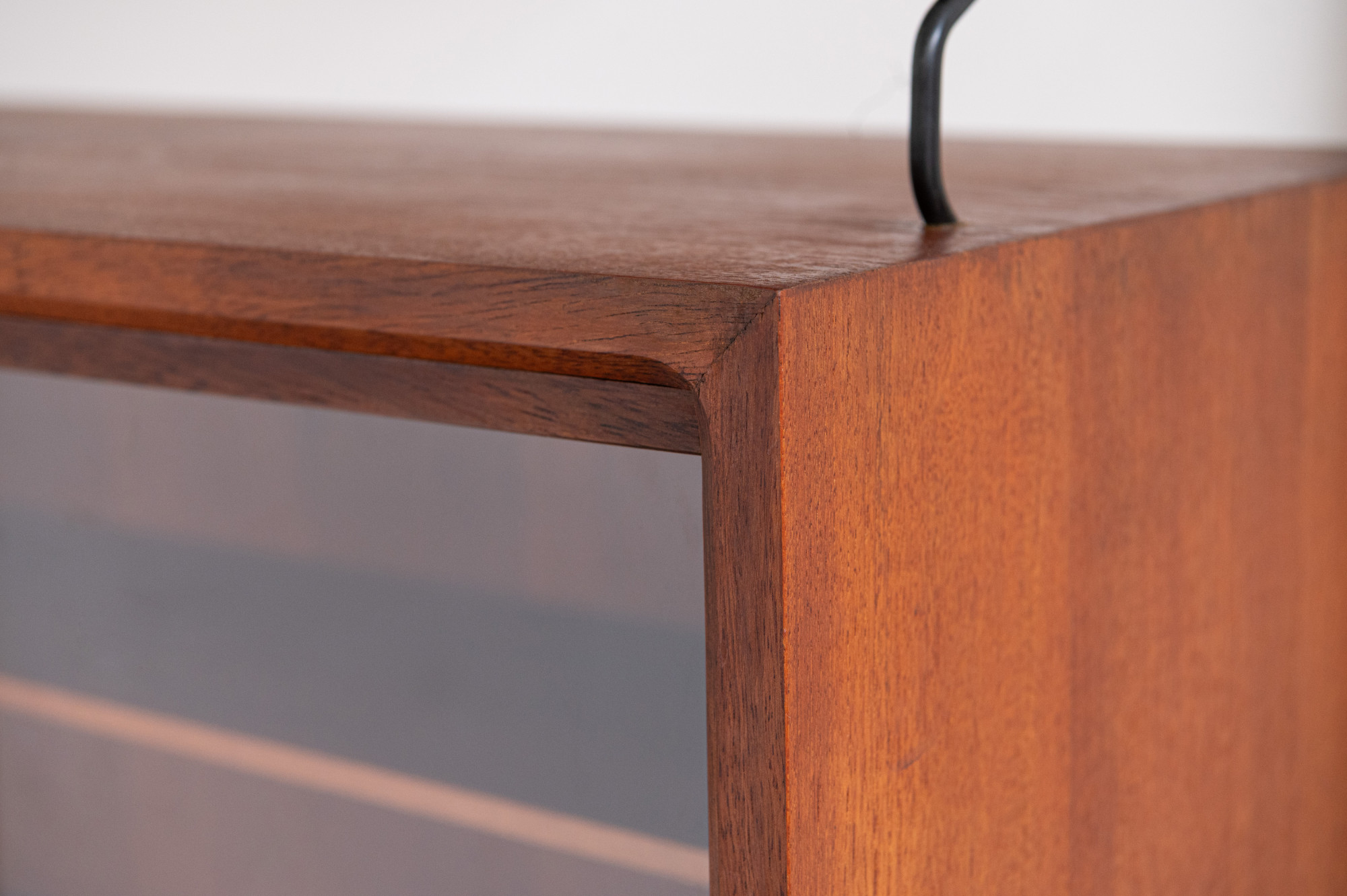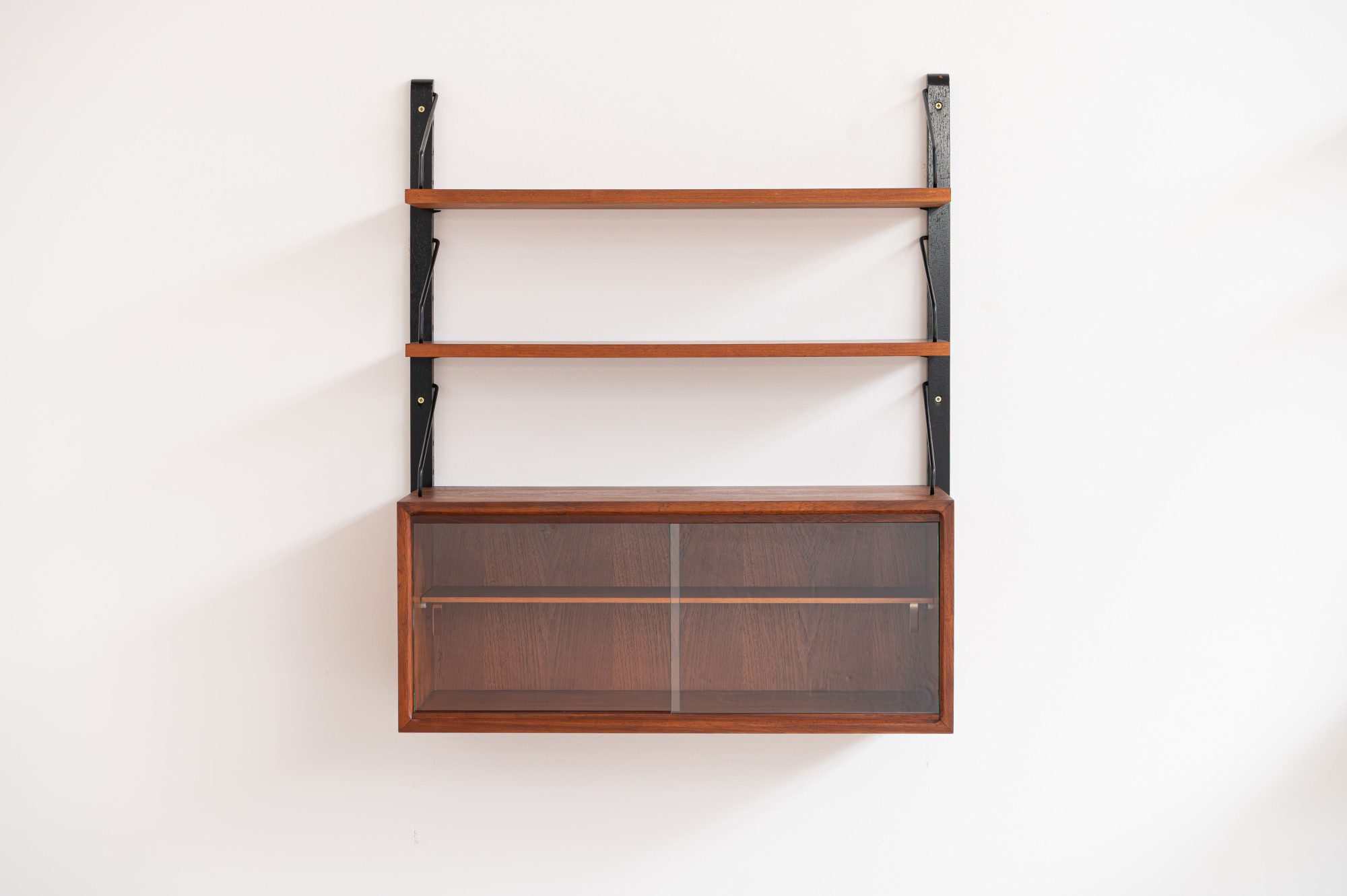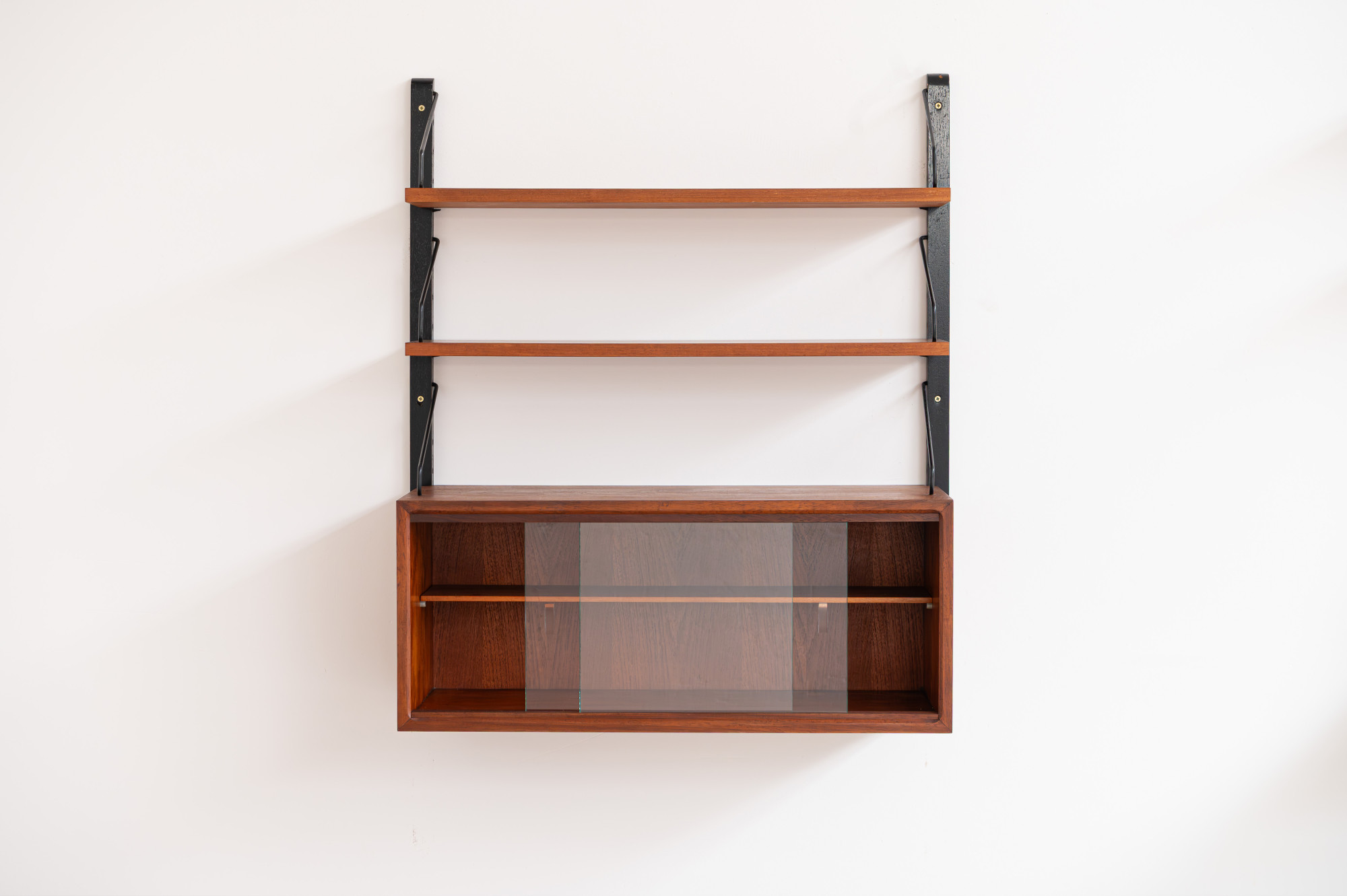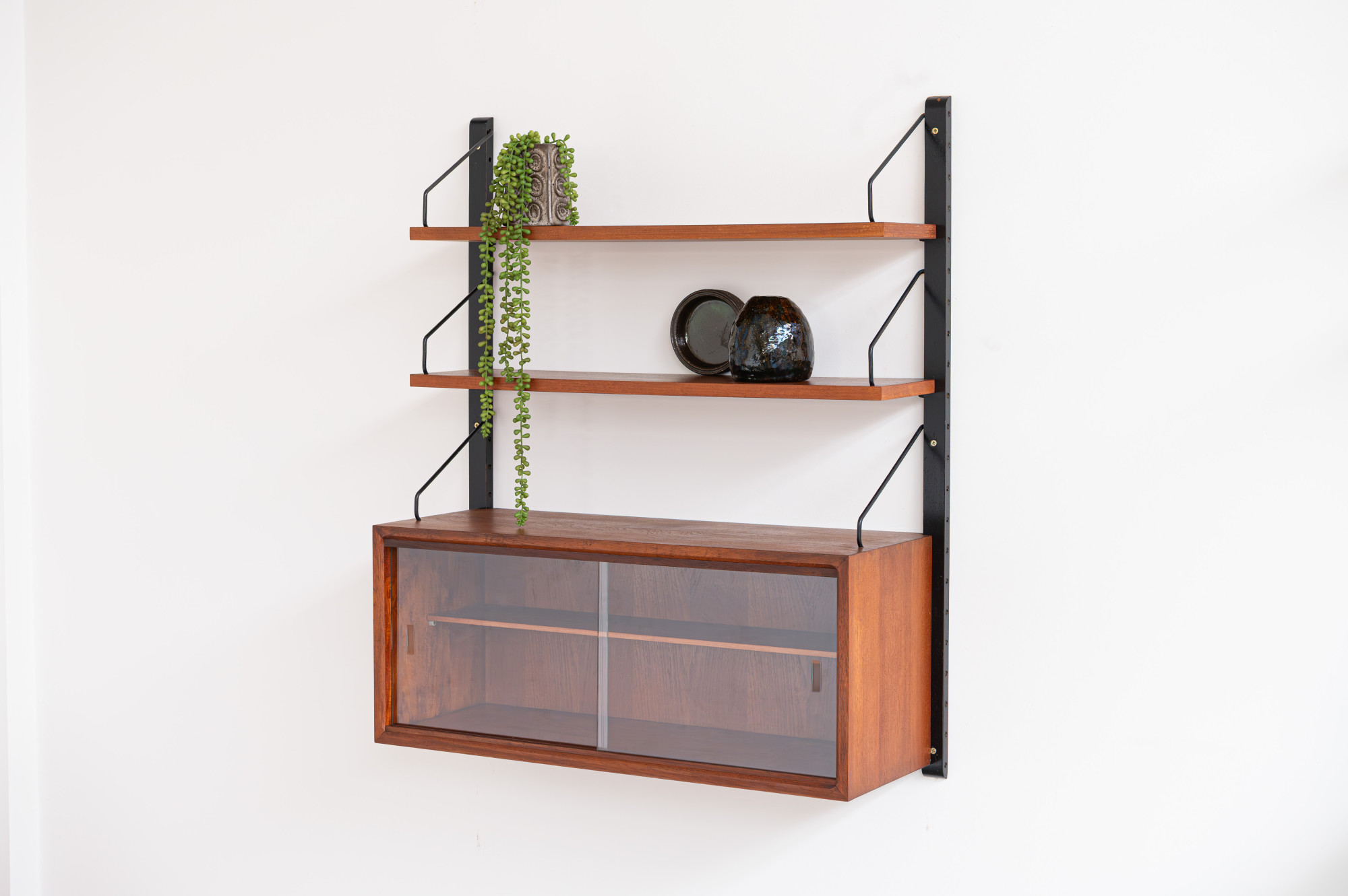 Danish modular wall unit by Poul Cadovius for Royal System, produced in Denmark in the 1960s. This teak setup has one display cabinet and two bookshelves. Always adaptable and further expandable.
