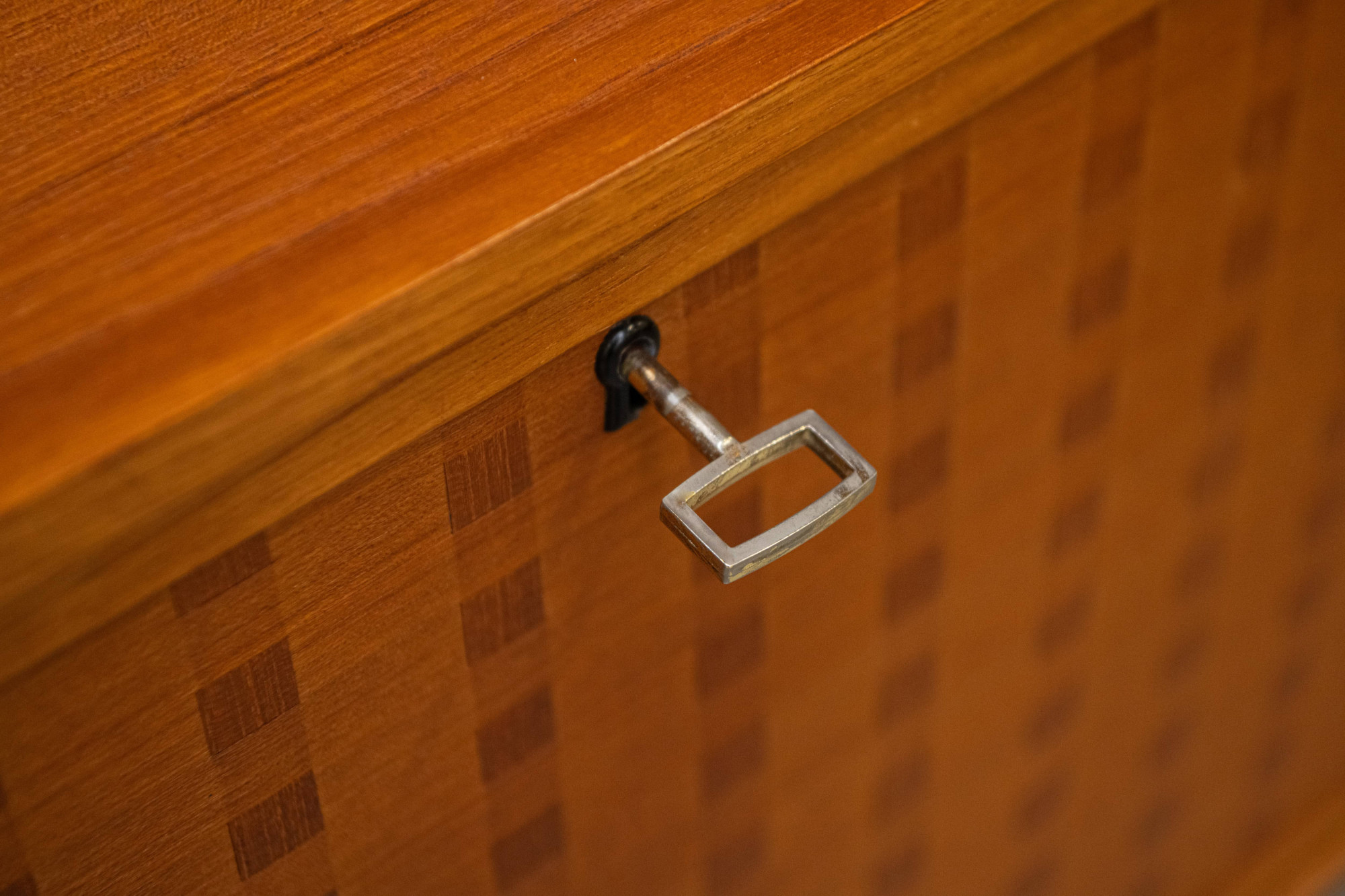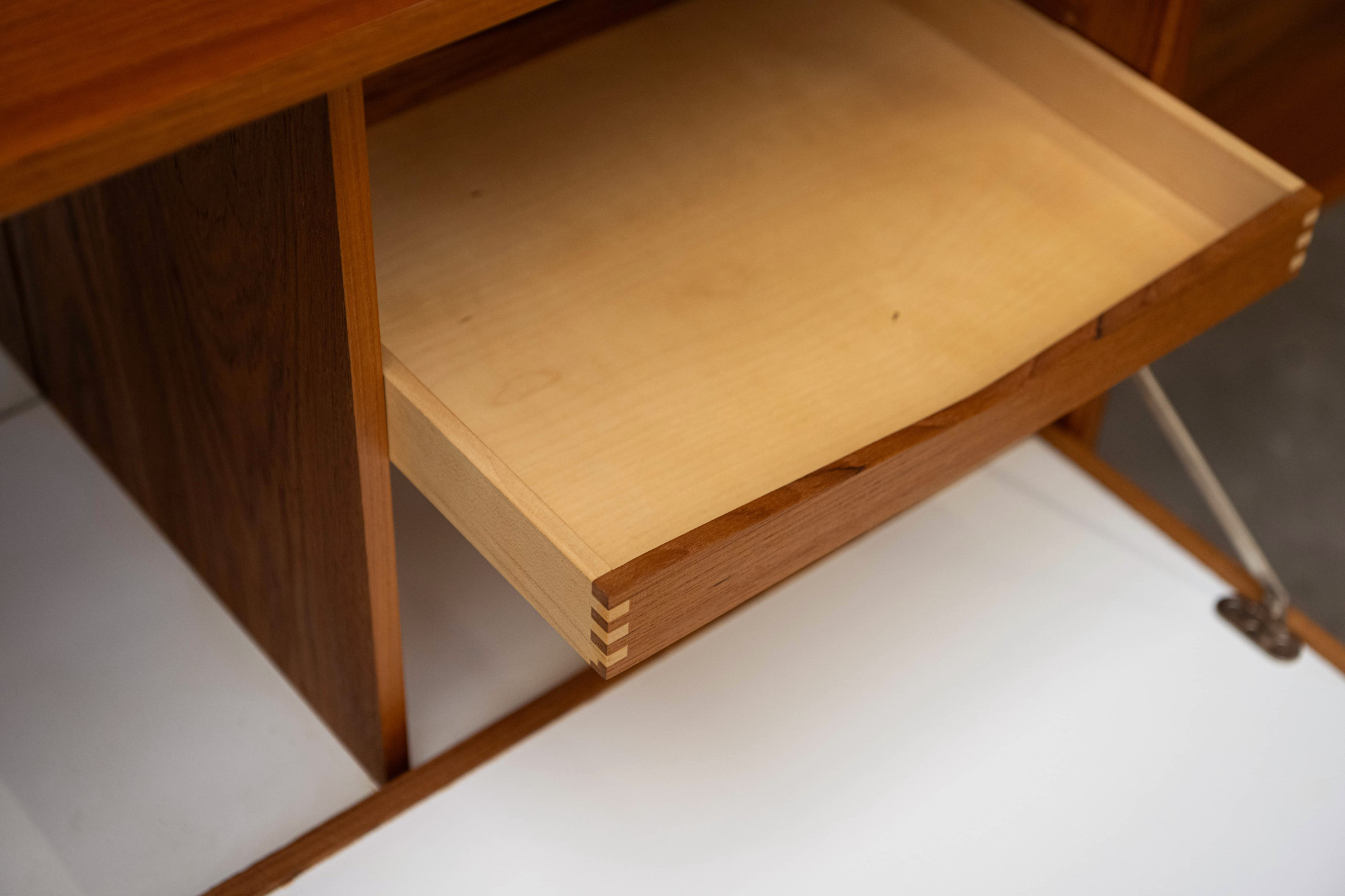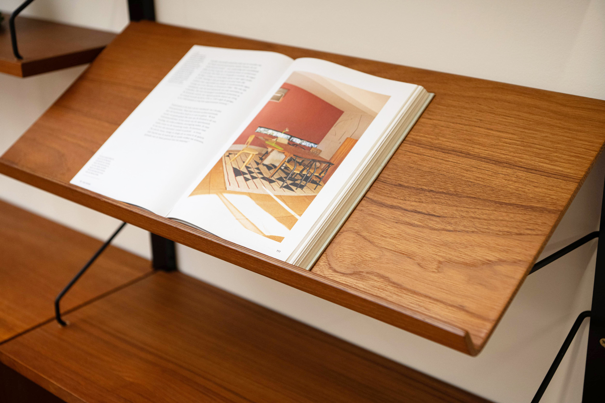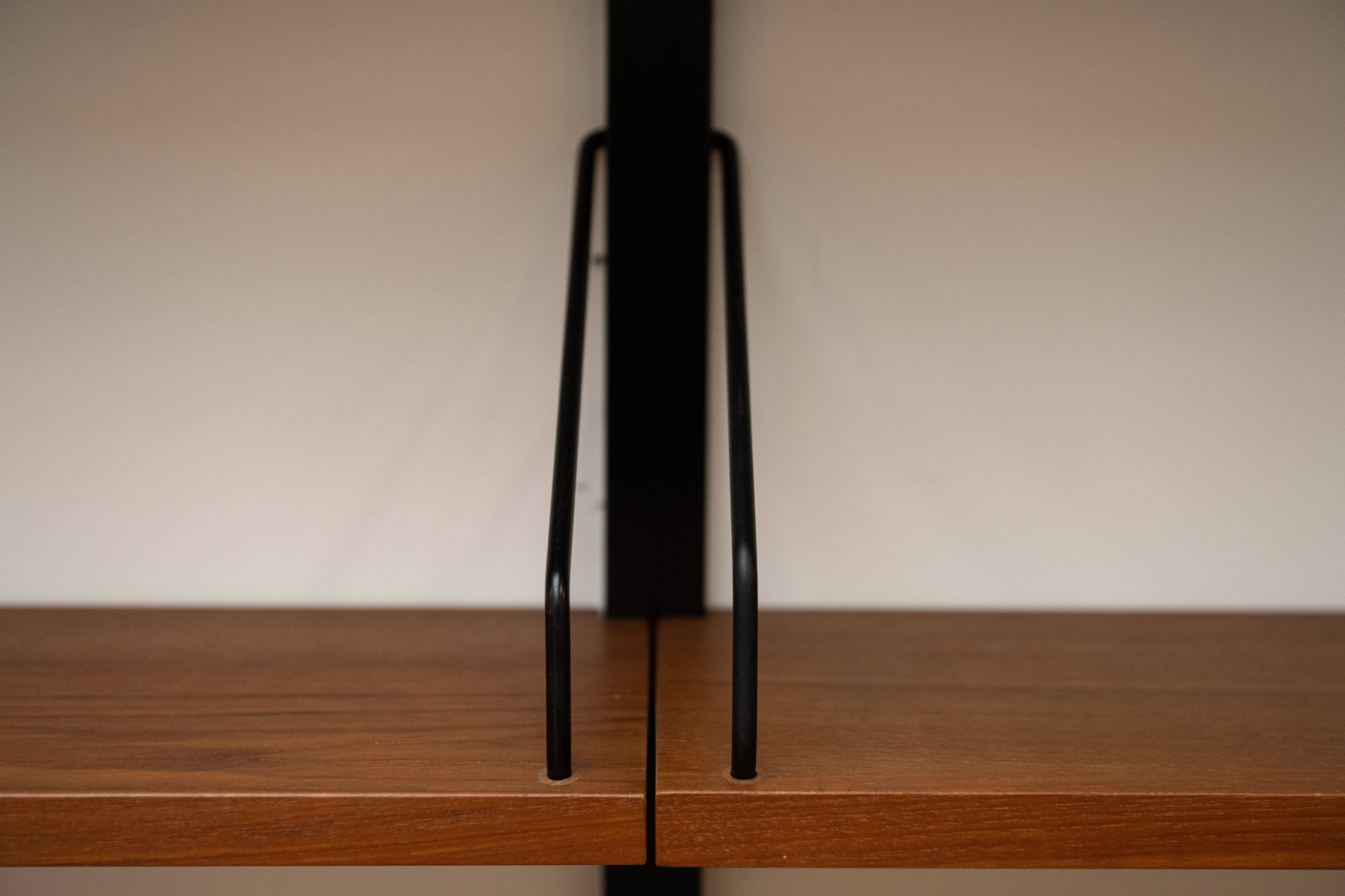 Danish modular wall unit by Poul Cadovius for Royal System, produced in Denmark in the 1960s. This teak setup has one bar cabinet, LP-cabinet, one reading shelf, two display cabinets and nine bookshelves. Always adaptable and further expandable.