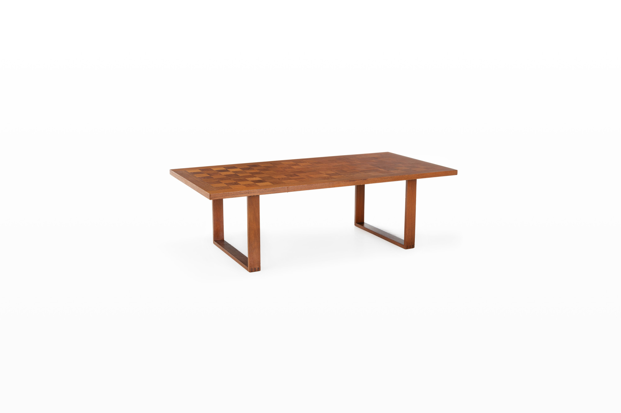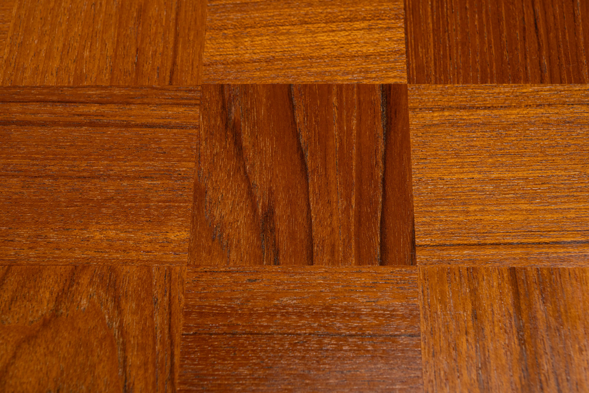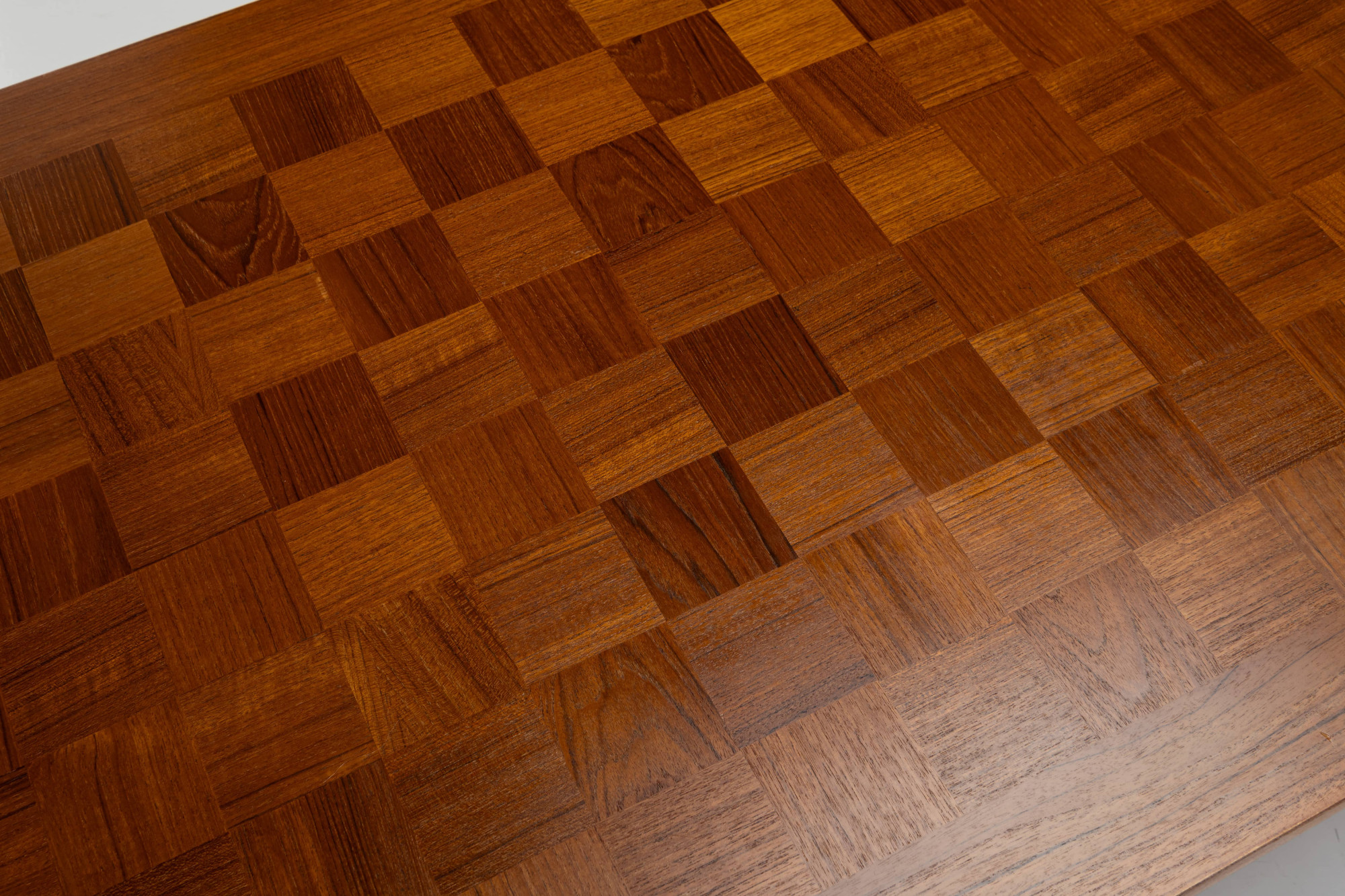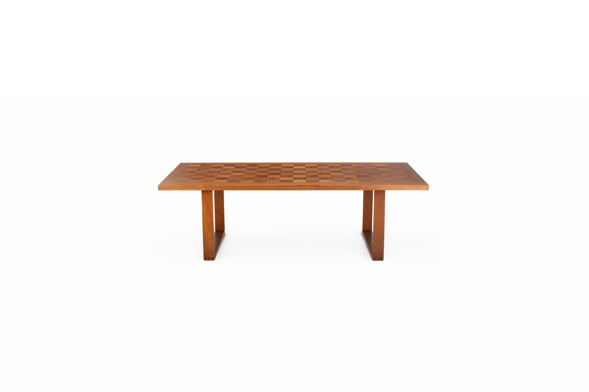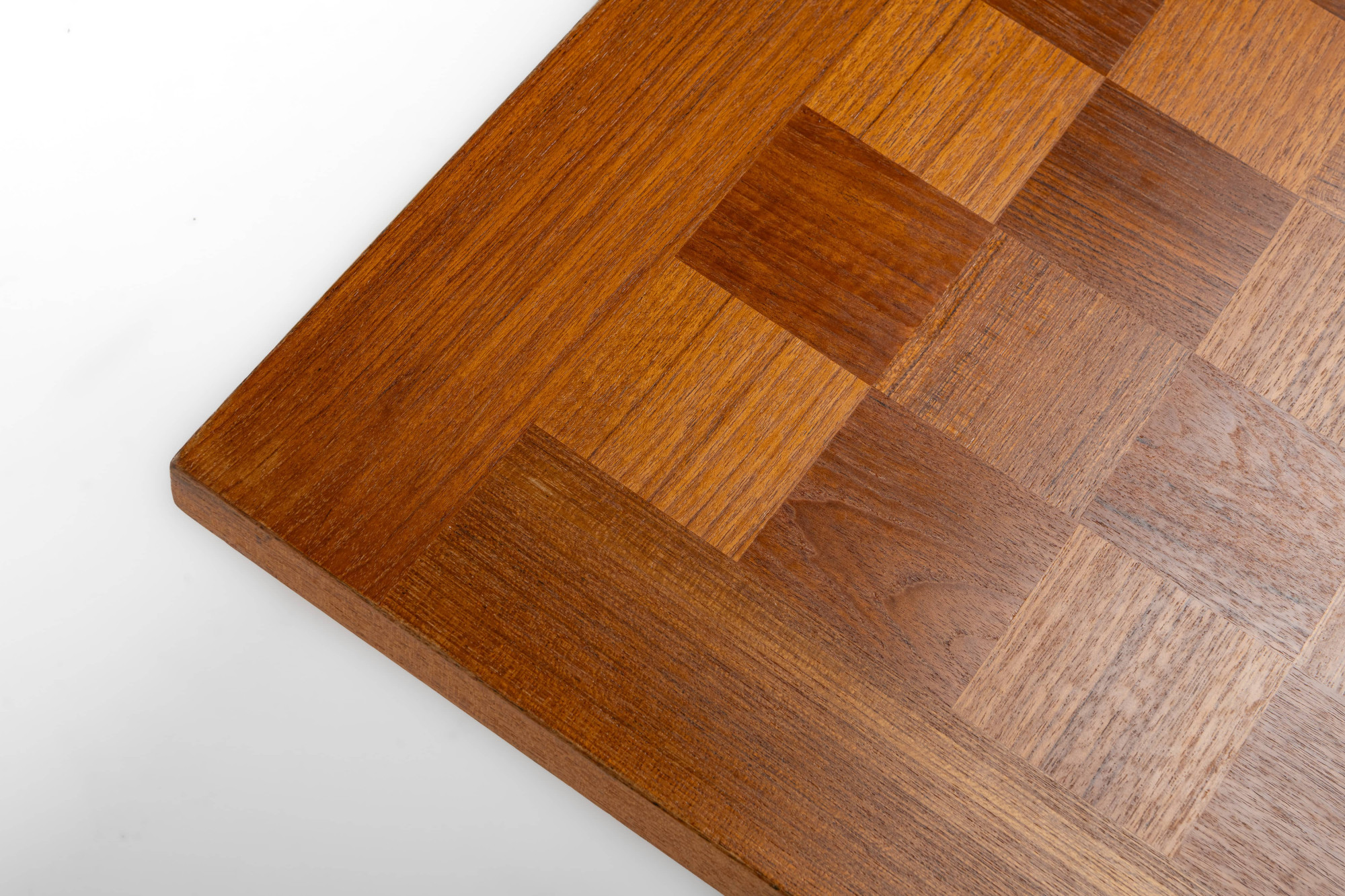 This vintage coffee table, featuring a chessboard pattern, was designed by Poul Cadovius for France & Son in Denmark during the 1960s. It is in excellent condition and has the manufacturer's mark.