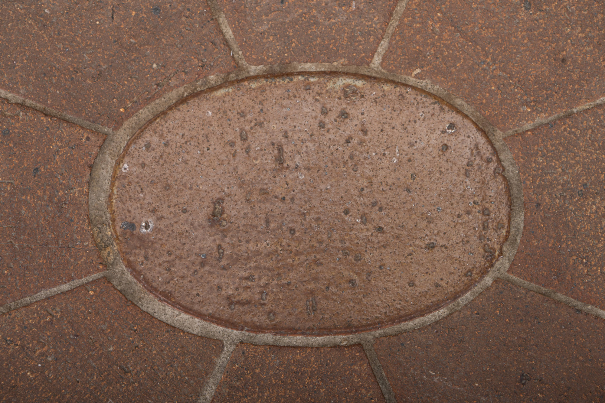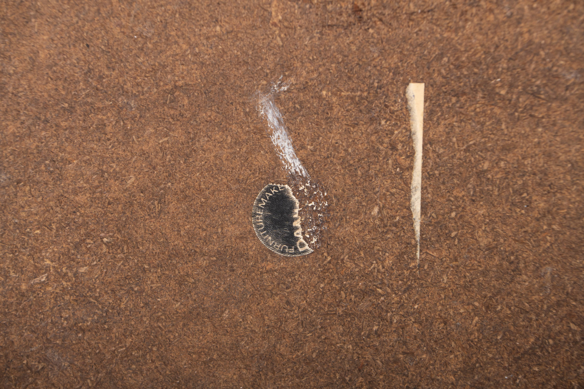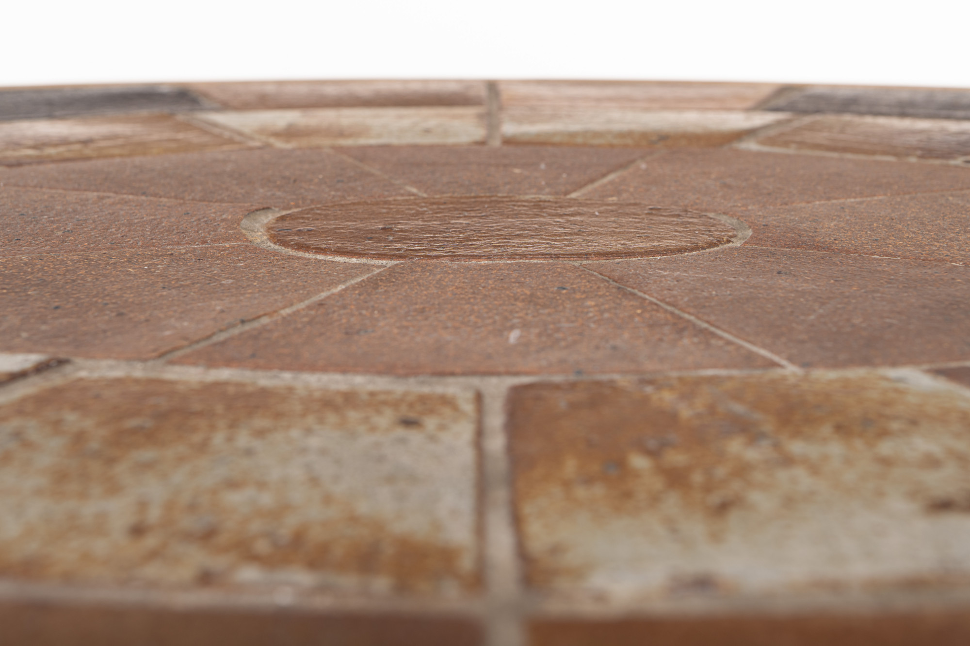 Danish Brutalist coffee table designed by Tue Poulsen and made by Haslev Møbelsnedkeri, Denmark 1960s. It has a solid oak base and the top is inlaid with ceramic tiles. The table is in very good condition and the Danish control mark is present.