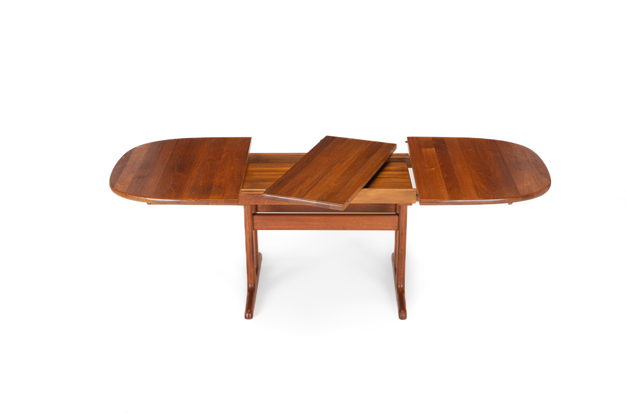 Beautiful extendable dining table produced by Glostrup, Denmark. The table is made of solid teak and in very good restored condition. Marked by the producer.