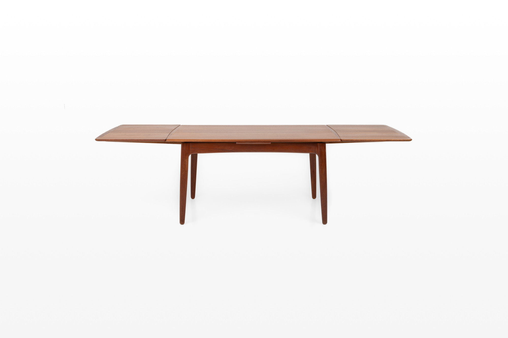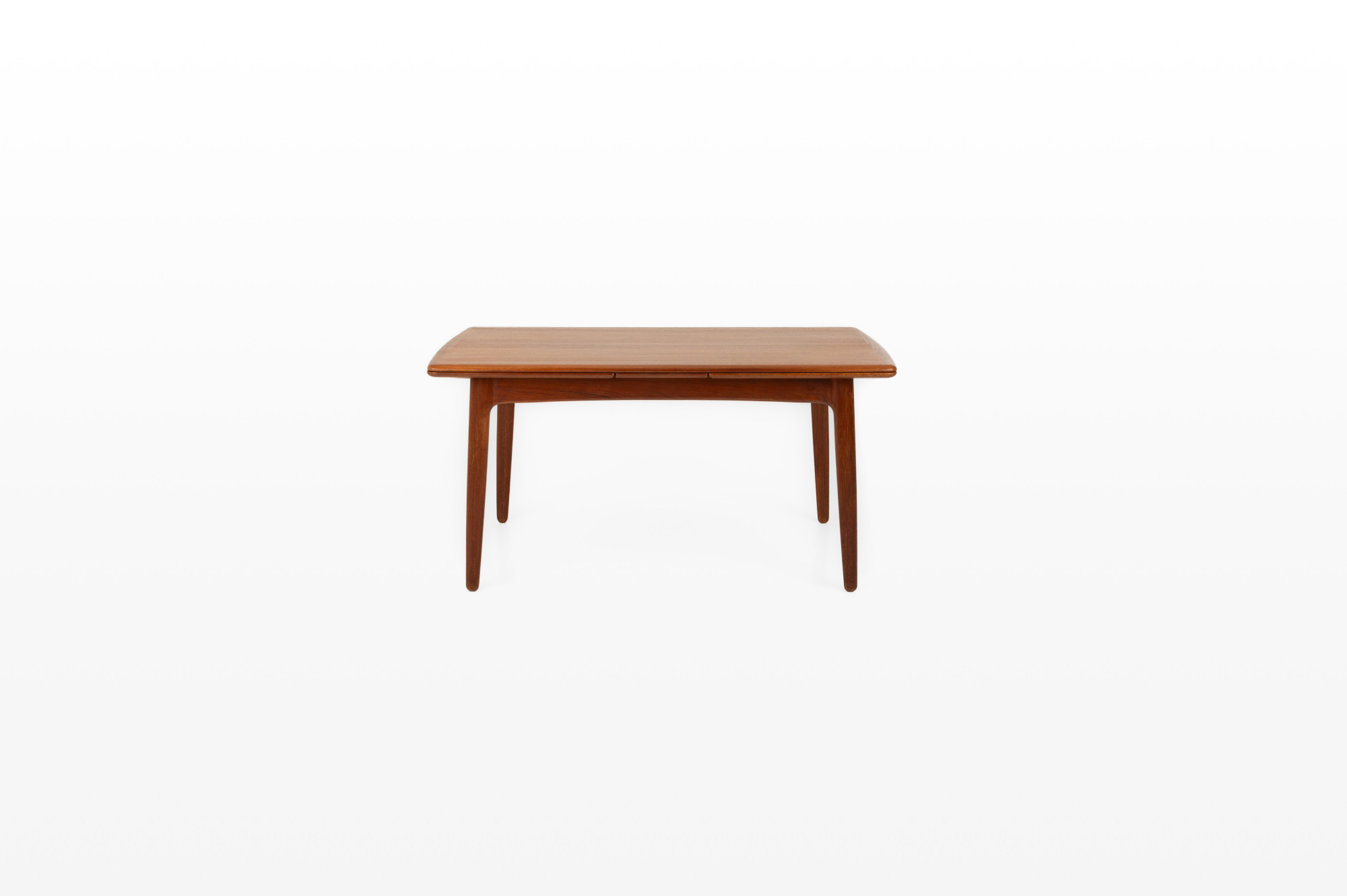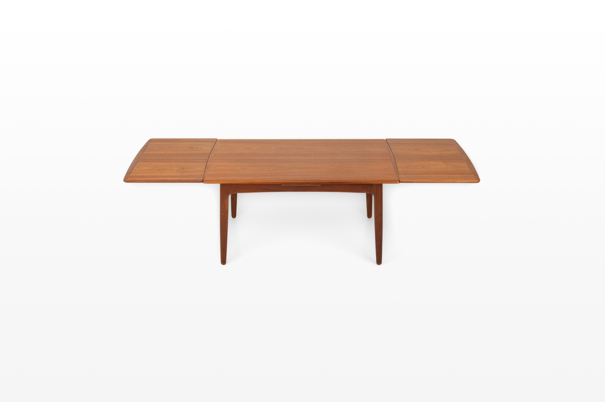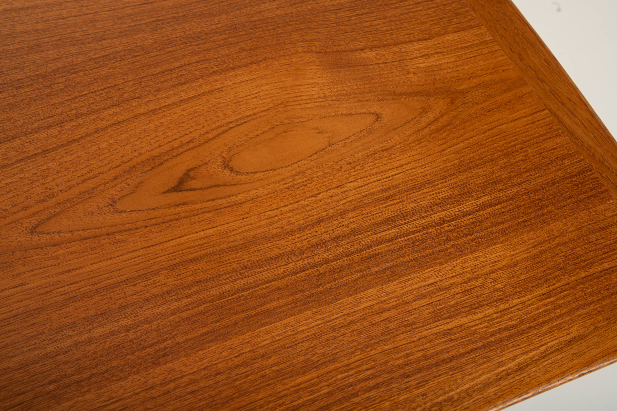 A beautifully crafted extendable dining table in teak. The table is in very good vintage condition, with a warm tone and smooth finish. It extends easily to accommodate additional guests, combining function with timeless style.
