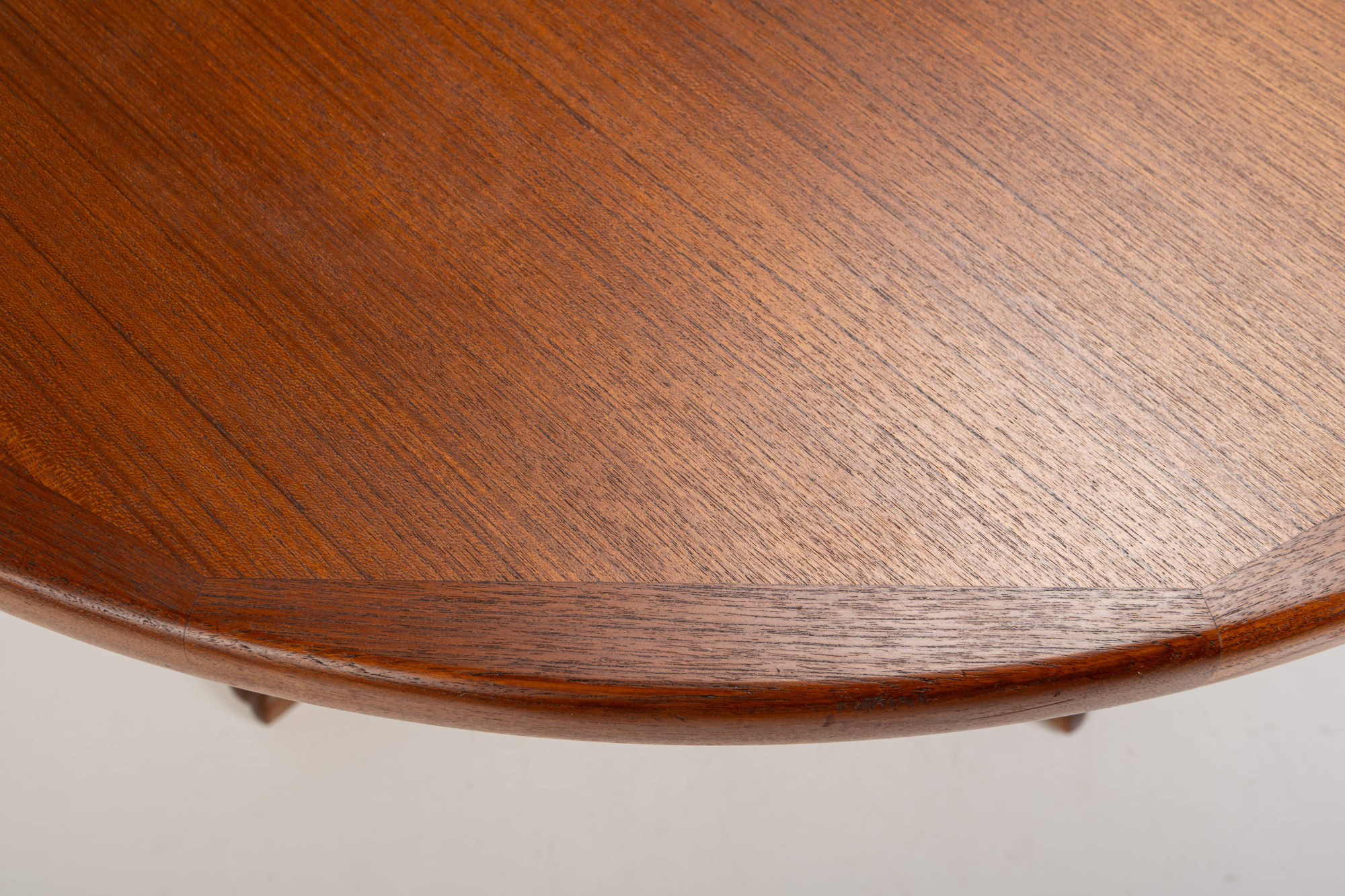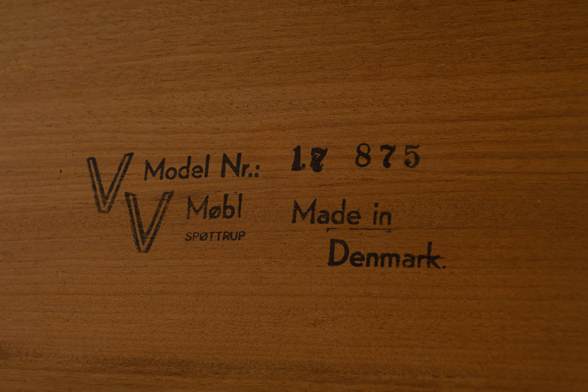 This vintage extendable dining table is manufactured by VV Møbler in Denmark during the 1960s. Made of teak wood and is in very good restored condition. The table can be extended to accommodate more guests. The second extension is slightly less high, as you can see in the photos.