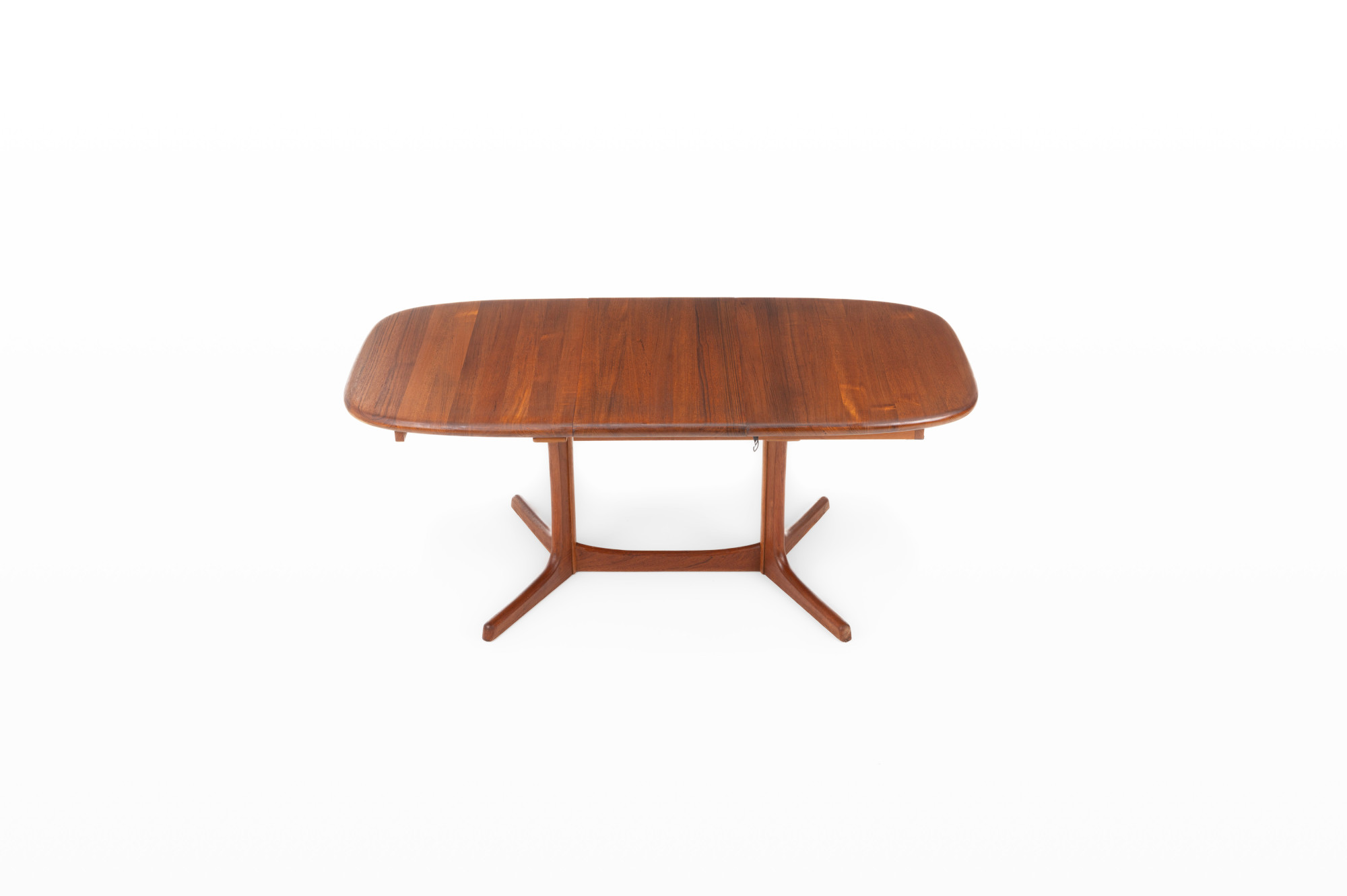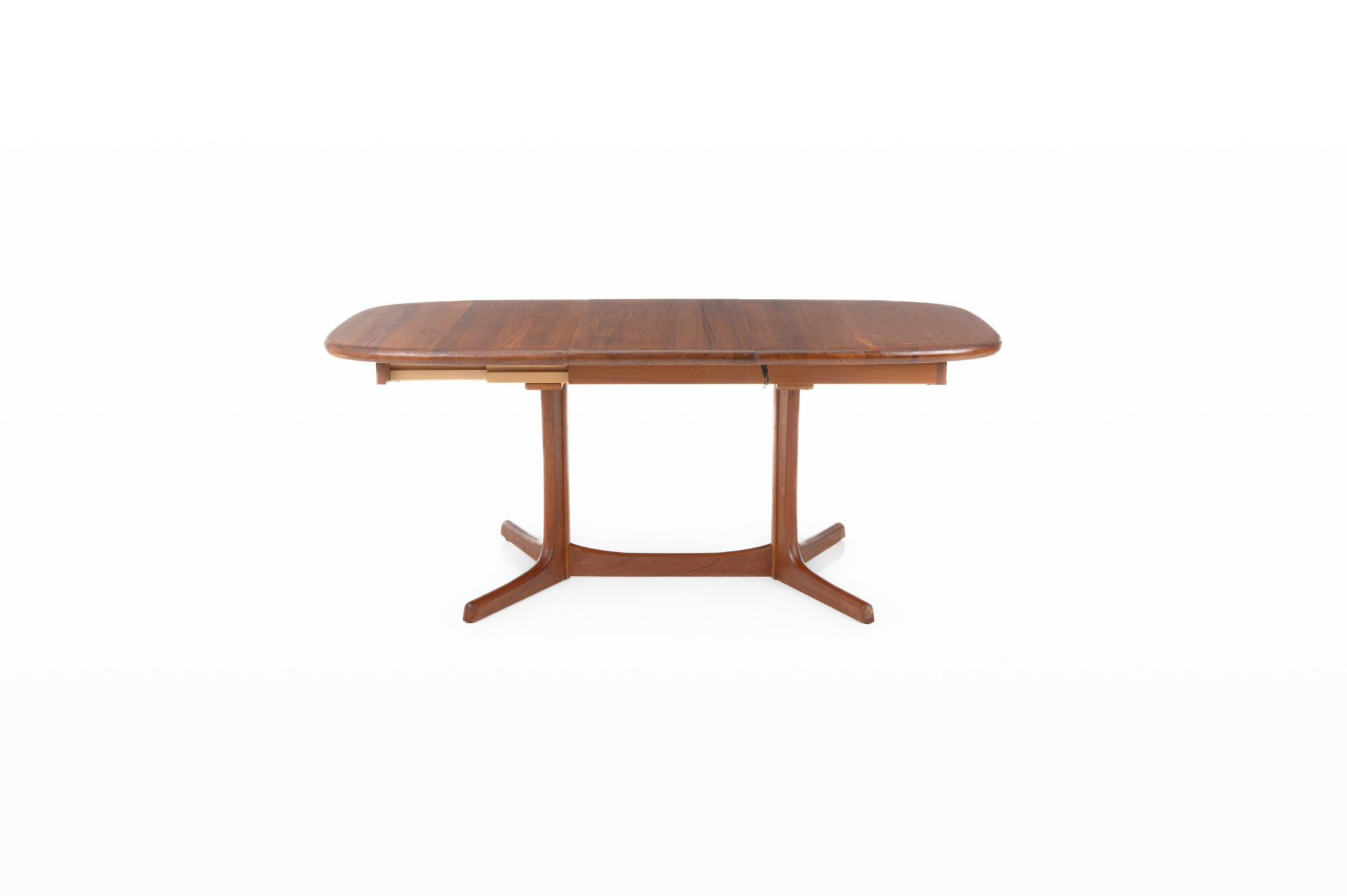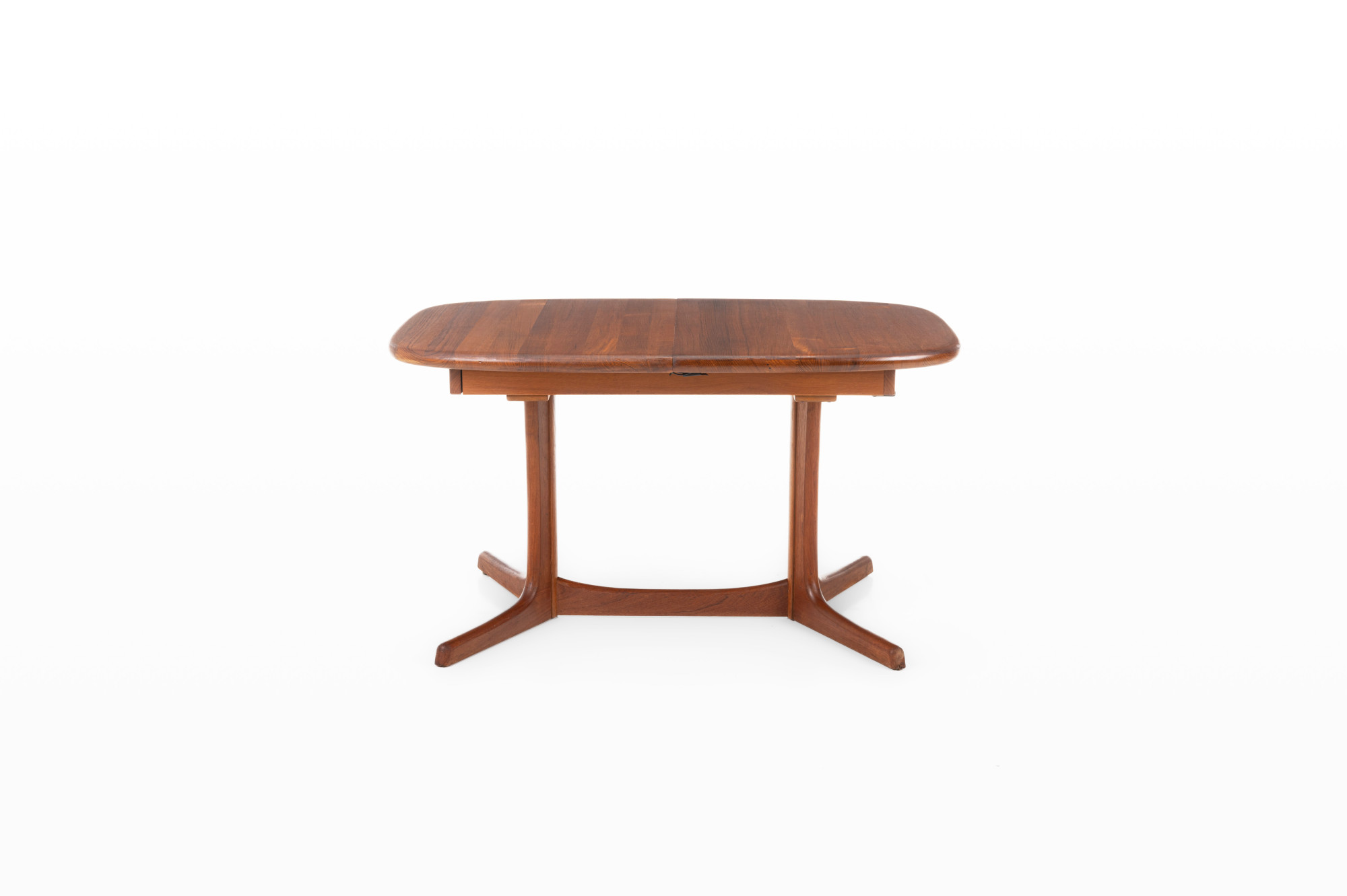 Beautiful extendable dining table produced by Dyrlund in Denmark. The table is made of solid teak wood and is in very good restored condition. Marked by the producer.