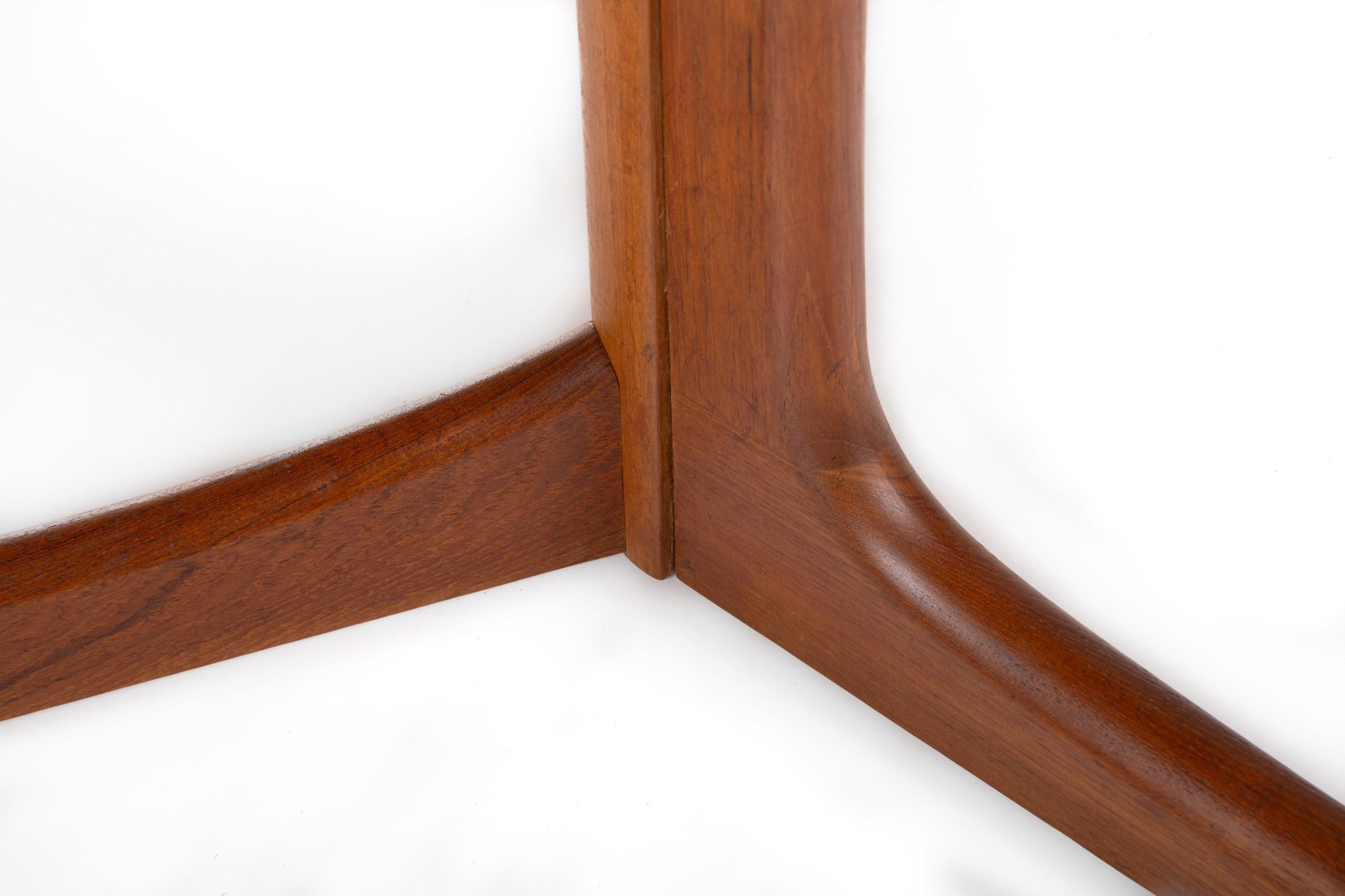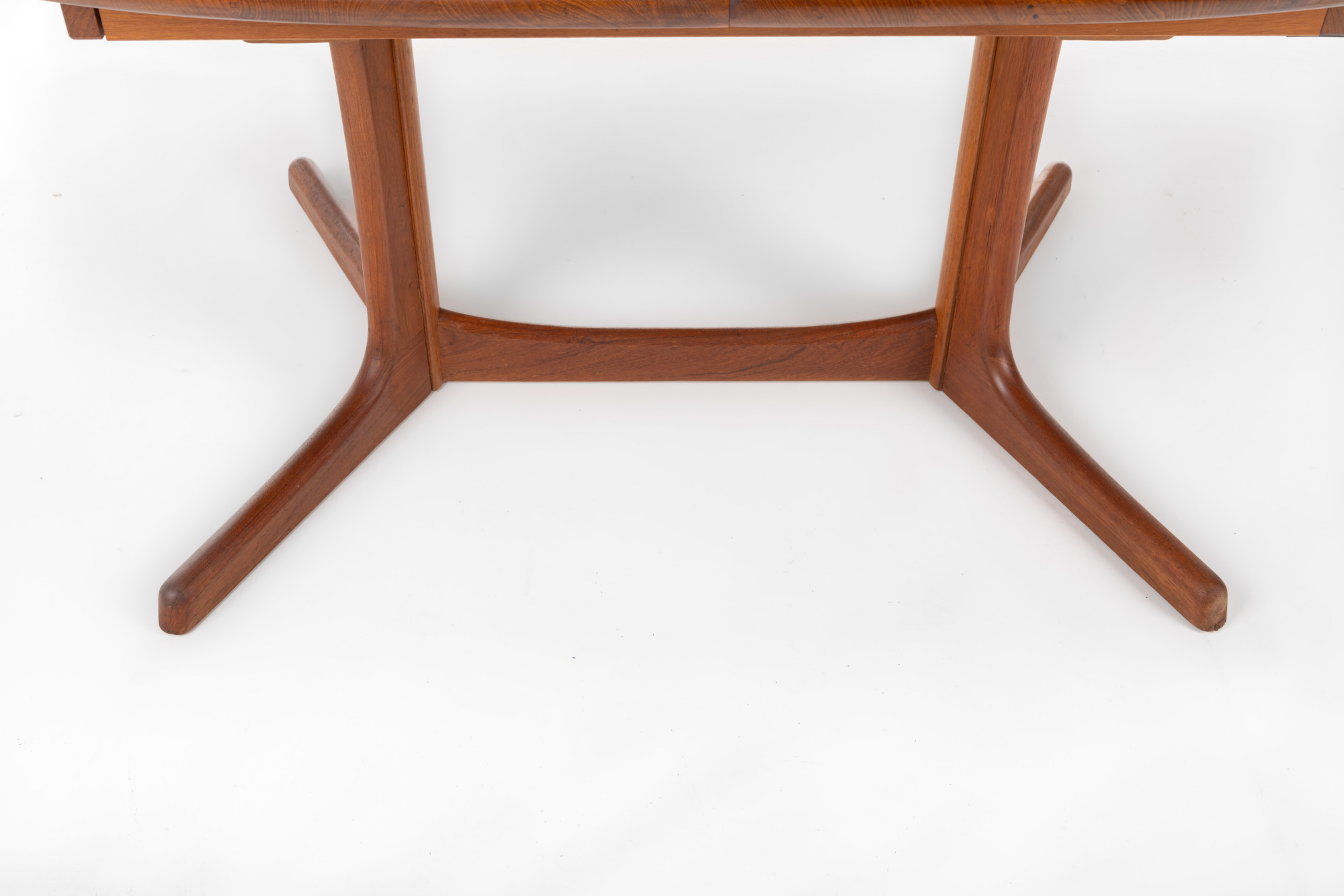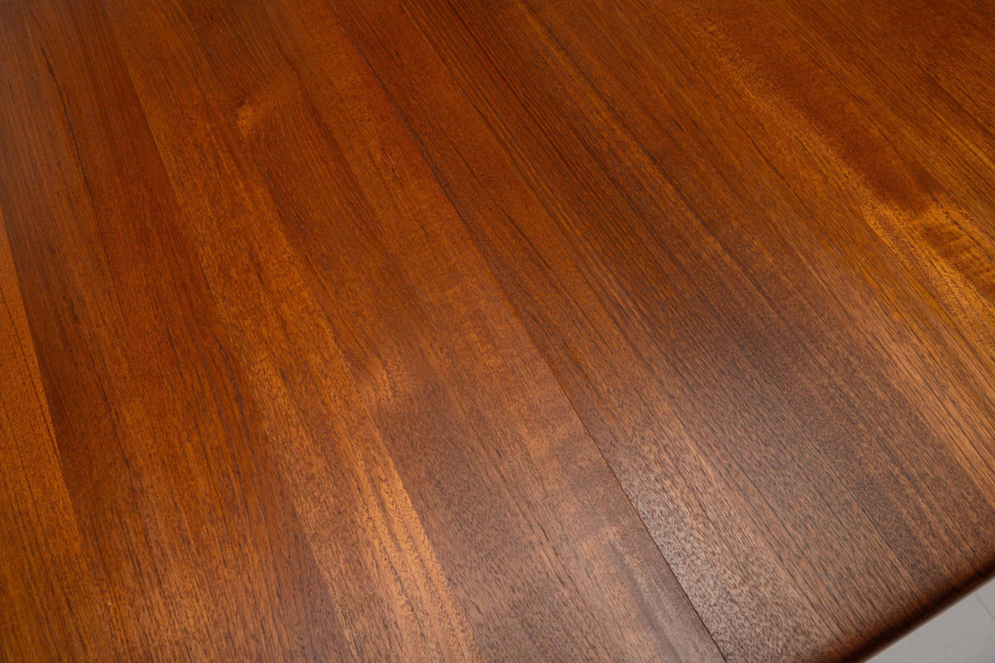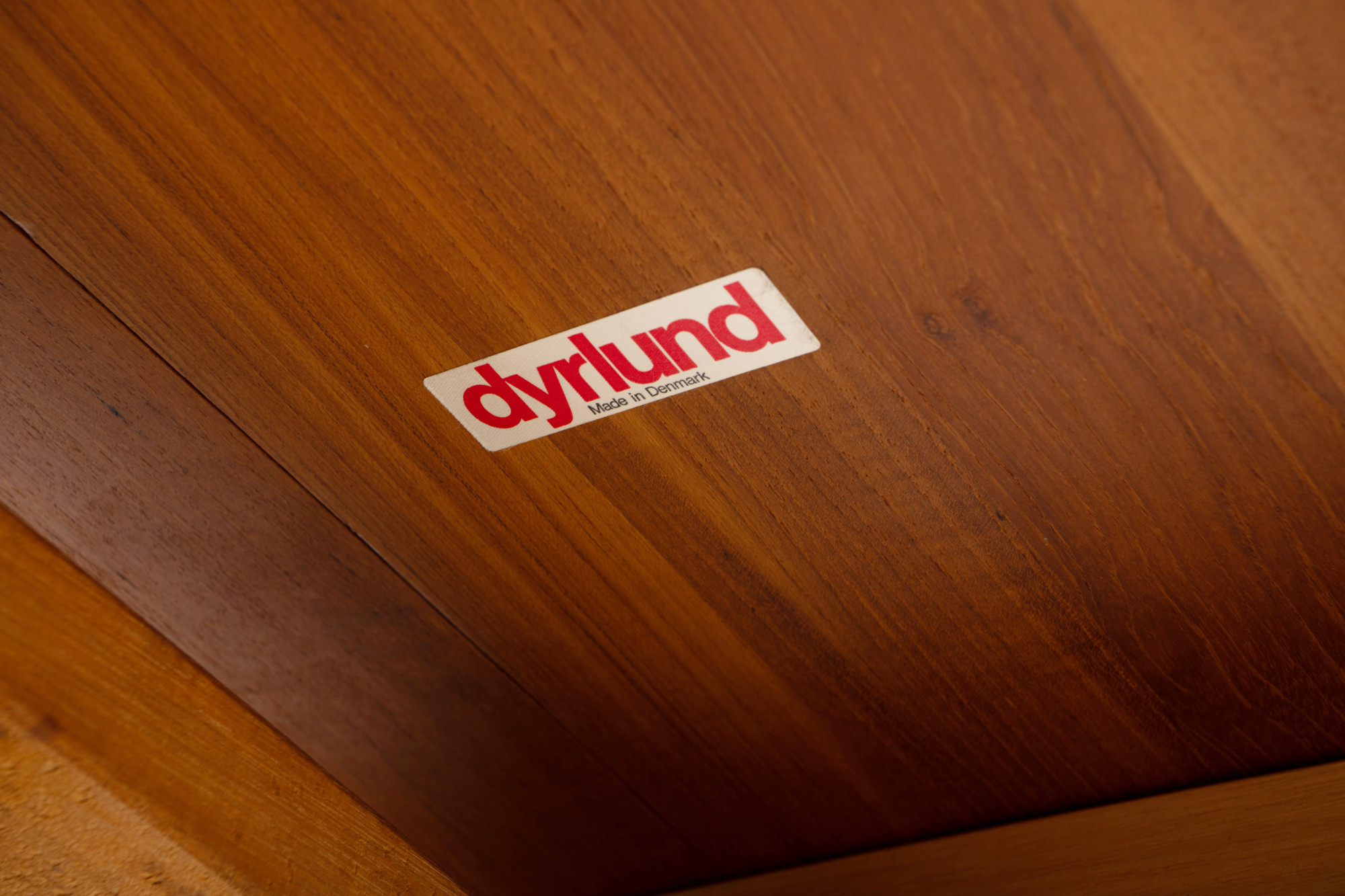 Beautiful extendable dining table produced by Dyrlund in Denmark. The table is made of solid teak wood and is in very good restored condition. Marked by the producer.