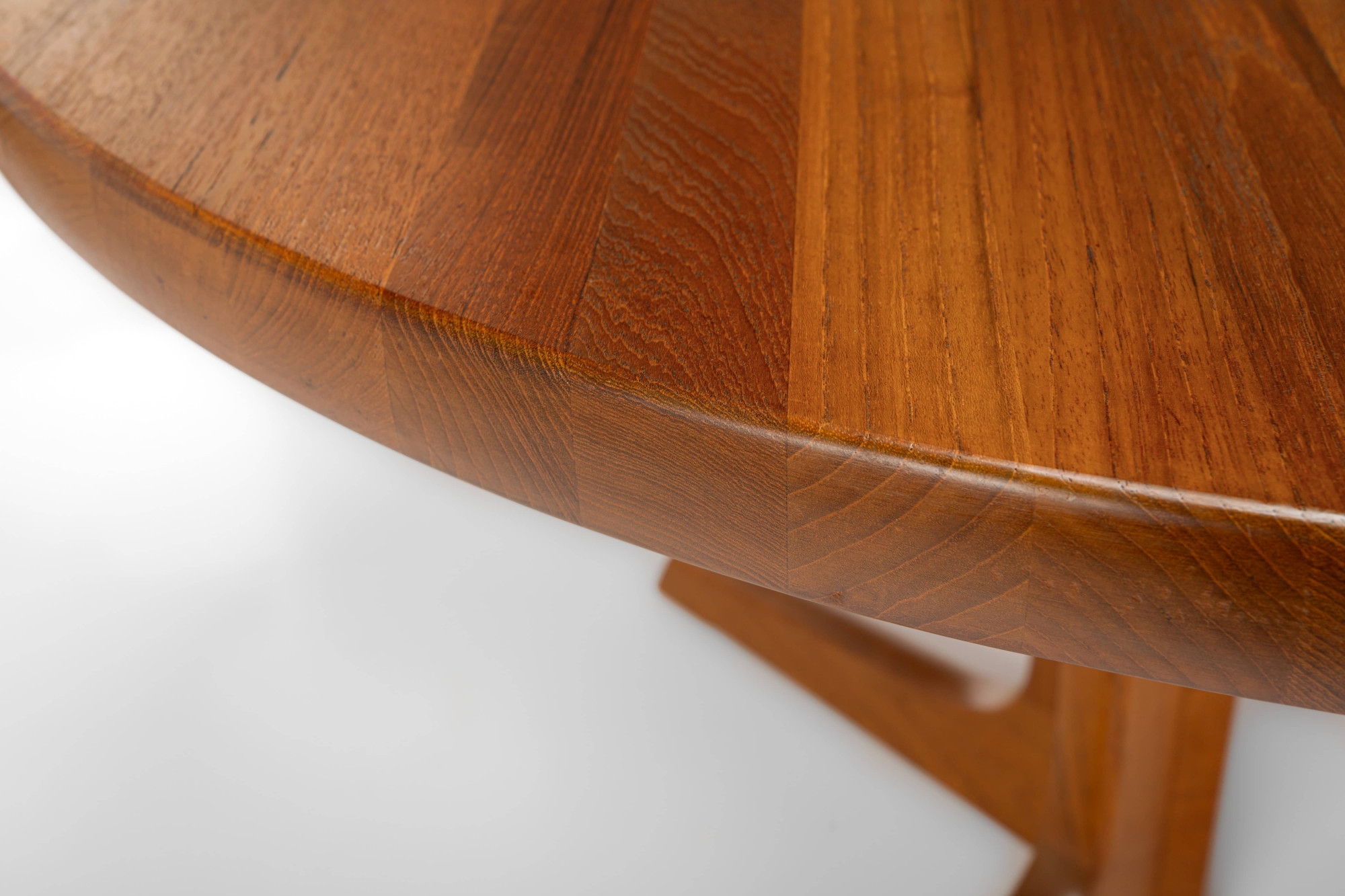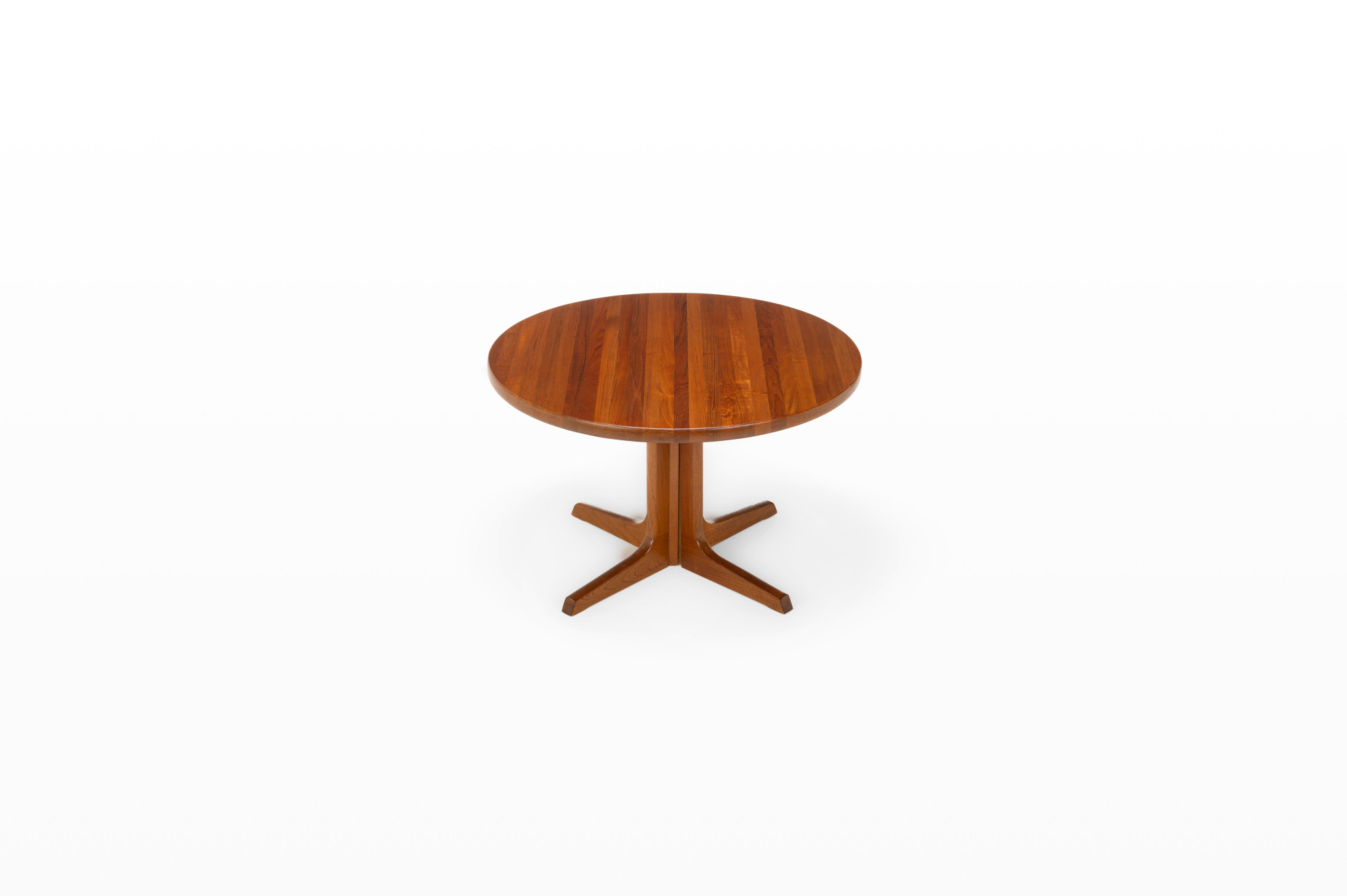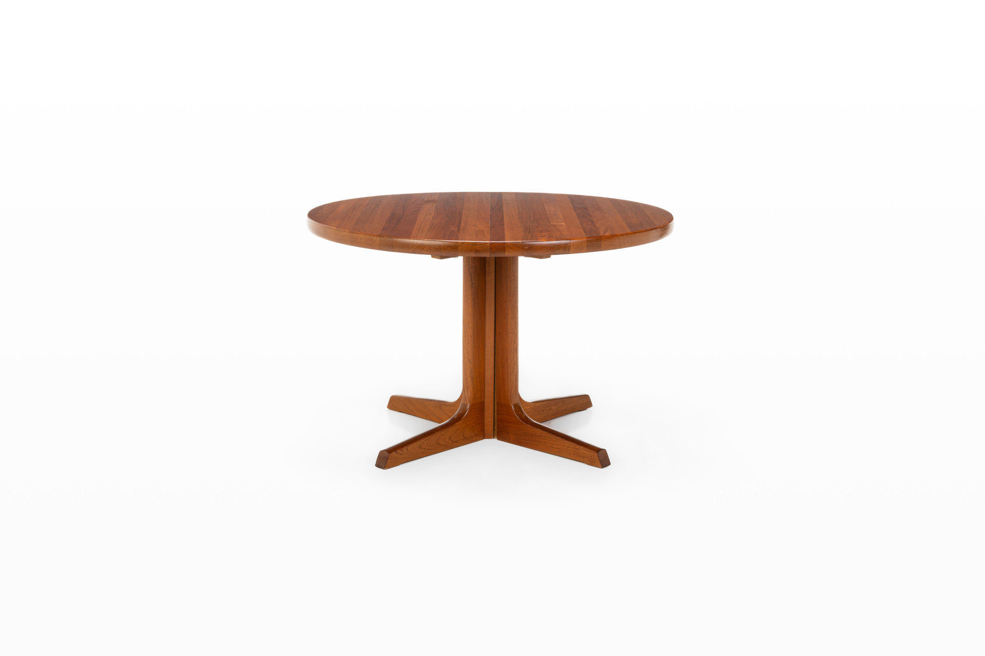 Beautiful Scandinavian round dining table manufactured by Gudme Mobelfabrik. This table is extendable and produced in Denmark in the 1960s. The table is made of solid teak wood and is in very good restored condition.