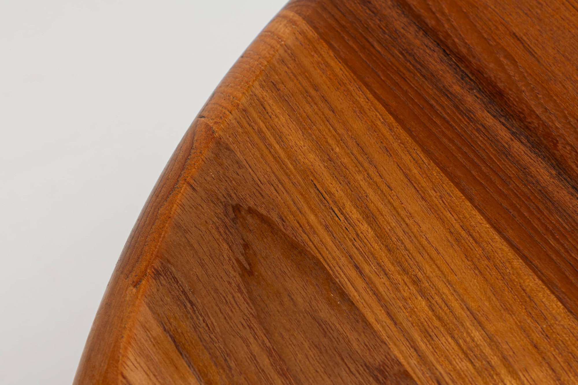 Vintage round dining table produced in Denmark in the 1960s. This table is made of solid teak wood and is in very good condition.