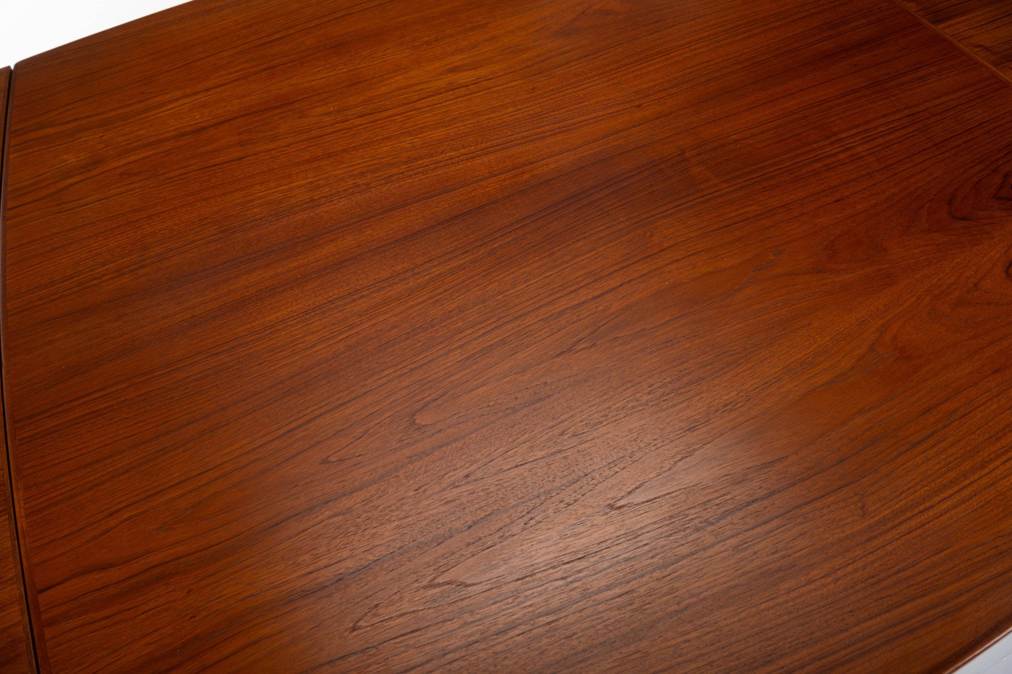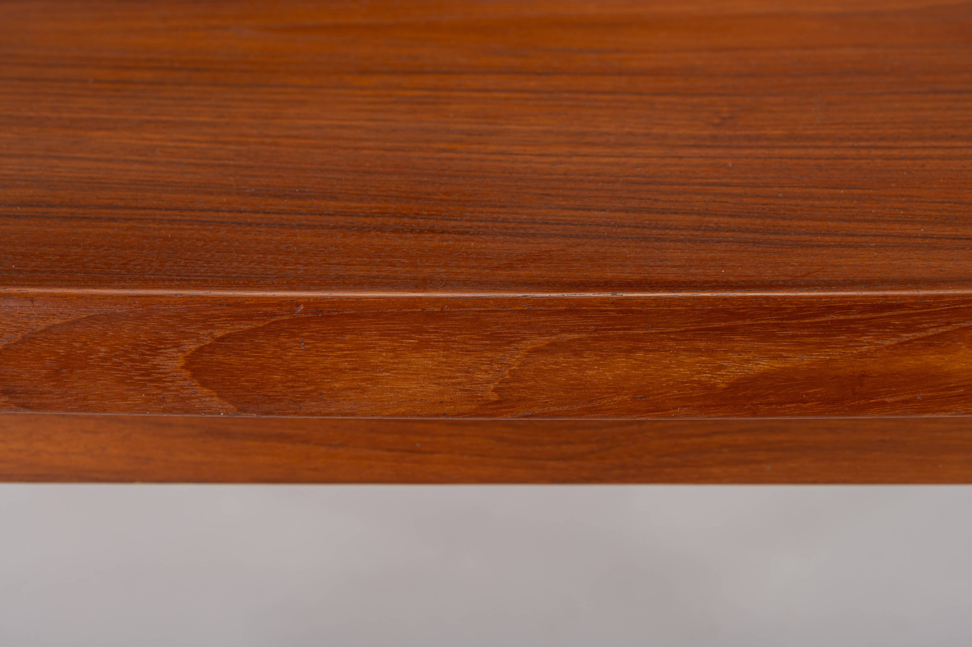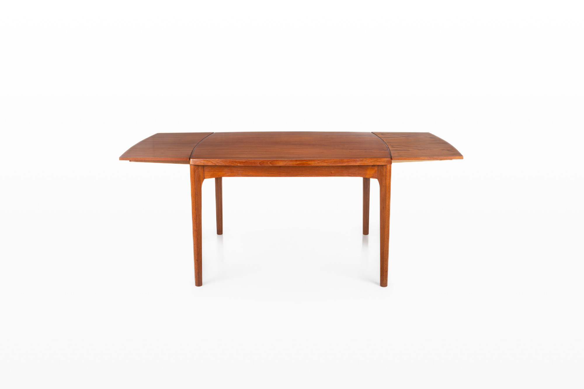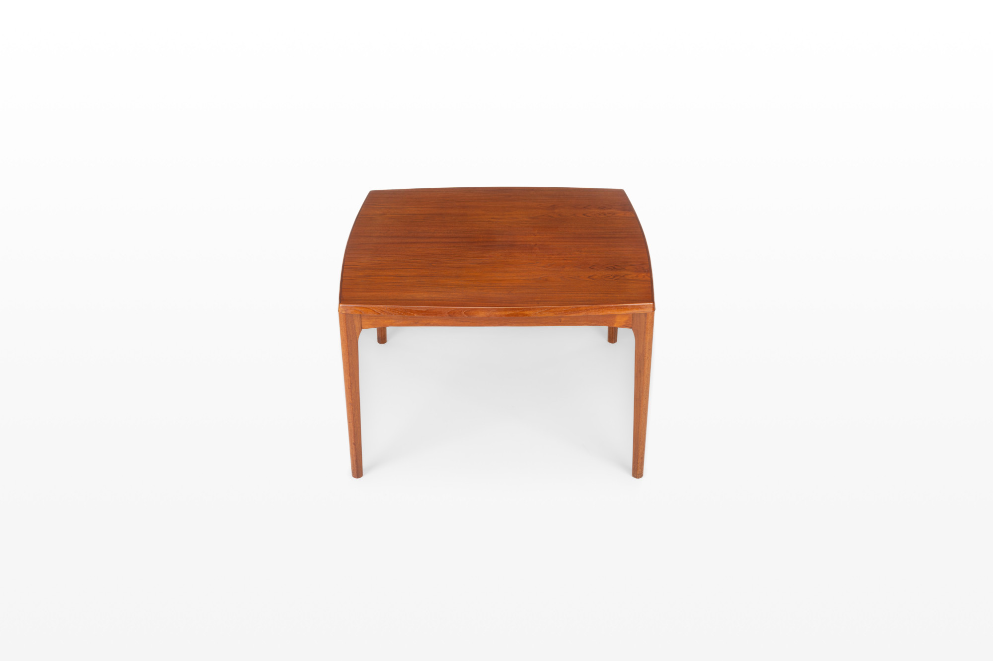 Danish square dining table produced in Denmark. This vintage teak table is extendable and in very good condition.