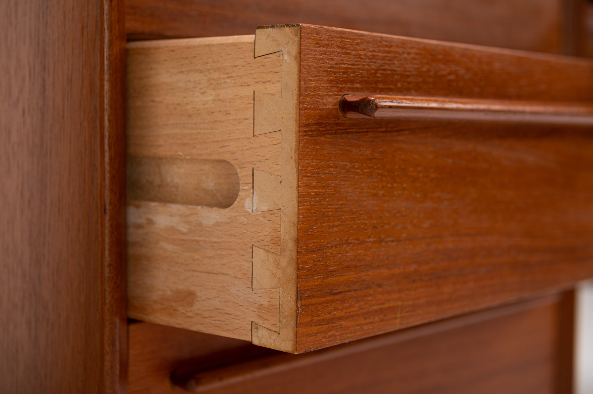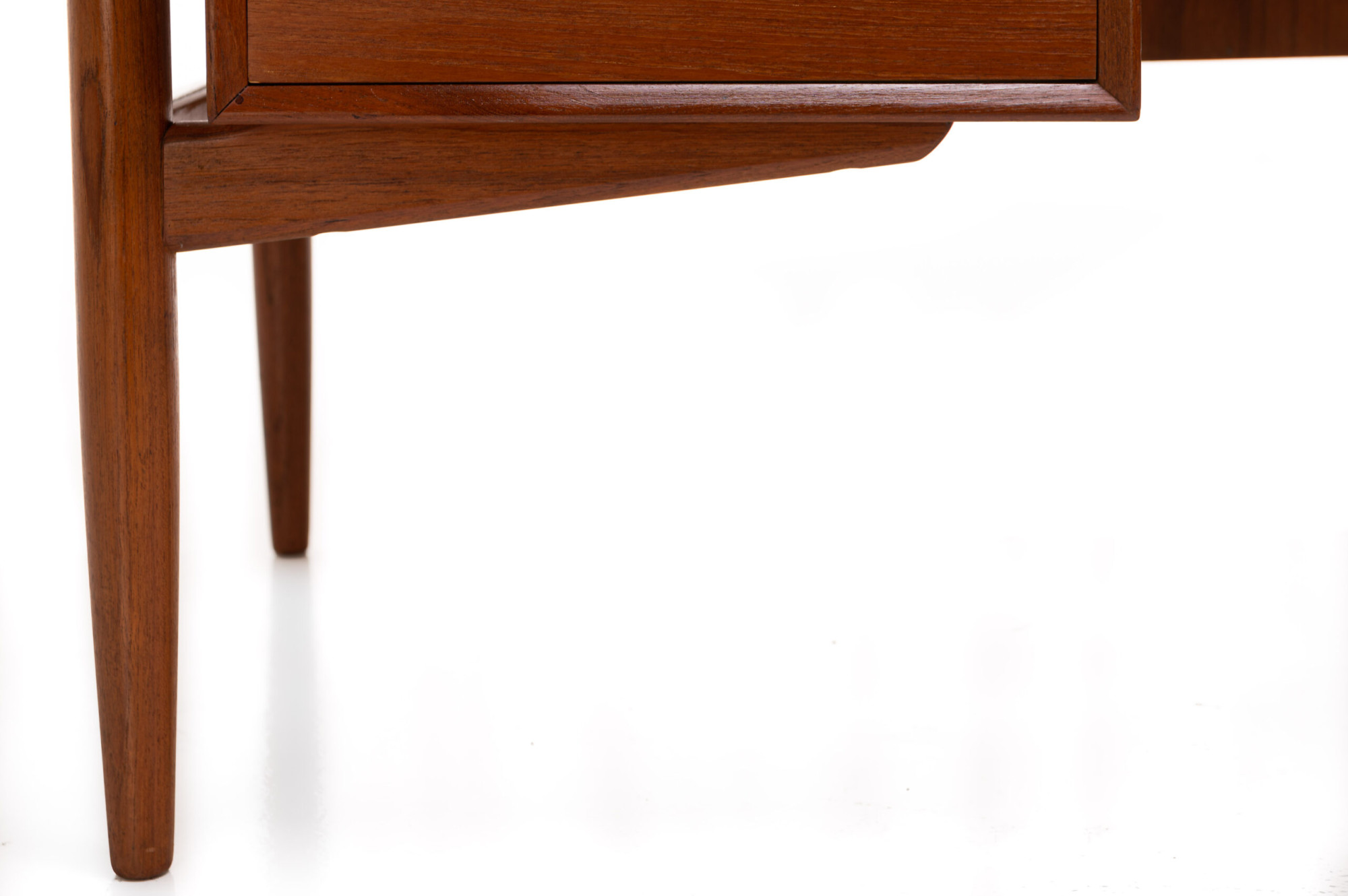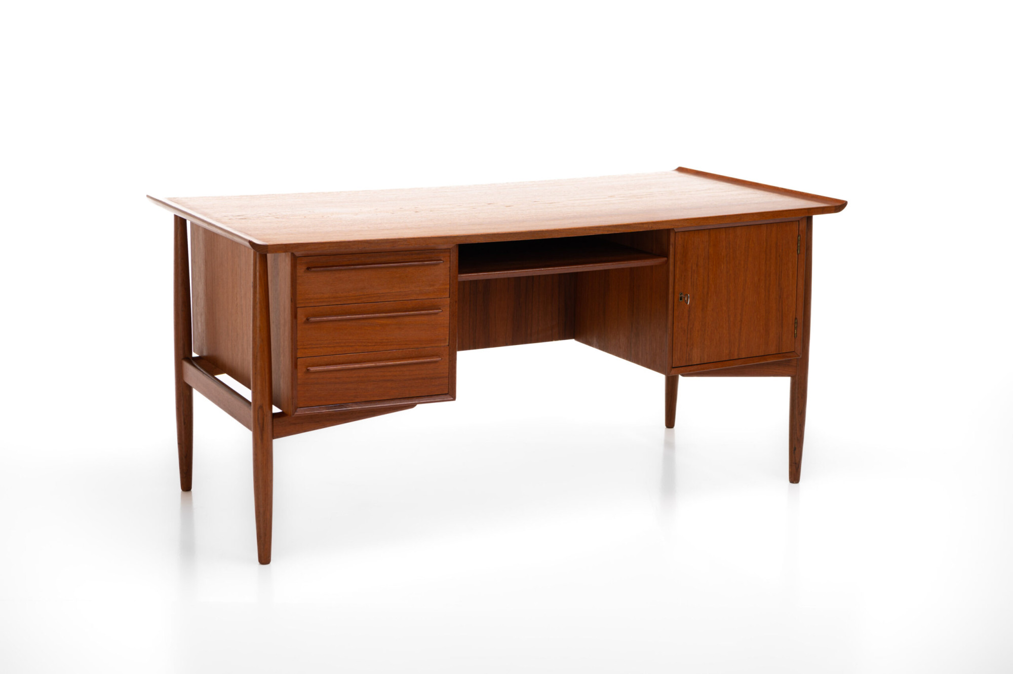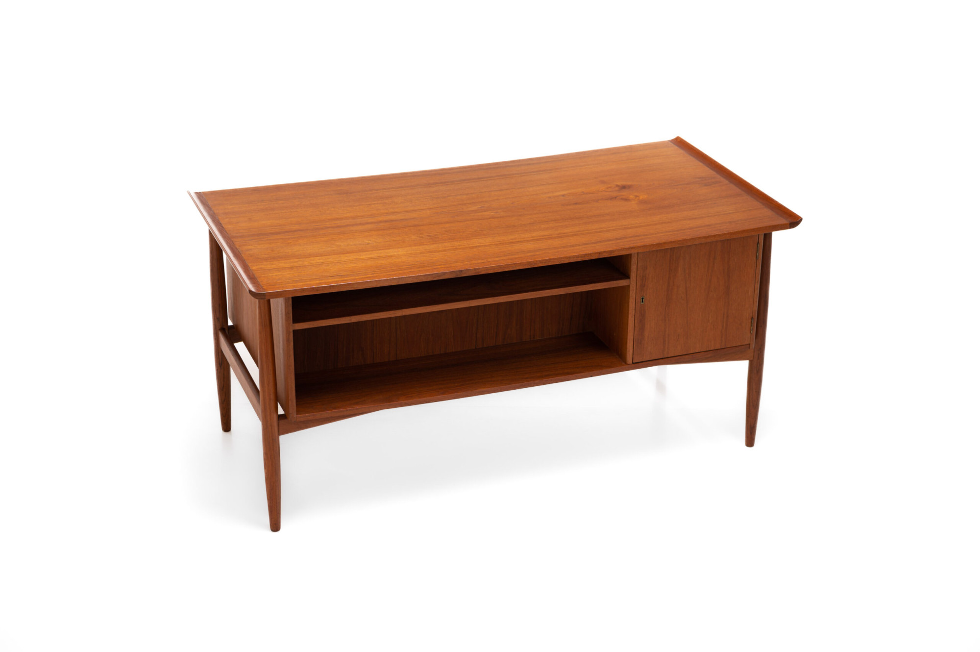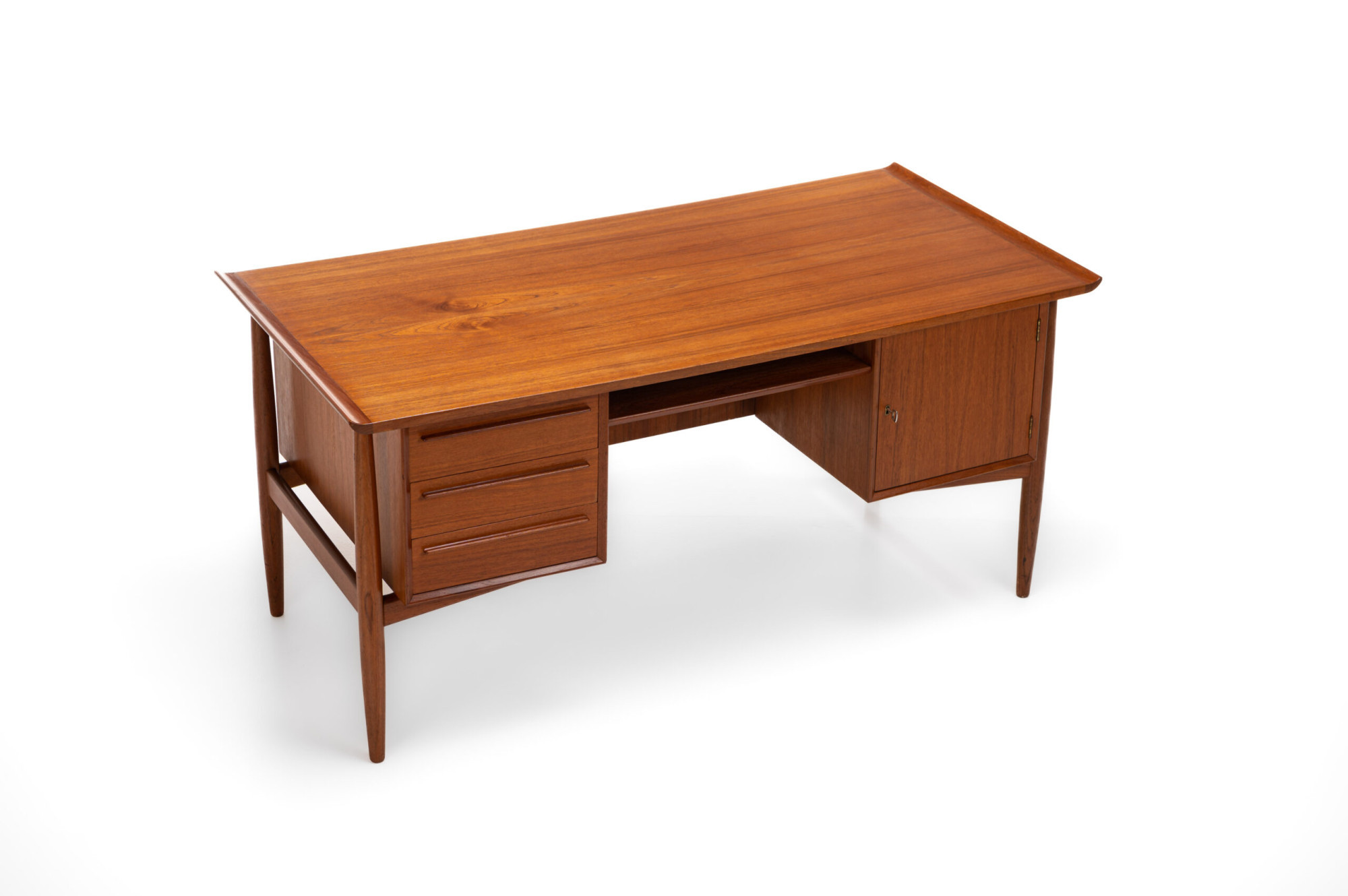 Beautiful Scandinavian vintage writing desk in teak designed by Arne Vodder for HP Hansen. There are three drawers and a lot of storage space. The desk is in very good restored condition. A real eye catcher for your interior. The sticker from the producer is still present.