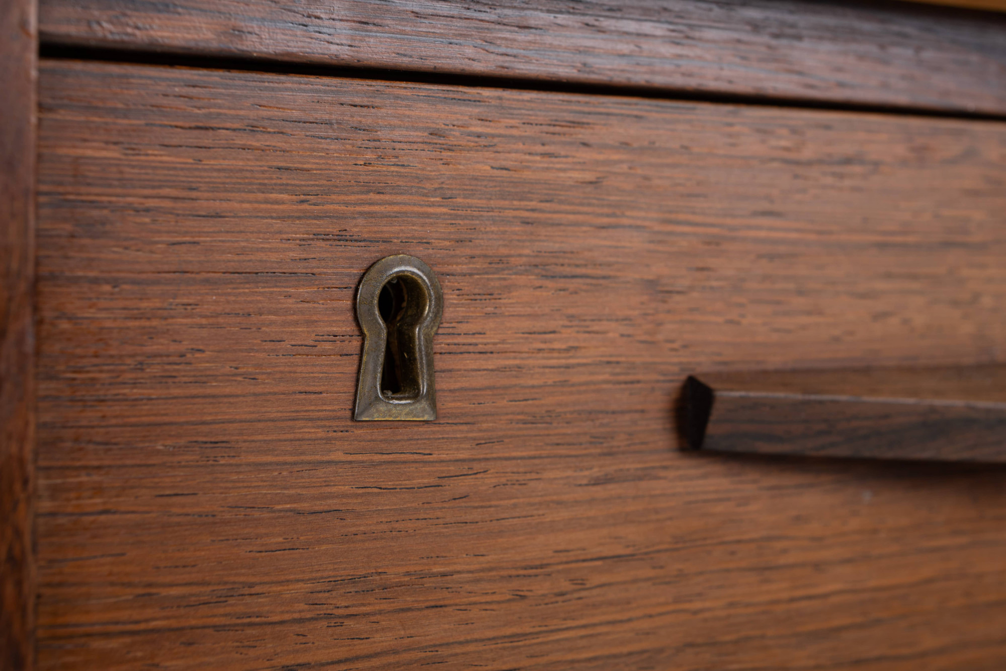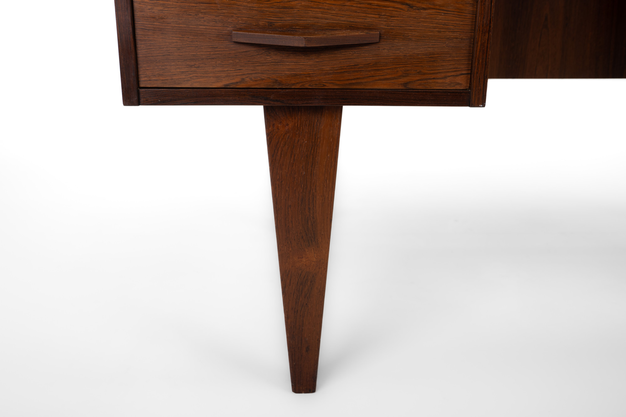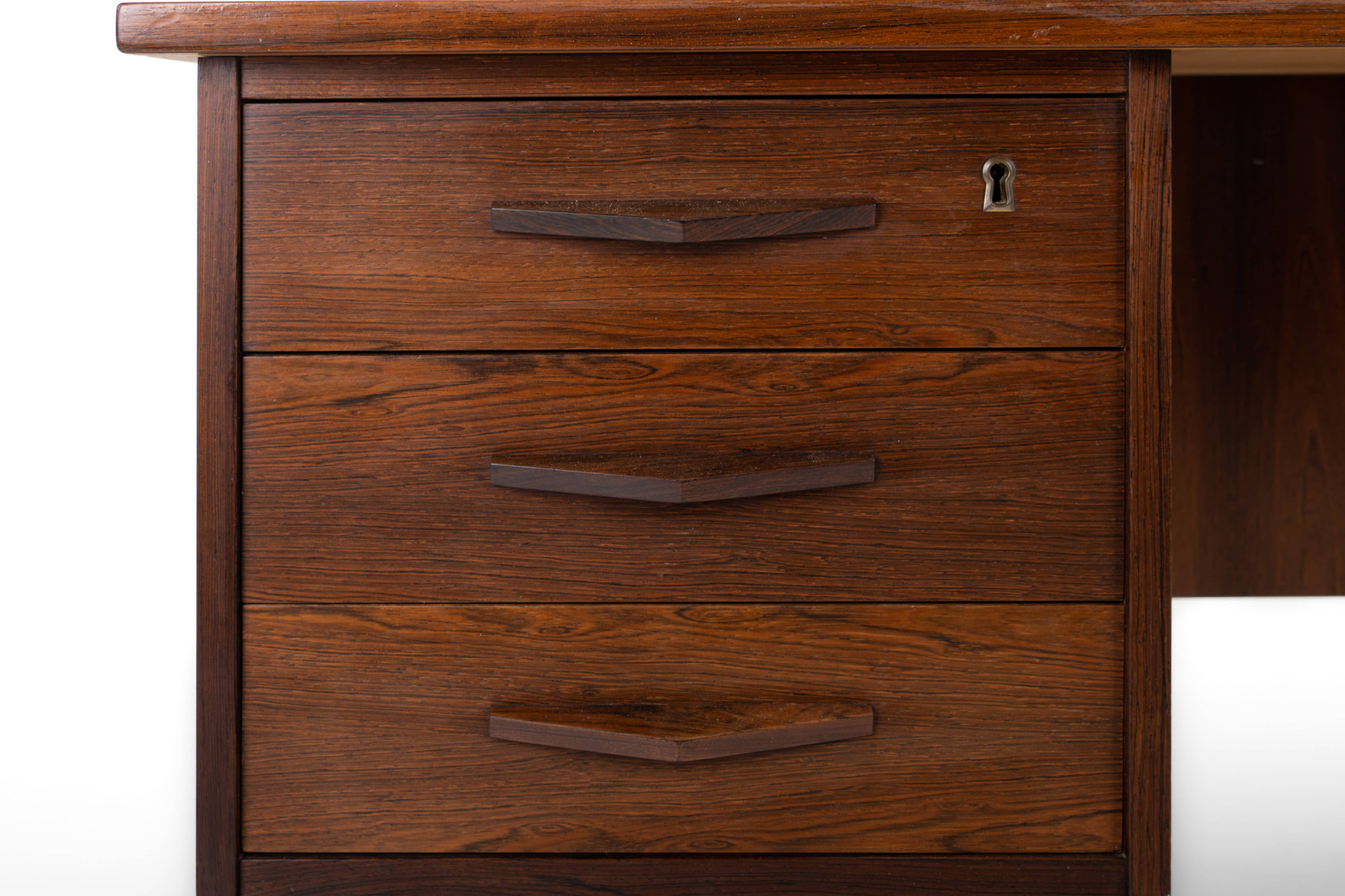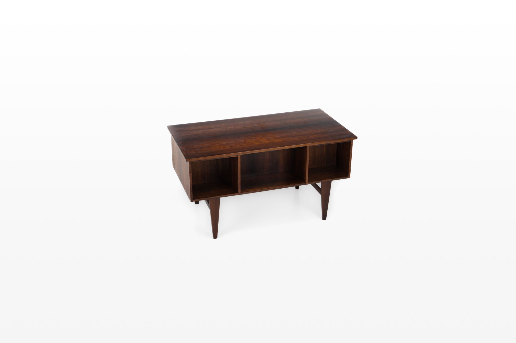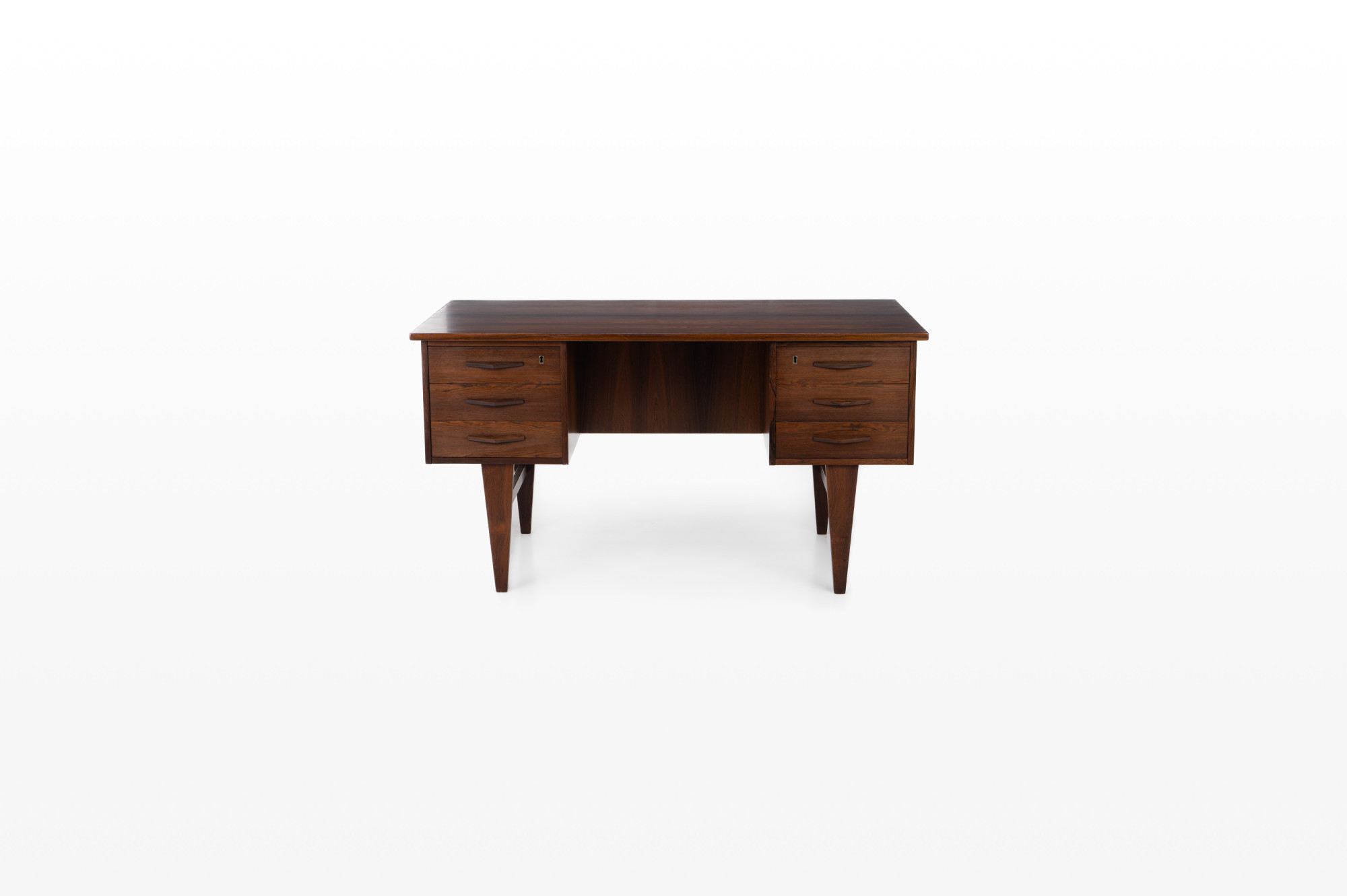 Danish vintage writing desk in rosewood wit six drawers and a bar/deco area at the back. The writing desk is very good condition.